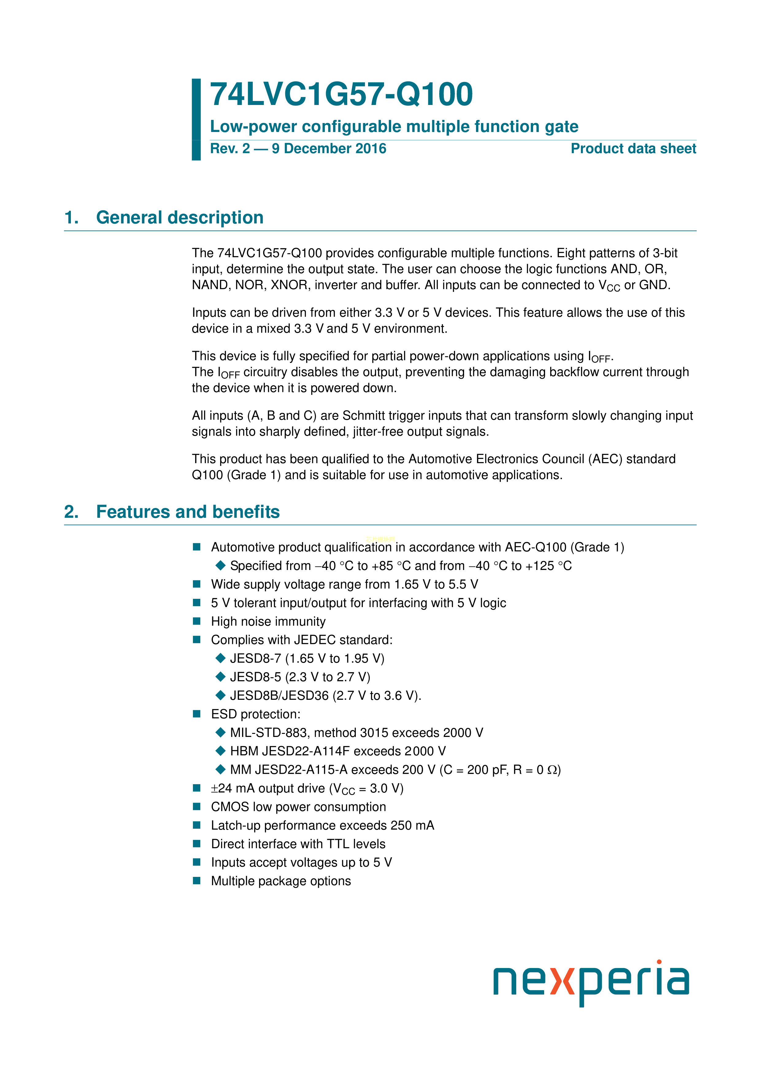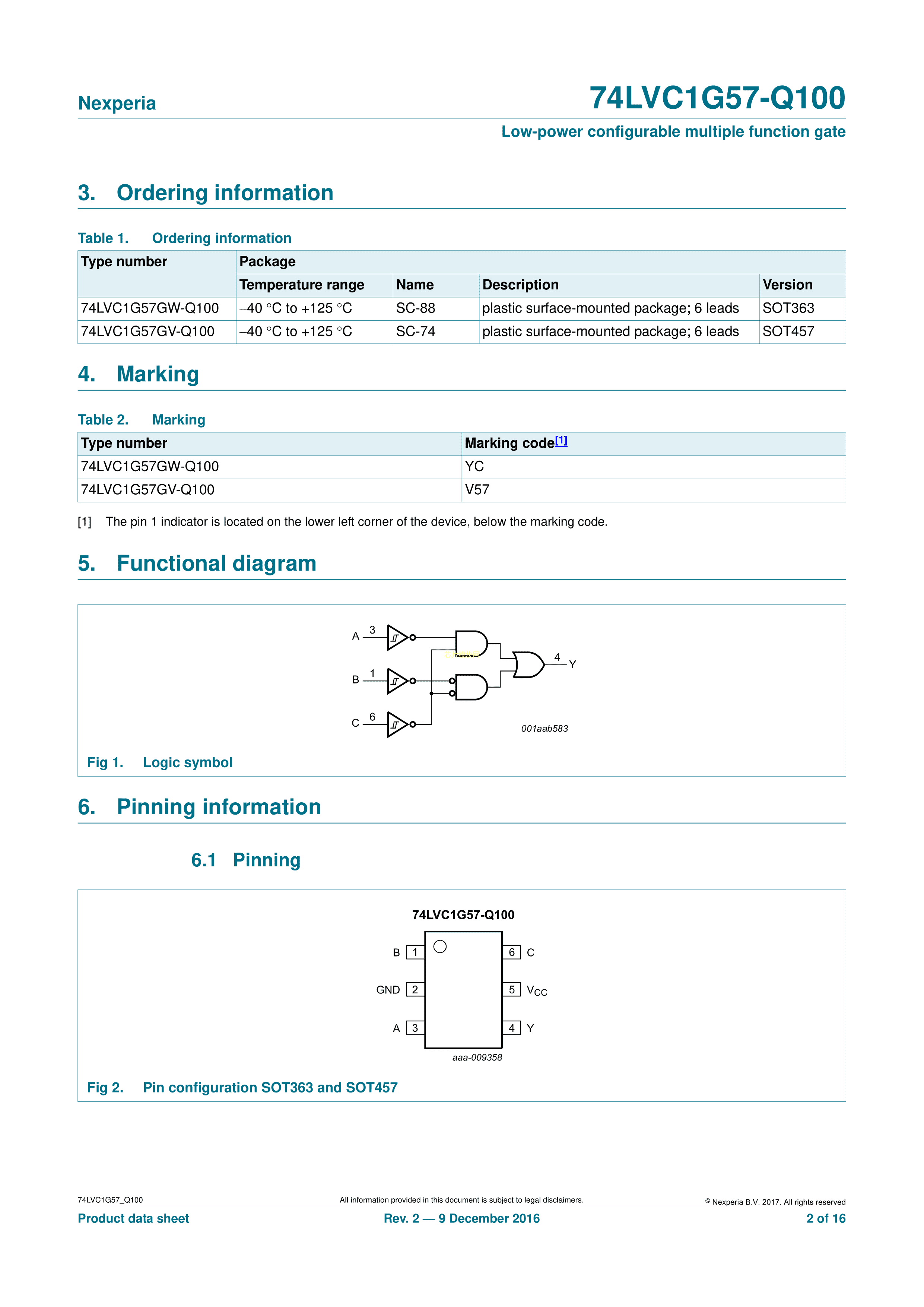 74LVC1G57GW-Q100H数据手册TSSOP-6封装Nexperia(安世)PDF规格书,中