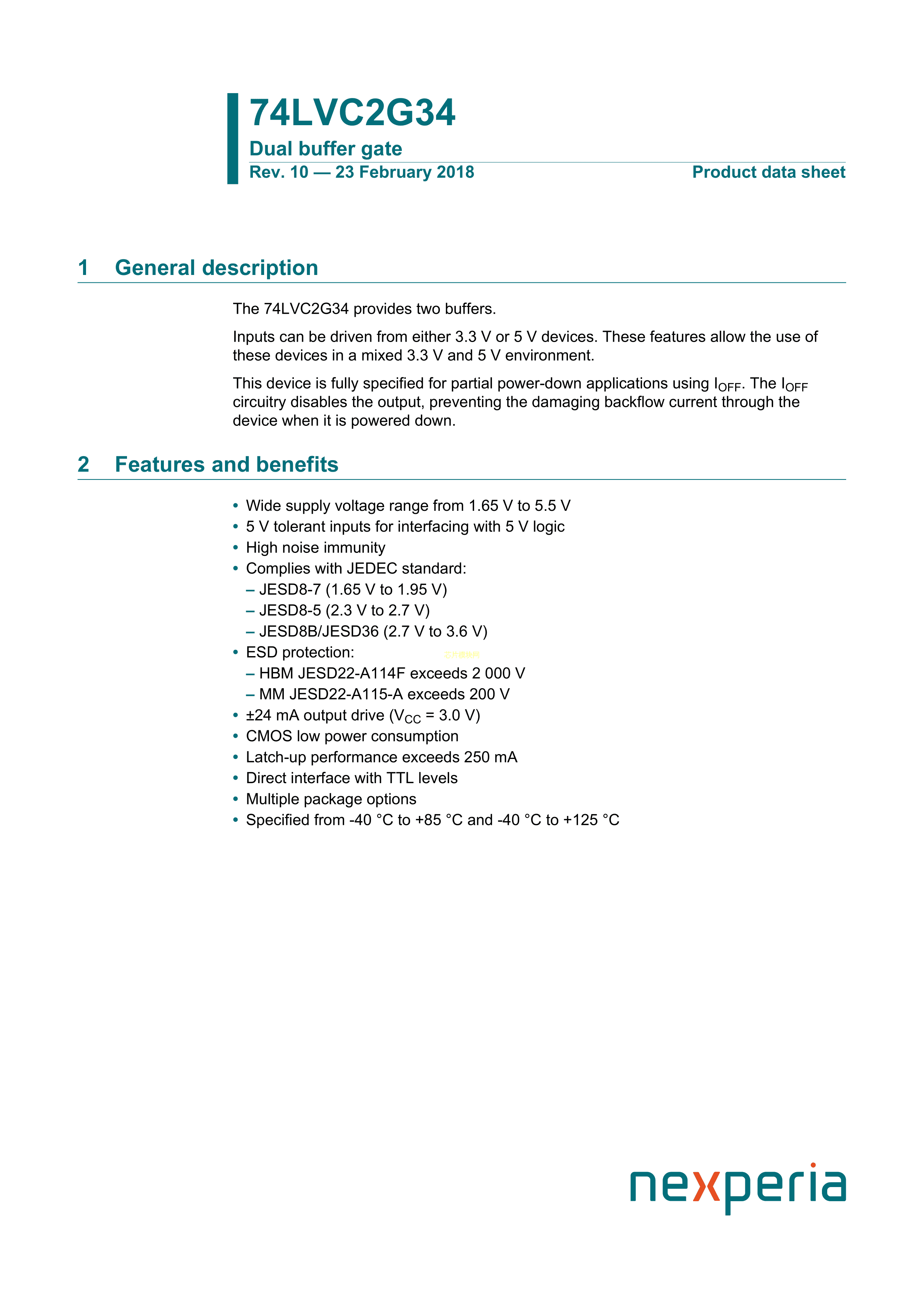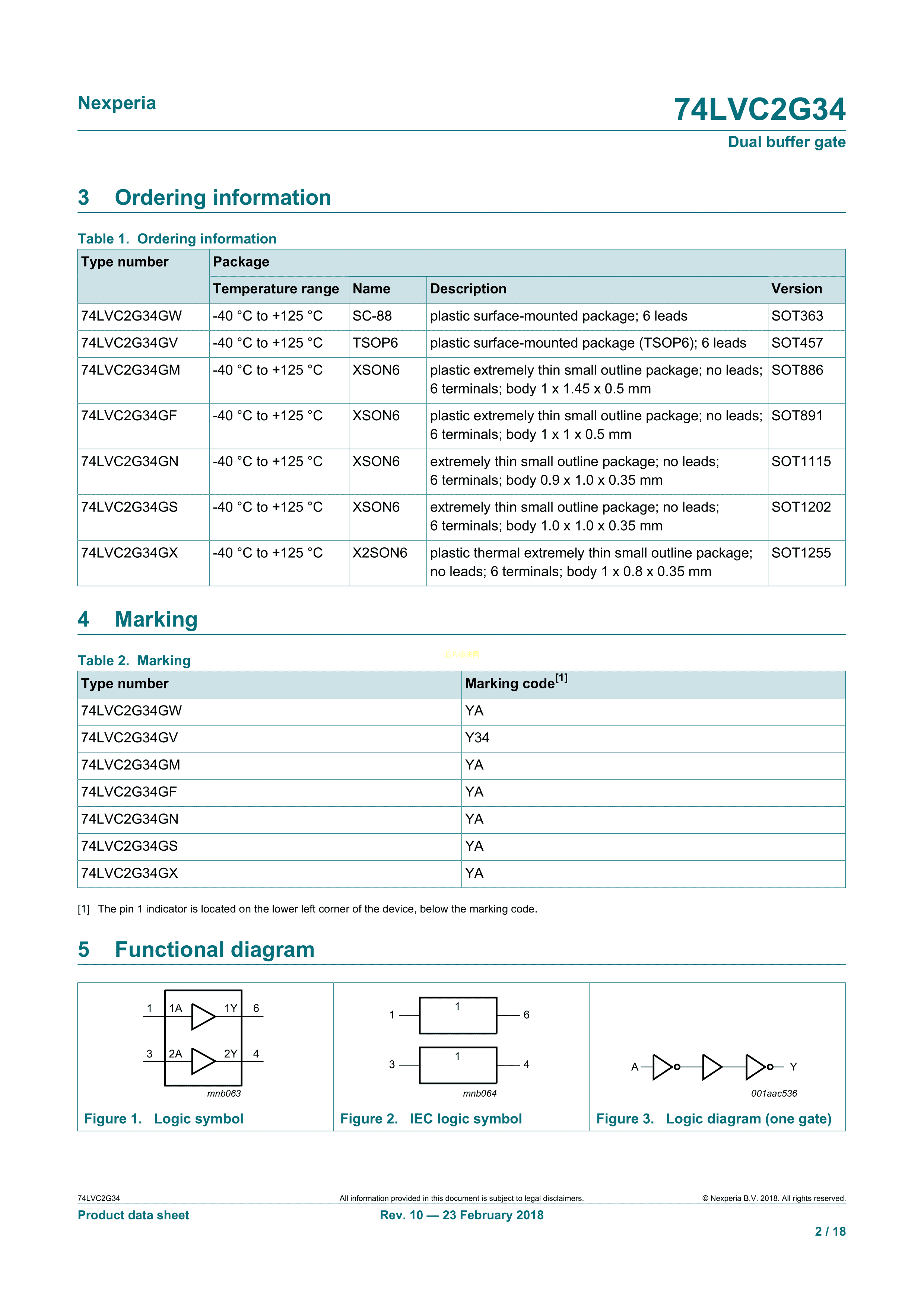 74LVC2G34GM132数据手册XSON-6封装Nexperia(安世)PDF规格书,中英文下载