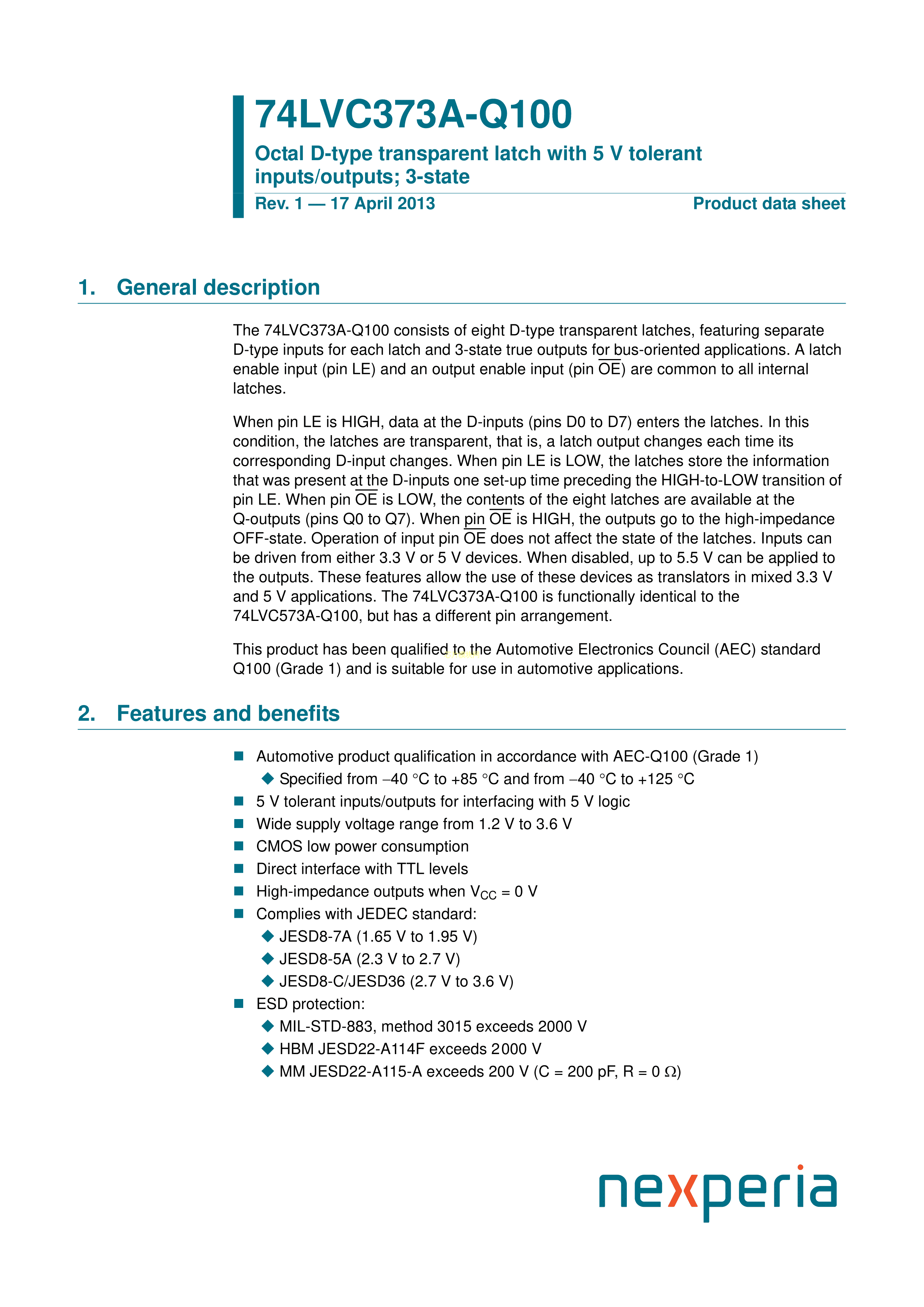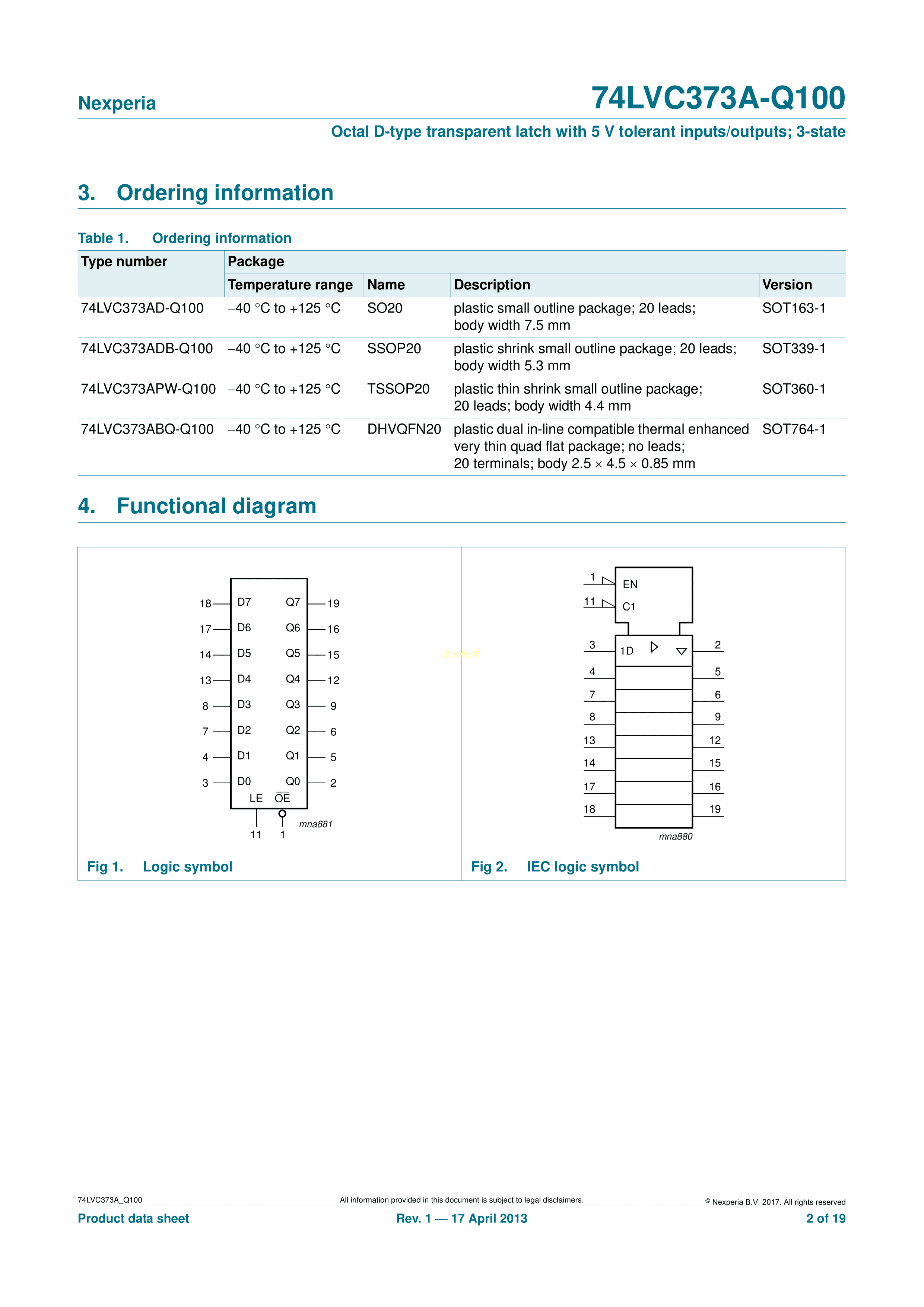74LVC373AD-Q100J数据手册SO-20封装Nexperia(安世)PDF规格书,中英文下