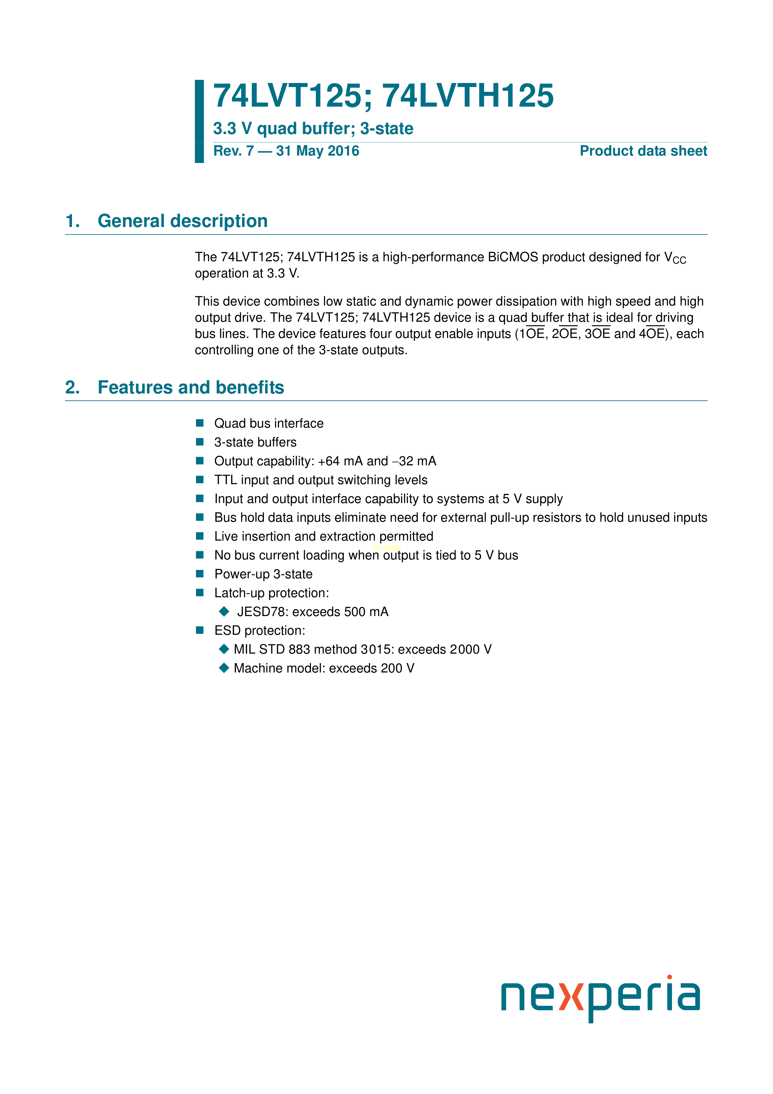 74LVT125PW112数据手册TSSOP-14封装Nexperia(安世)PDF规格书,中英文下