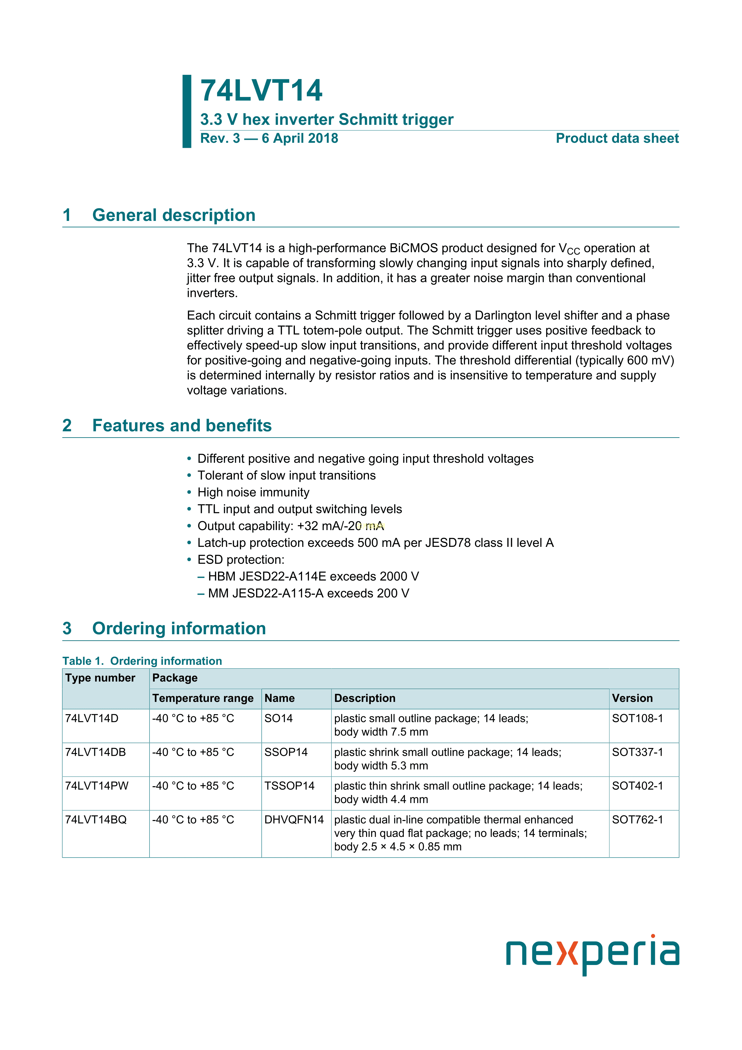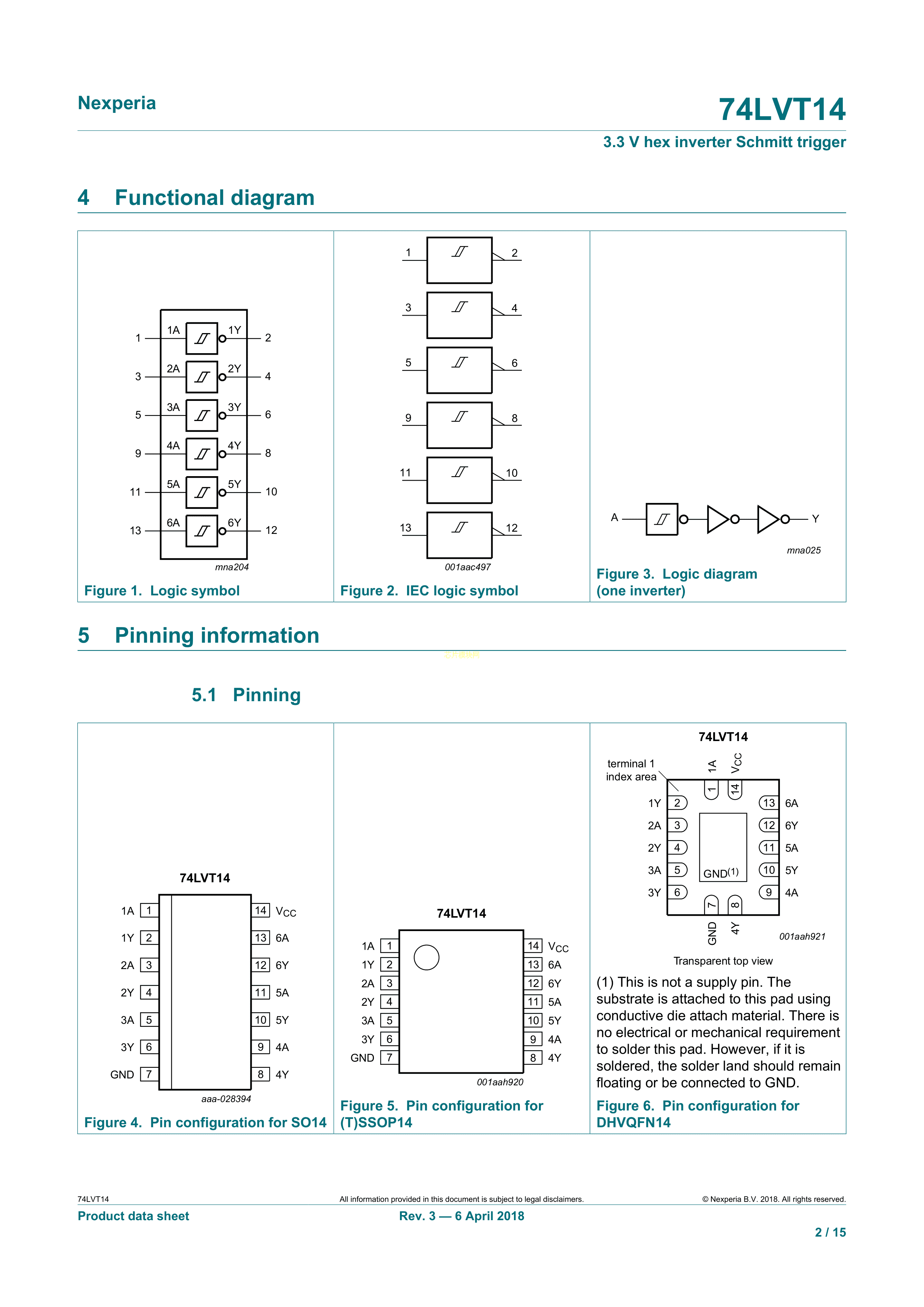 74LVT14BQ115数据手册DHVQFN-14封装Nexperia(安世)PDF规格书,中英文下