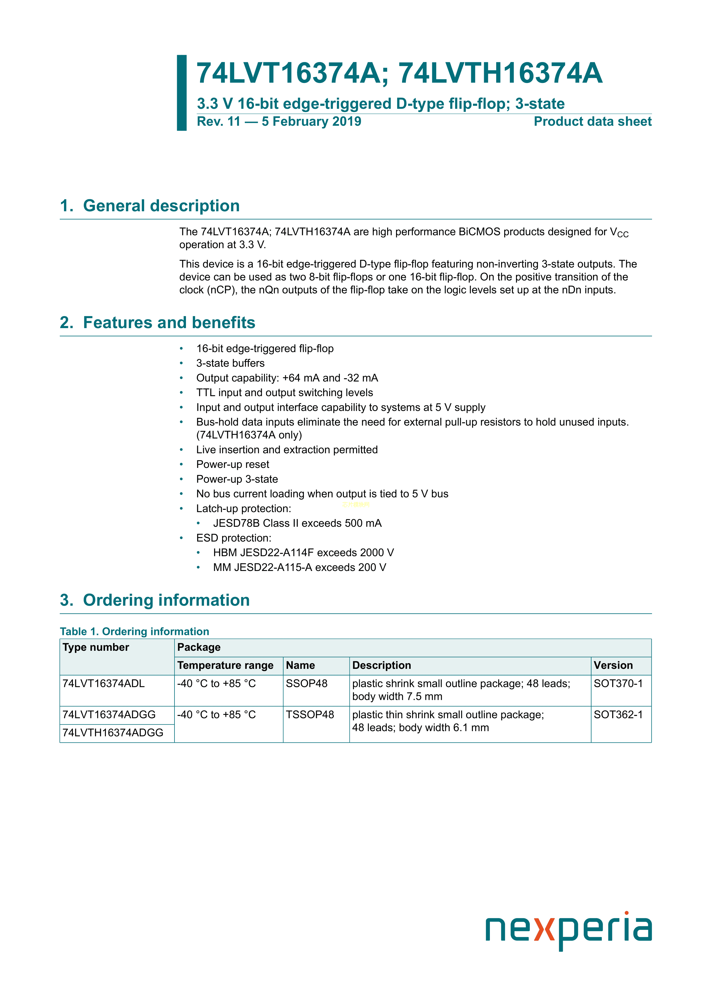 74LVT16374ADGG112数据手册TSSOP-48封装Nexperia(安世)PDF规格书,