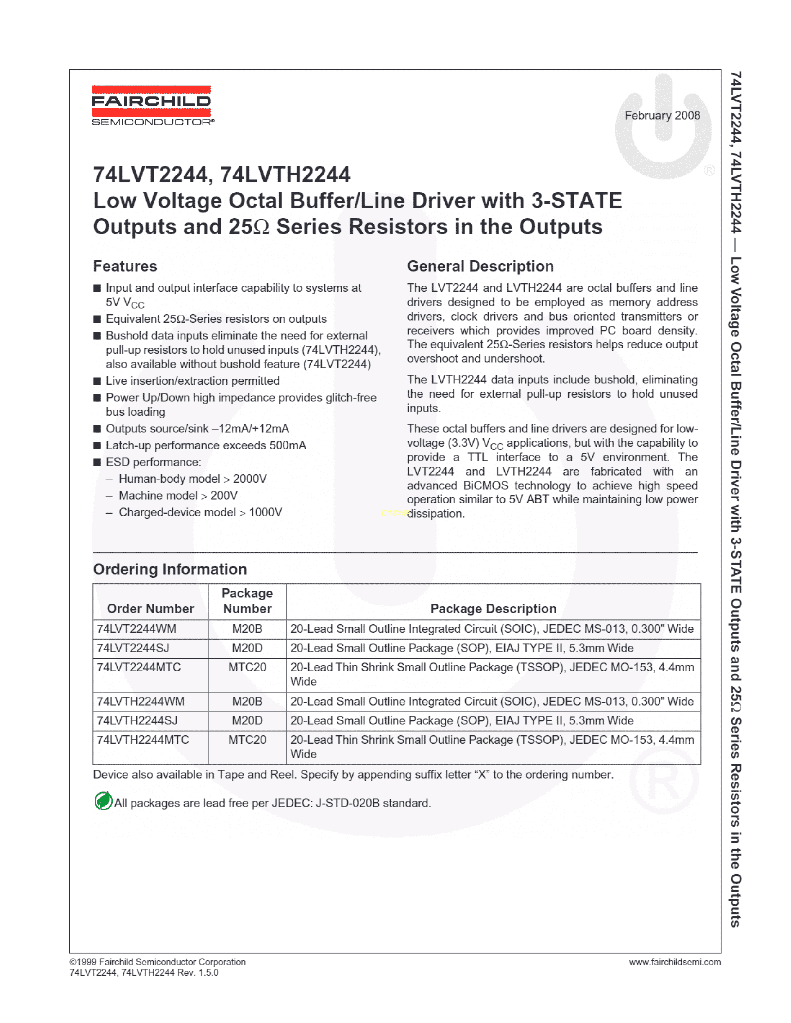 74LVT2244MTCX数据手册TSSOP-20封装onsemi(安森美)PDF规格书,中英文下载