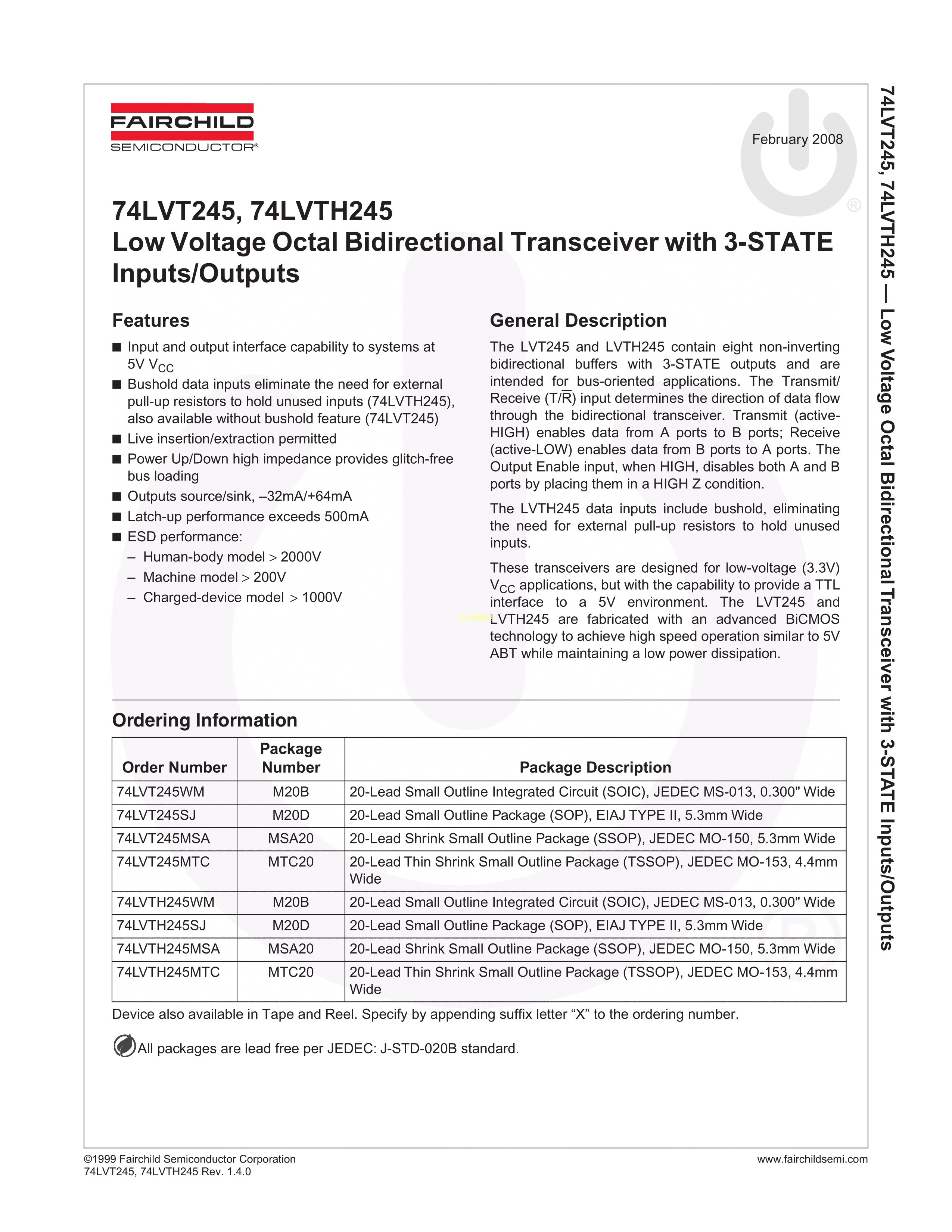 74LVT245MTCX数据手册TSSOP-20封装onsemi(安森美)PDF规格书,中英文下载