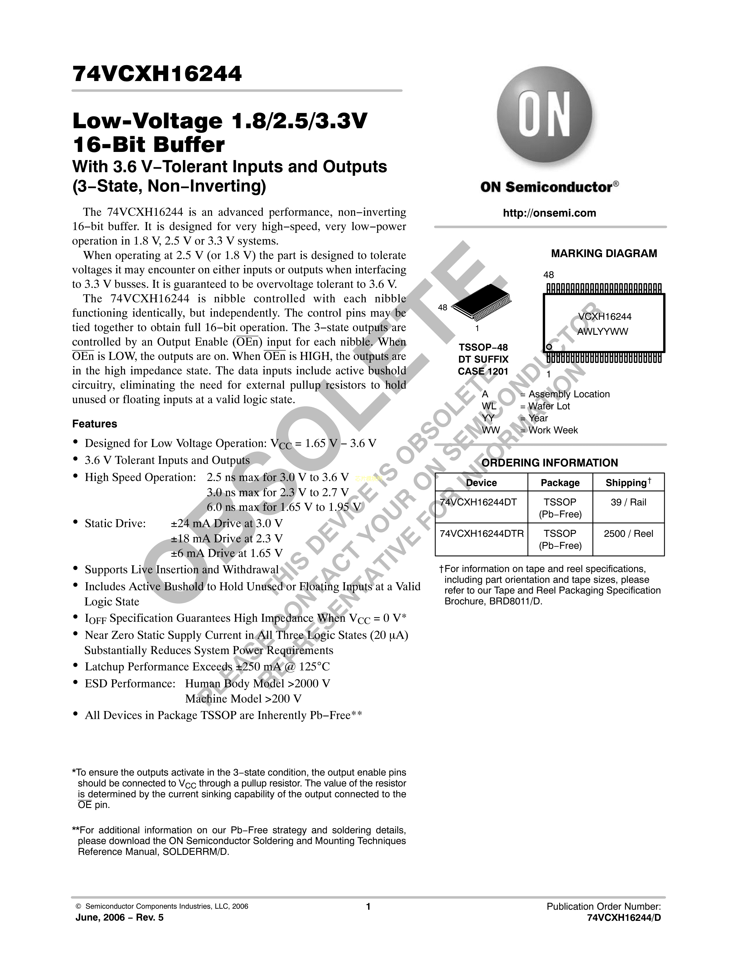 74VCXH16244DGGR数据手册TSSOP48_61MM_05P封装onsemi(安森美)PD