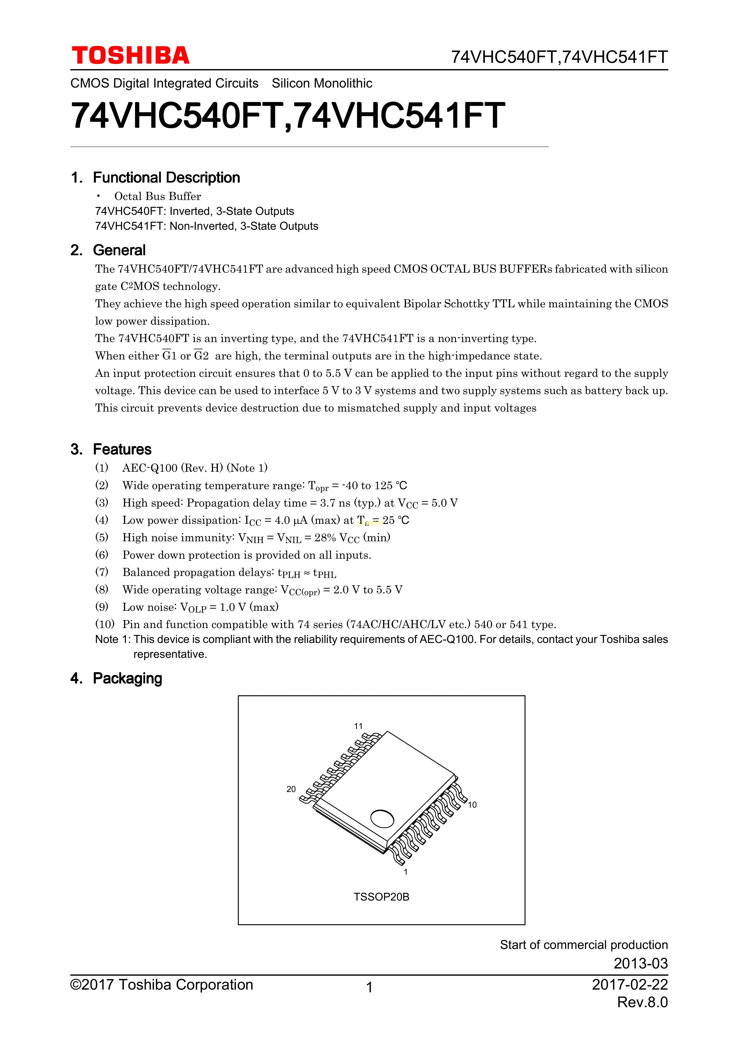 74VHC541FT(BJ)数据手册TSSOP-20封装TOSHIBA(东芝)PDF规格书,中英文下