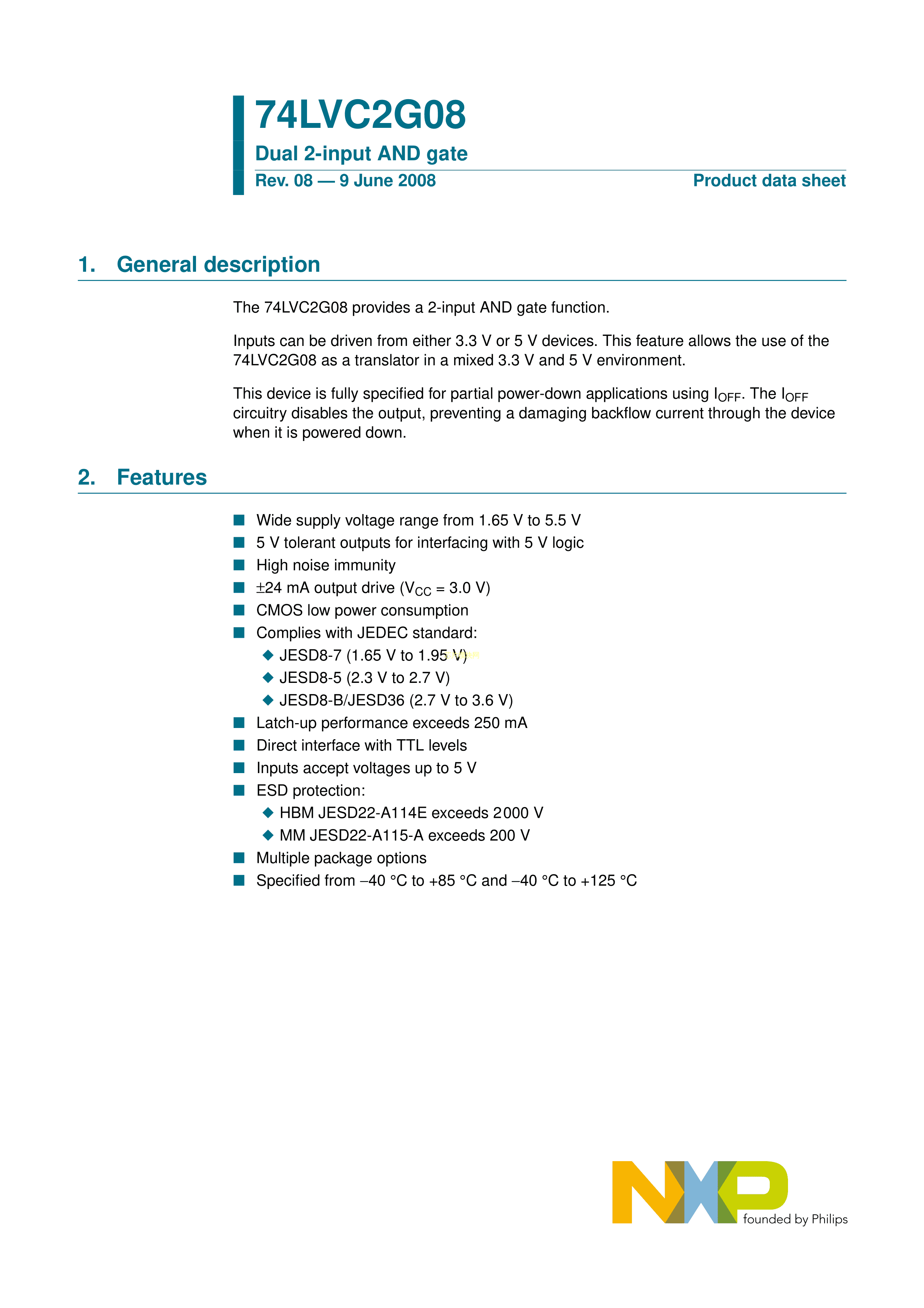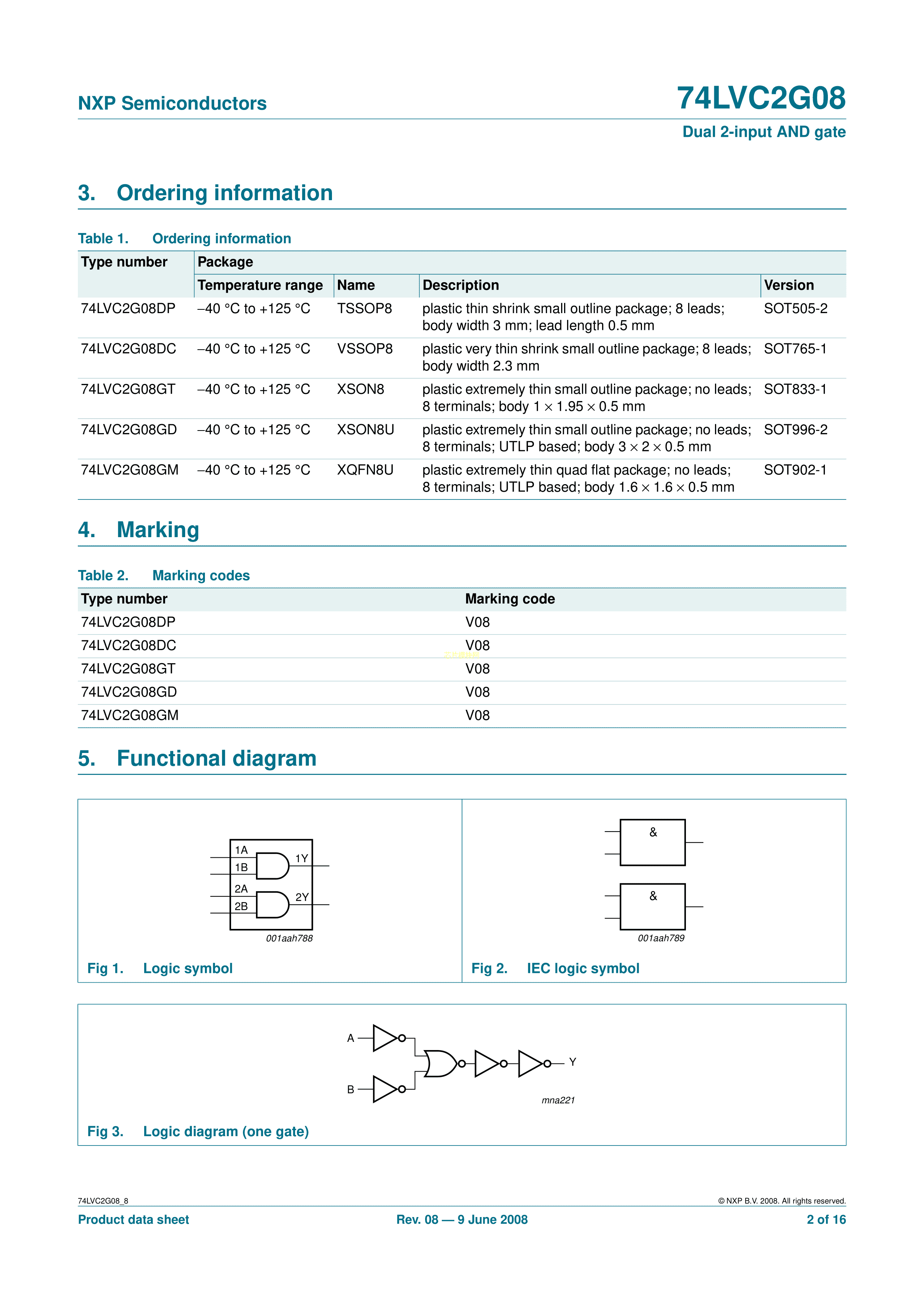 74lvc2G08数据手册VSSOP-8封装NXP(恩智浦)PDF规格书,中英文下载