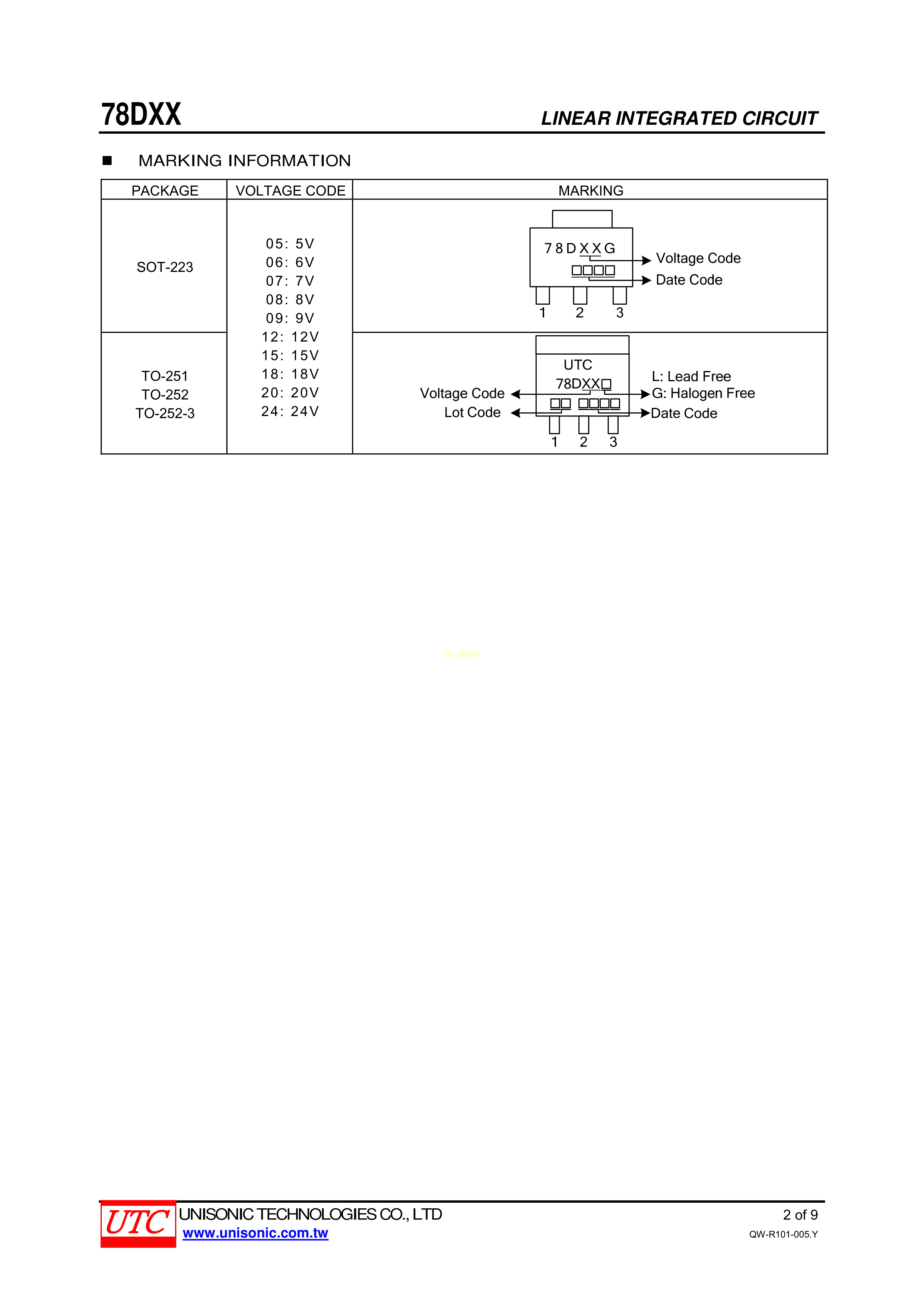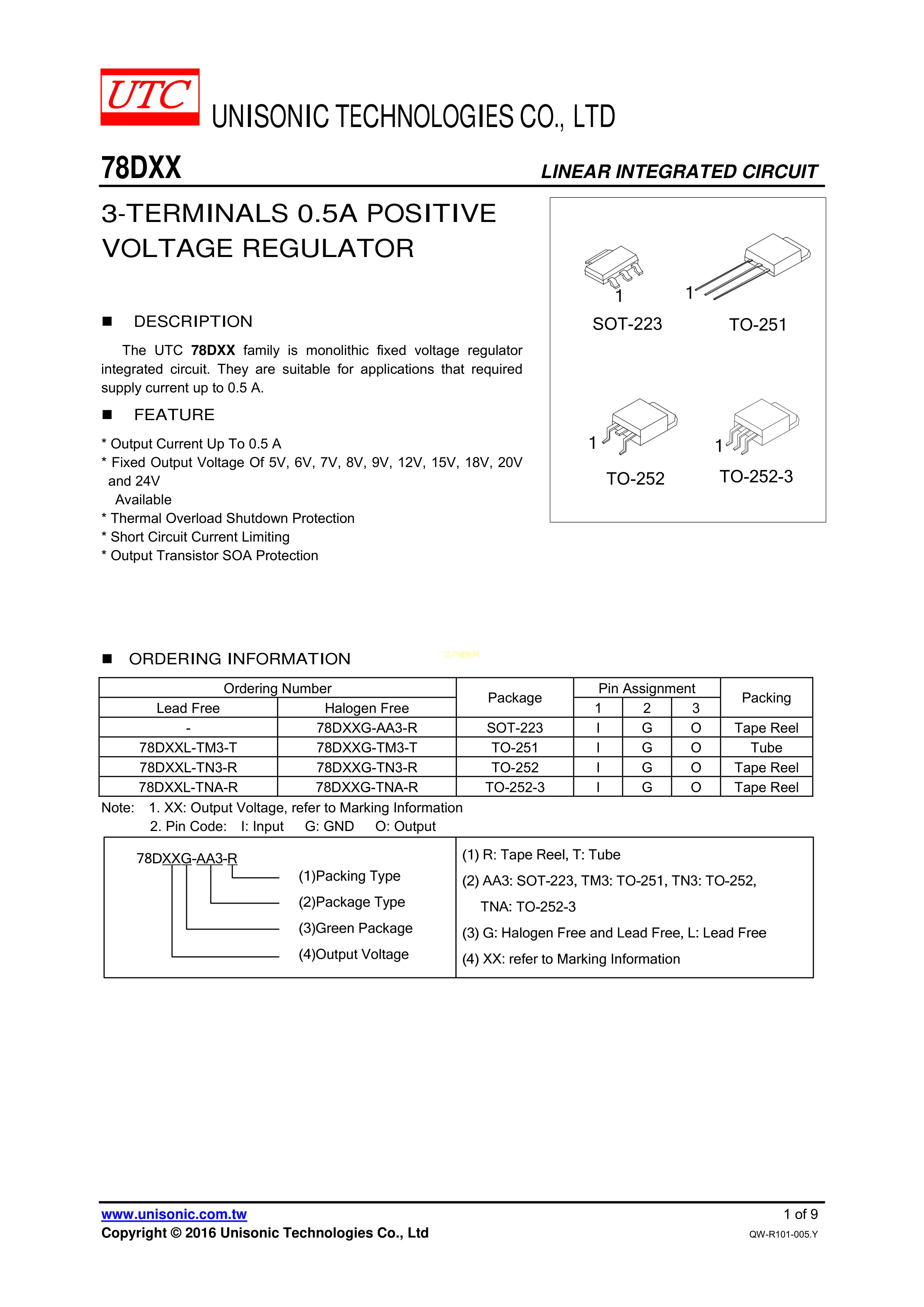 78D05G-TN3-R数据手册TO-252-2(DPAK)封装UTC(友顺)PDF规格书,中英文下