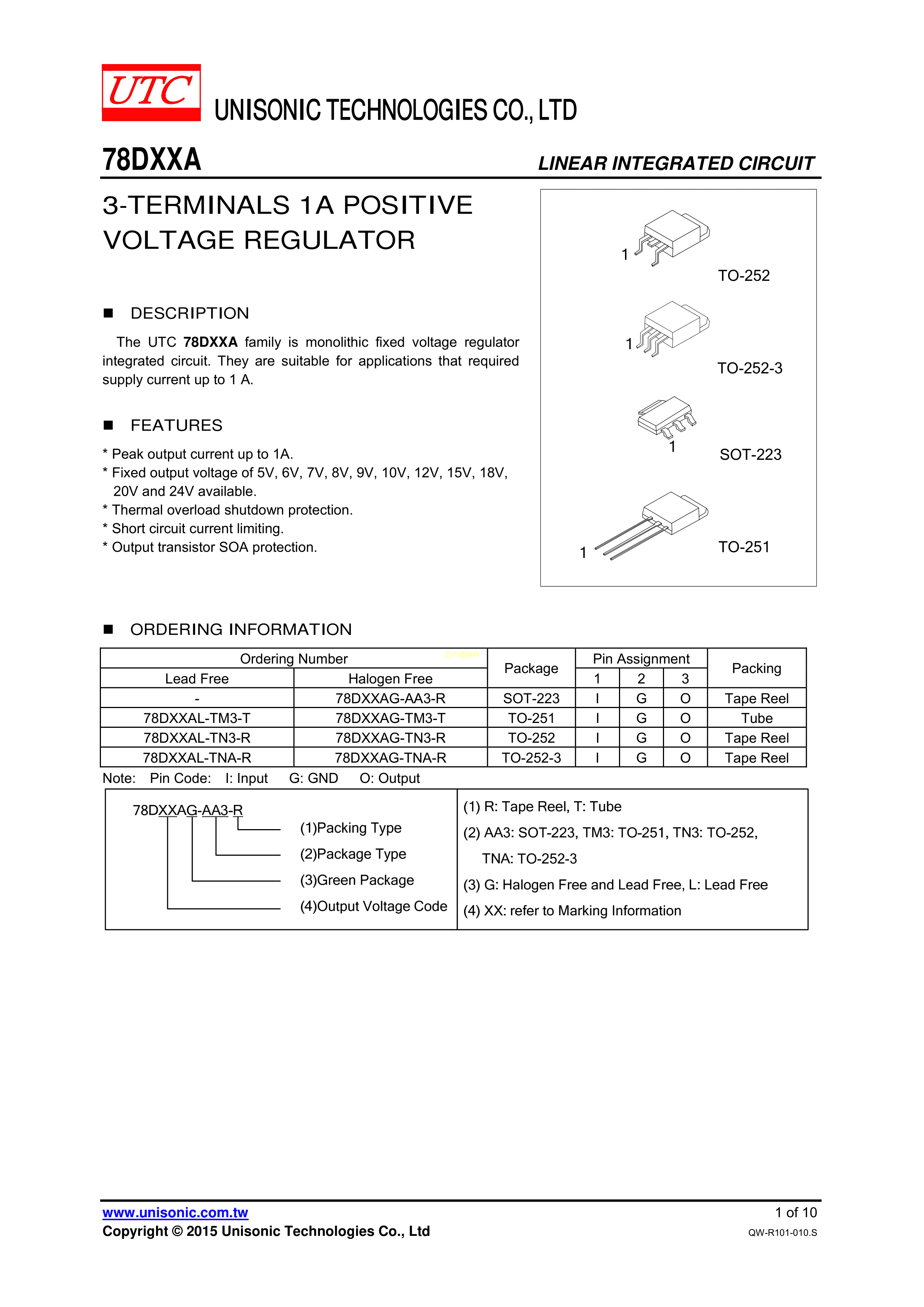 78D15AL-TN3-R数据手册TO-252-2(DPAK)封装UTC(友顺)PDF规格书,中英文下载