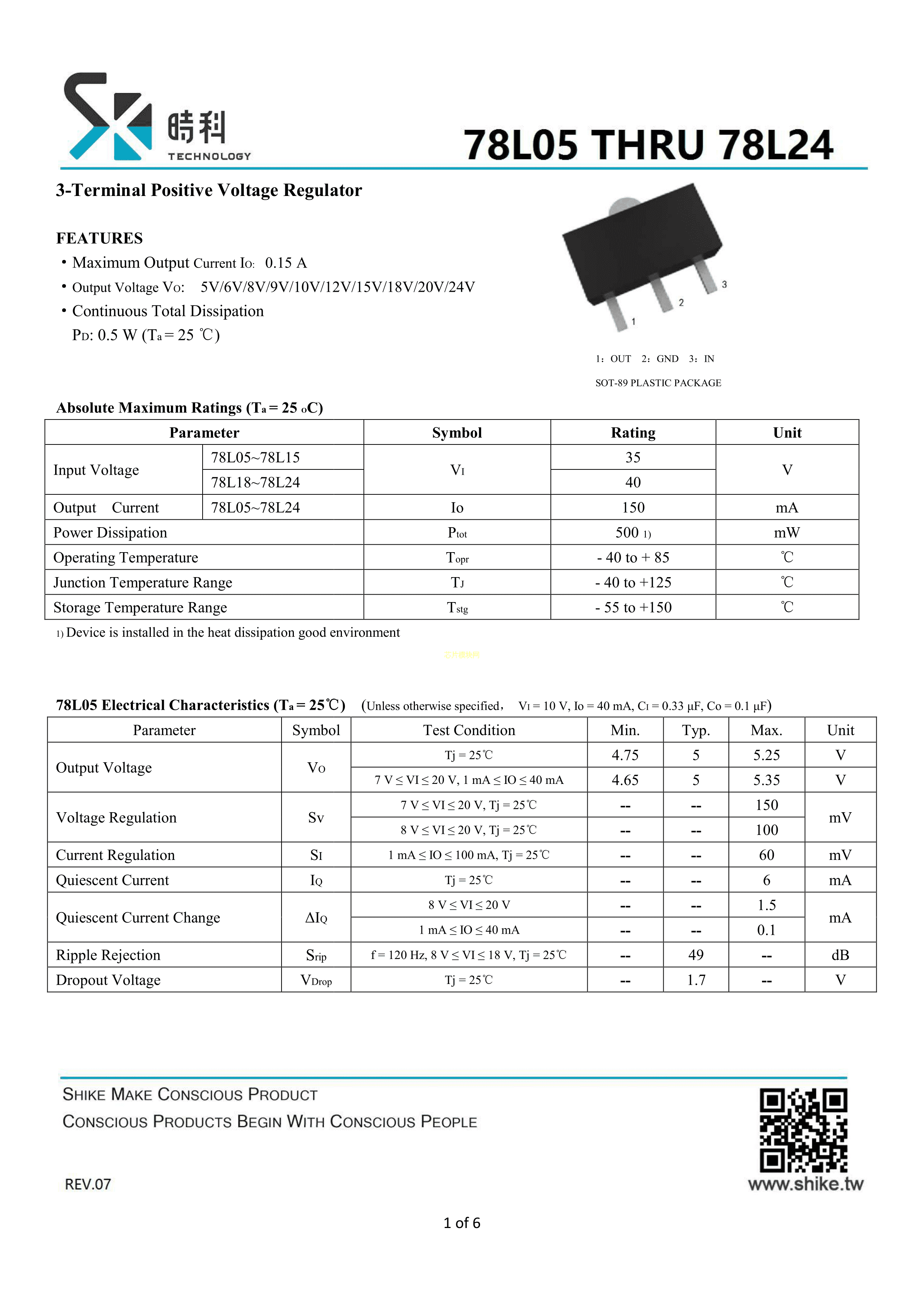78L06数据手册SOT-89(SOT-89-3)封装SHIKUES(时科)PDF规格书,中英文下载