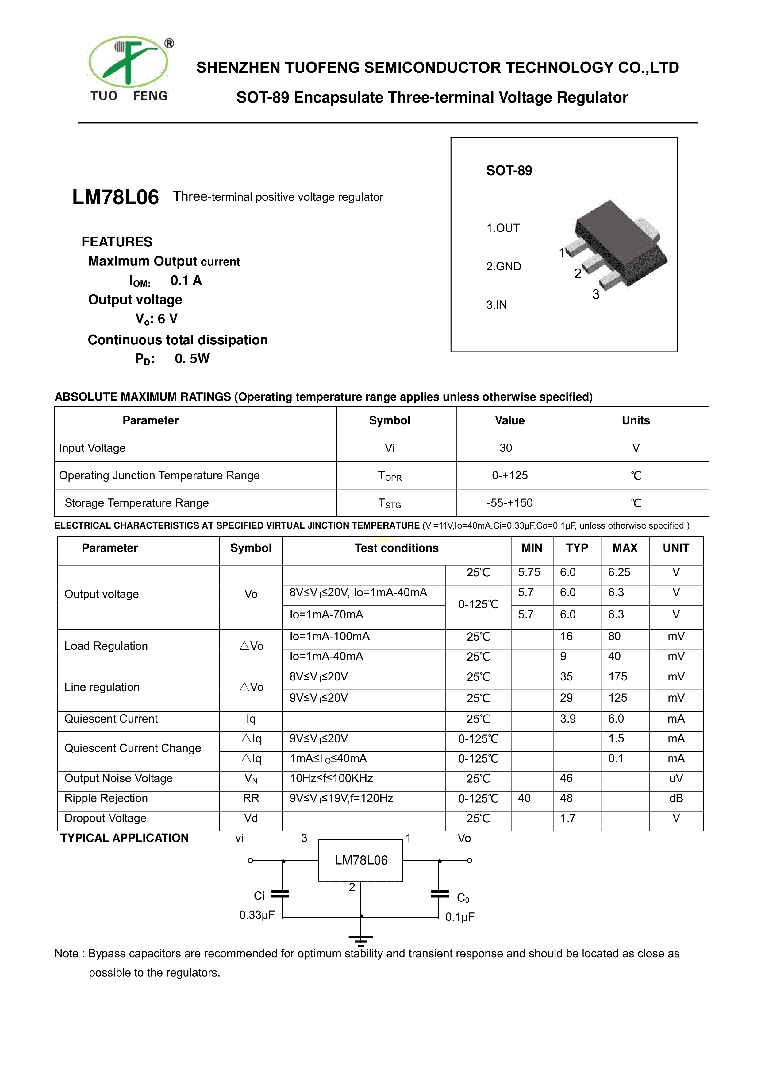 78L06数据手册SOT-89封装TF(拓锋)PDF规格书,中英文下载