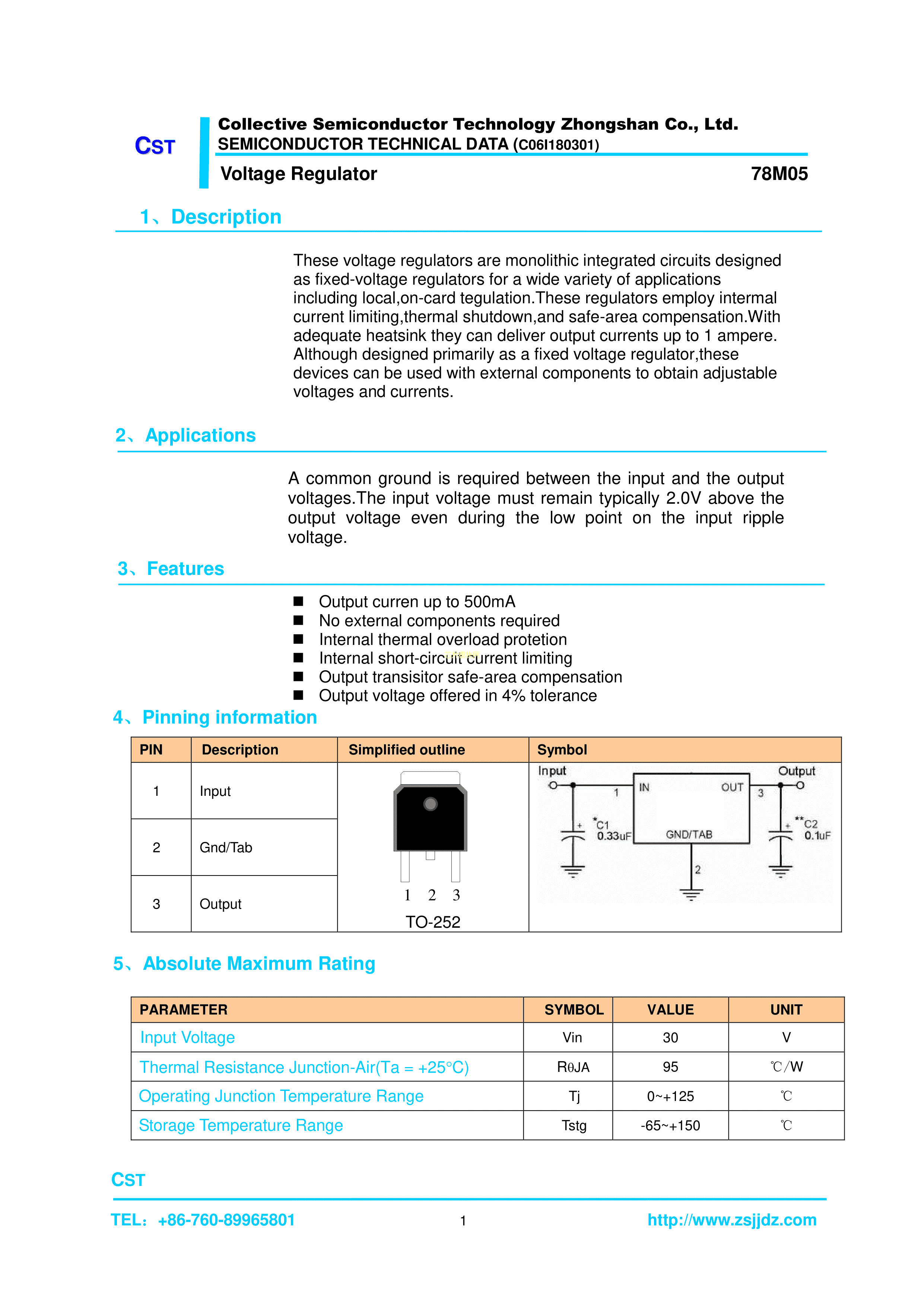 78M05数据手册TO-252封装集晶电子.pdf