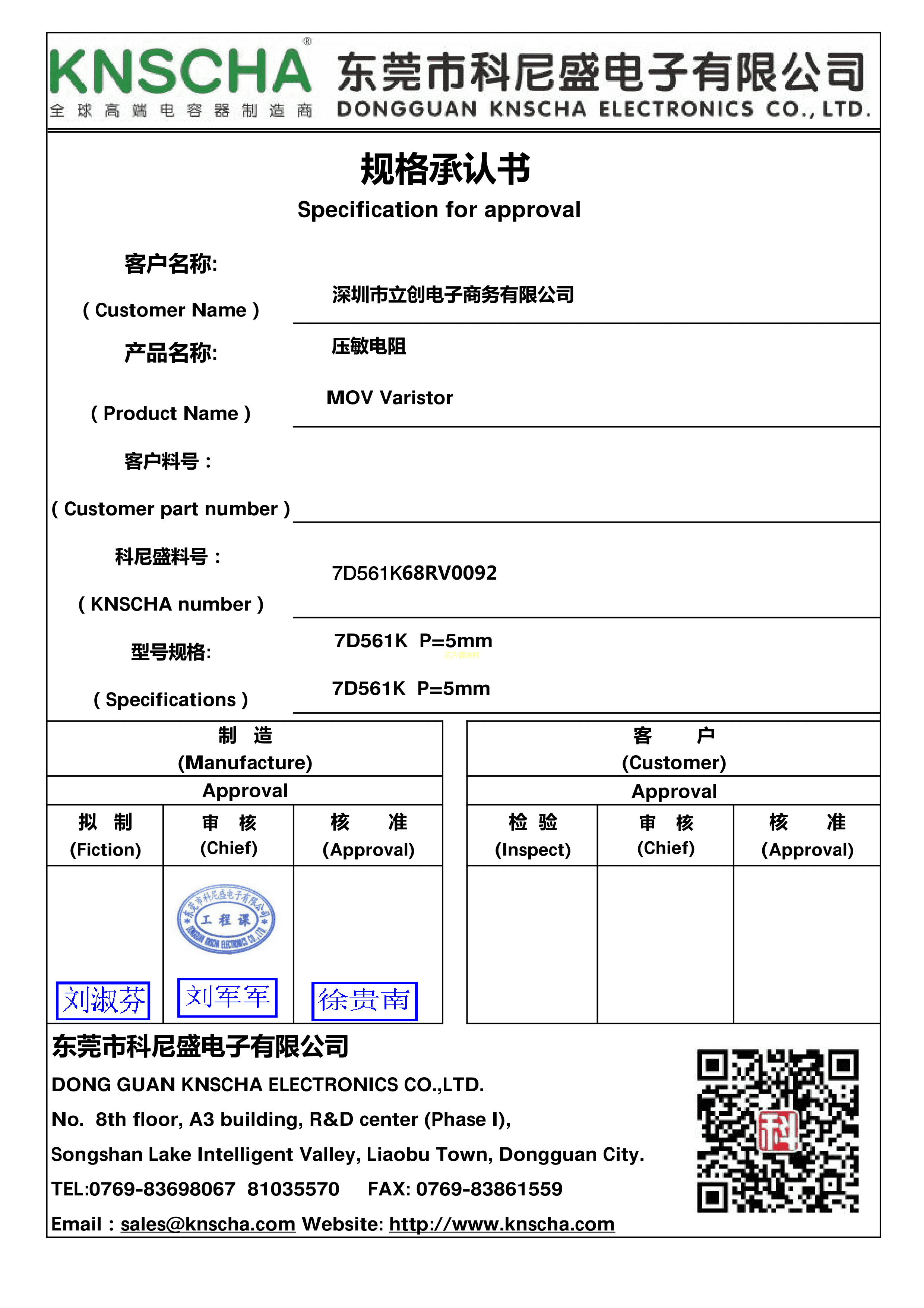 7D561K68RV0092数据手册径向引线P5mm封装KNSCHA(科尼盛)PDF规格书,中英文下载