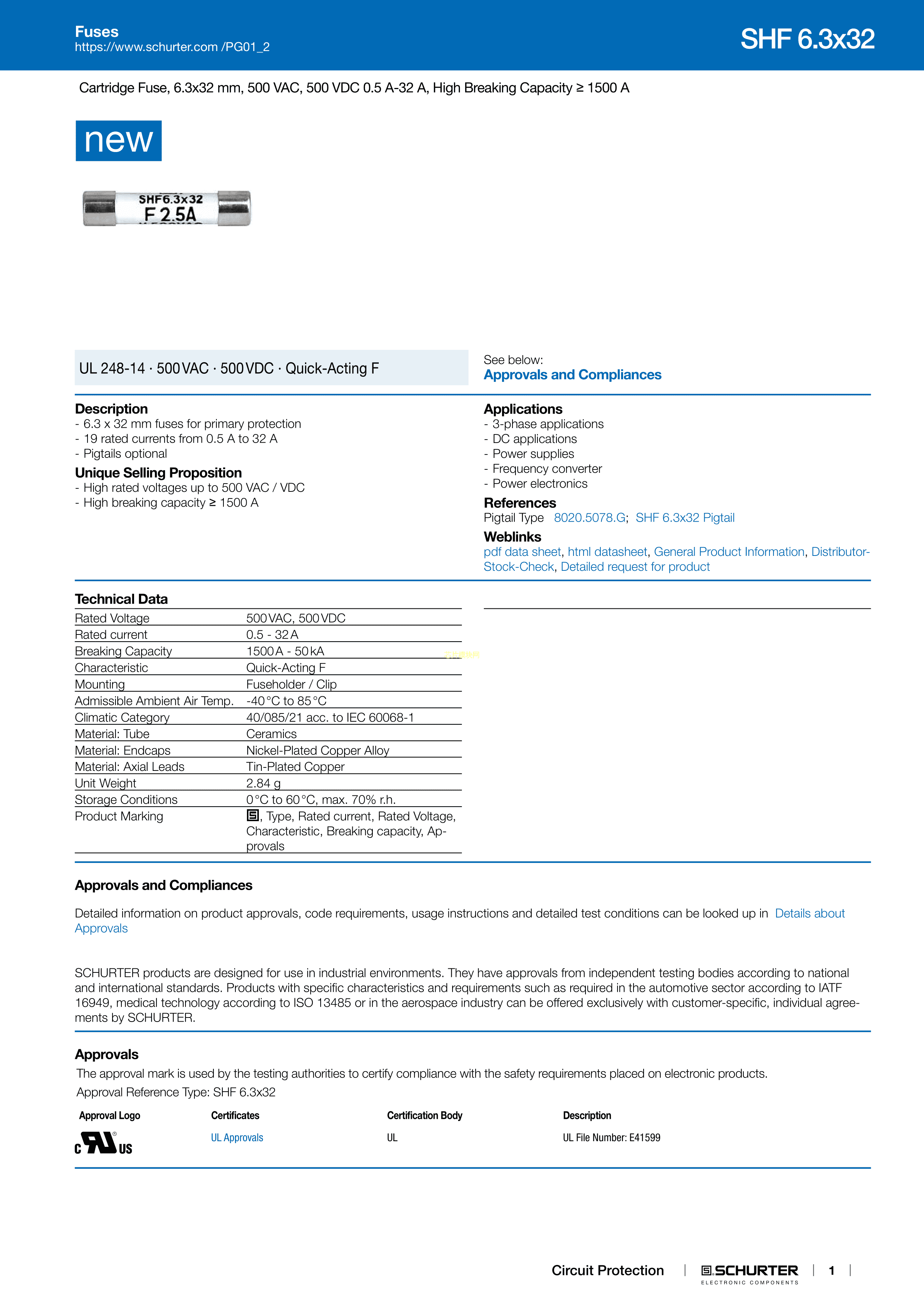 8020.5070.G数据手册管6.35x31.8mm封装SCHURTERPDF规格书,中英文下载