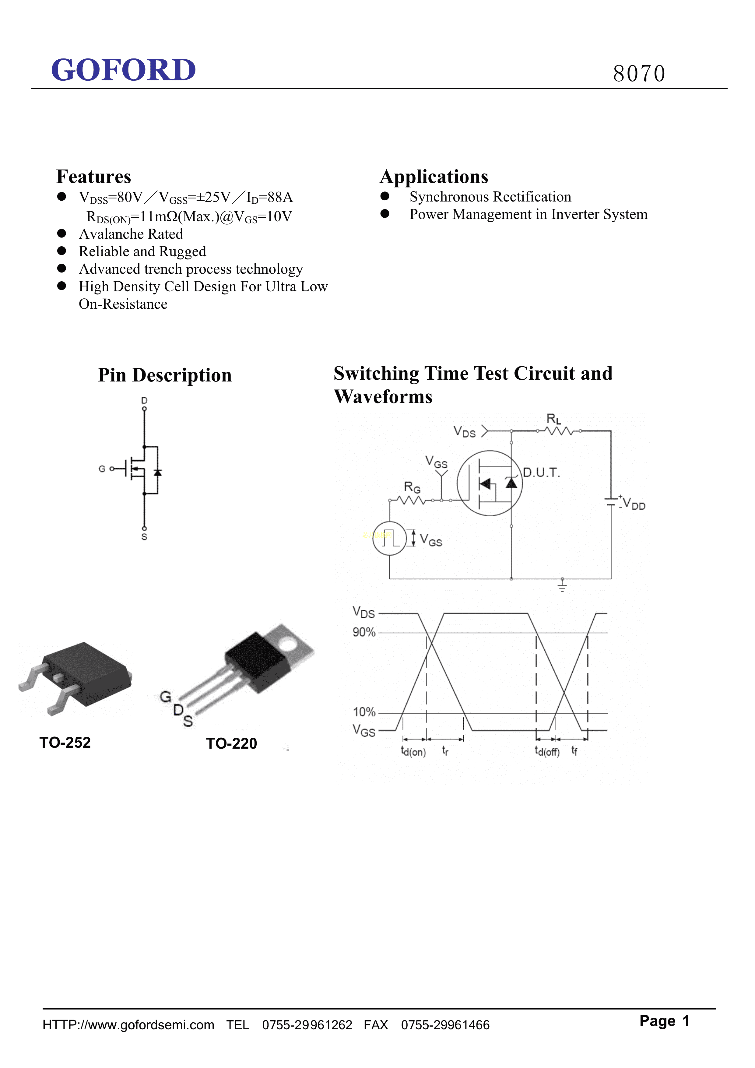 8070.0数据手册TO-220(TO-220-3)封装GOFORD(谷峰)PDF规格书,中英文下载