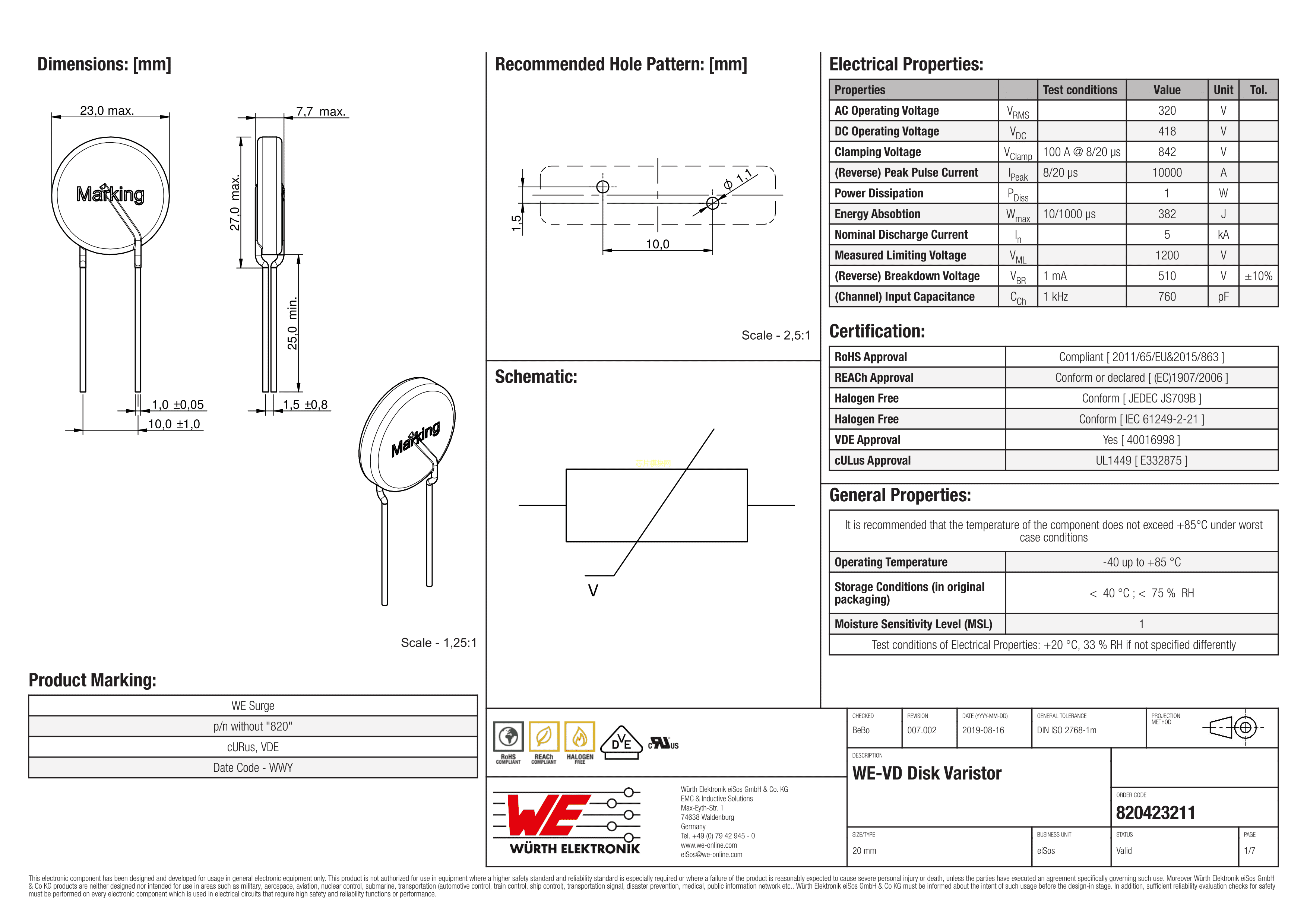 820423211数据手册径向引线封装Wurth(伍尔特)PDF规格书,中英文下载