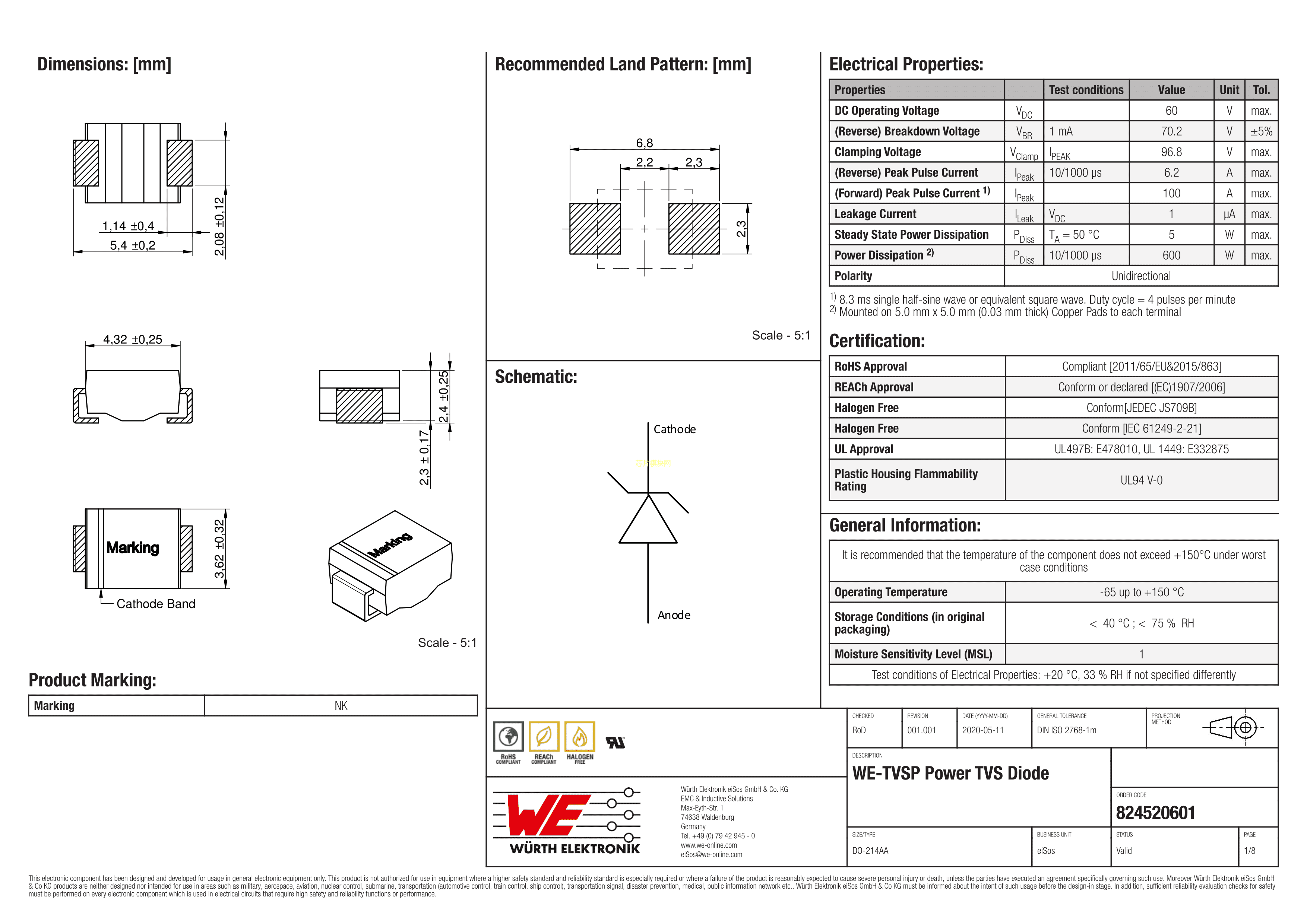 824520601数据手册DO-214AA封装Wurth(伍尔特)PDF规格书,中英文下载