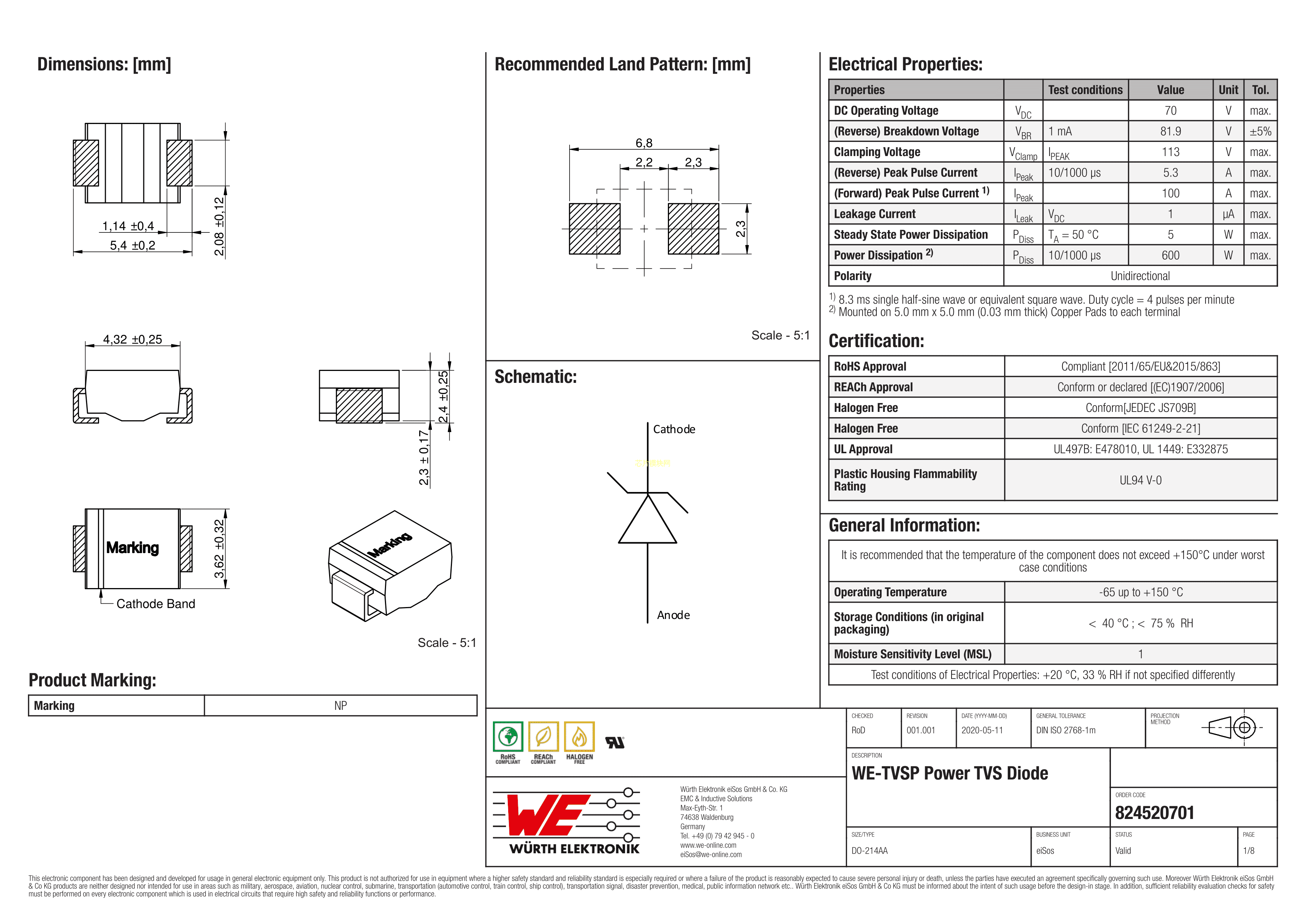 824520701数据手册DO-214AA封装Wurth(伍尔特)PDF规格书,中英文下载