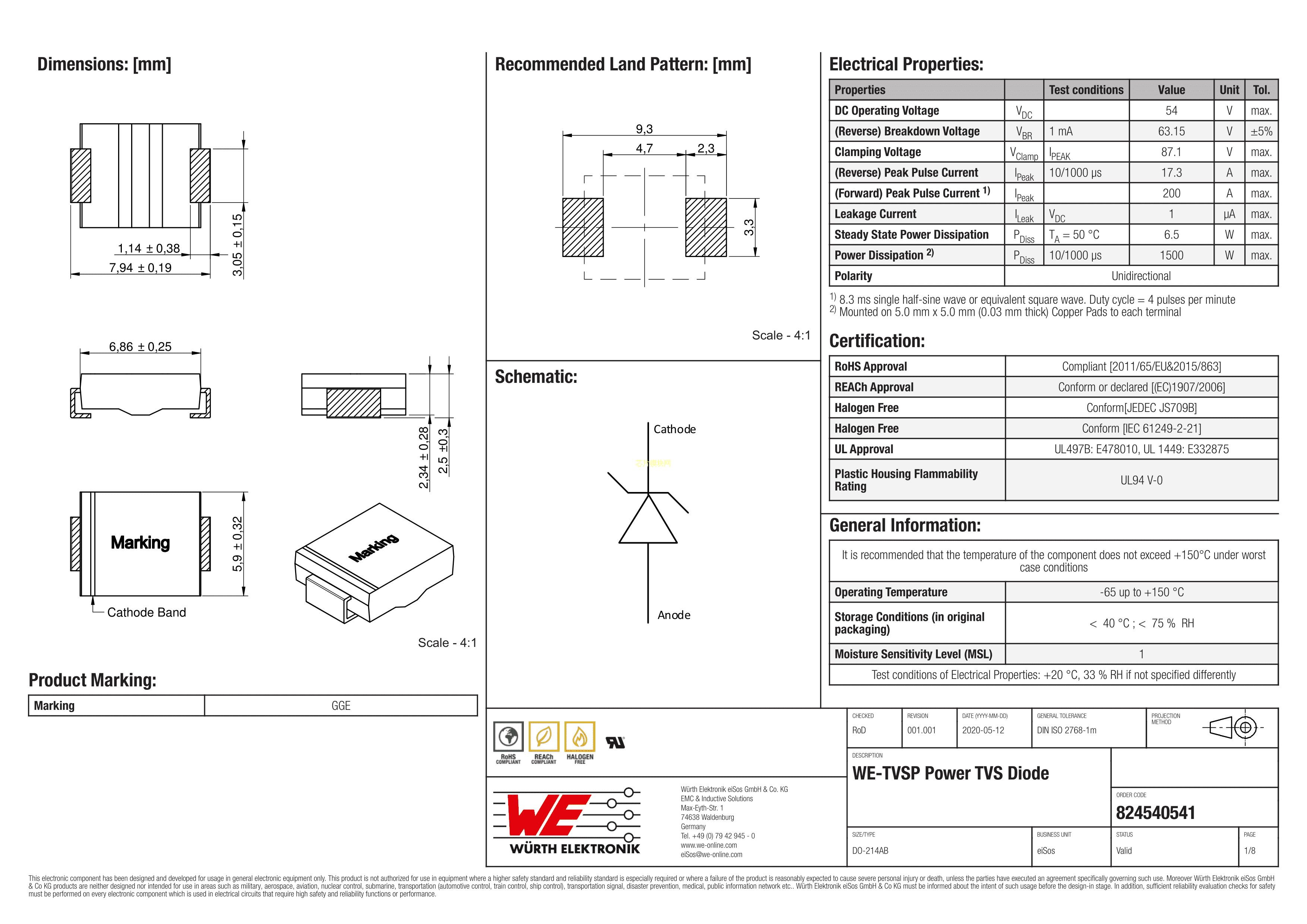 824540541数据手册DO-214AB封装Wurth(伍尔特)PDF规格书,中英文下载