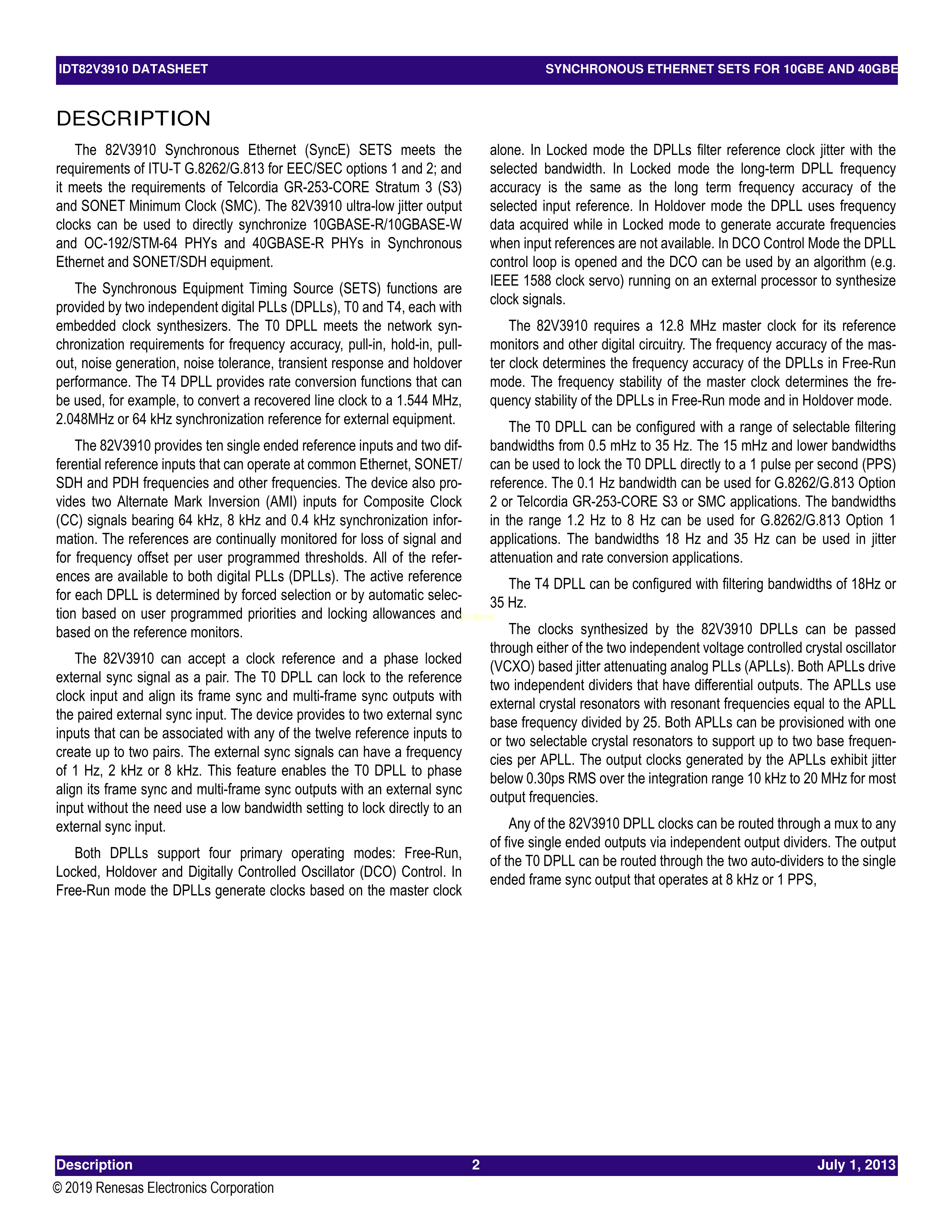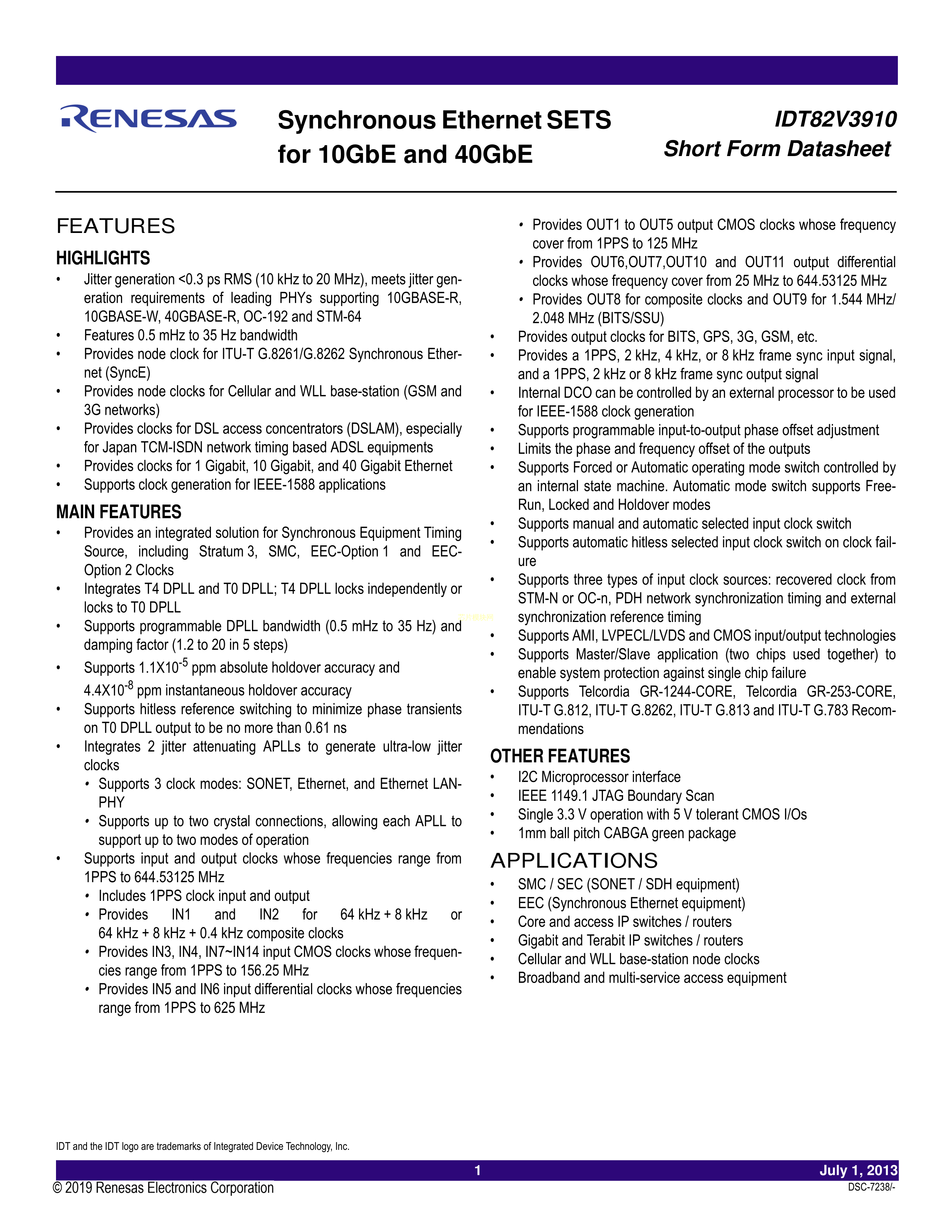 82V3910AUG数据手册BGA-196(15x15)封装RENESAS(瑞萨)-IDTPDF规格