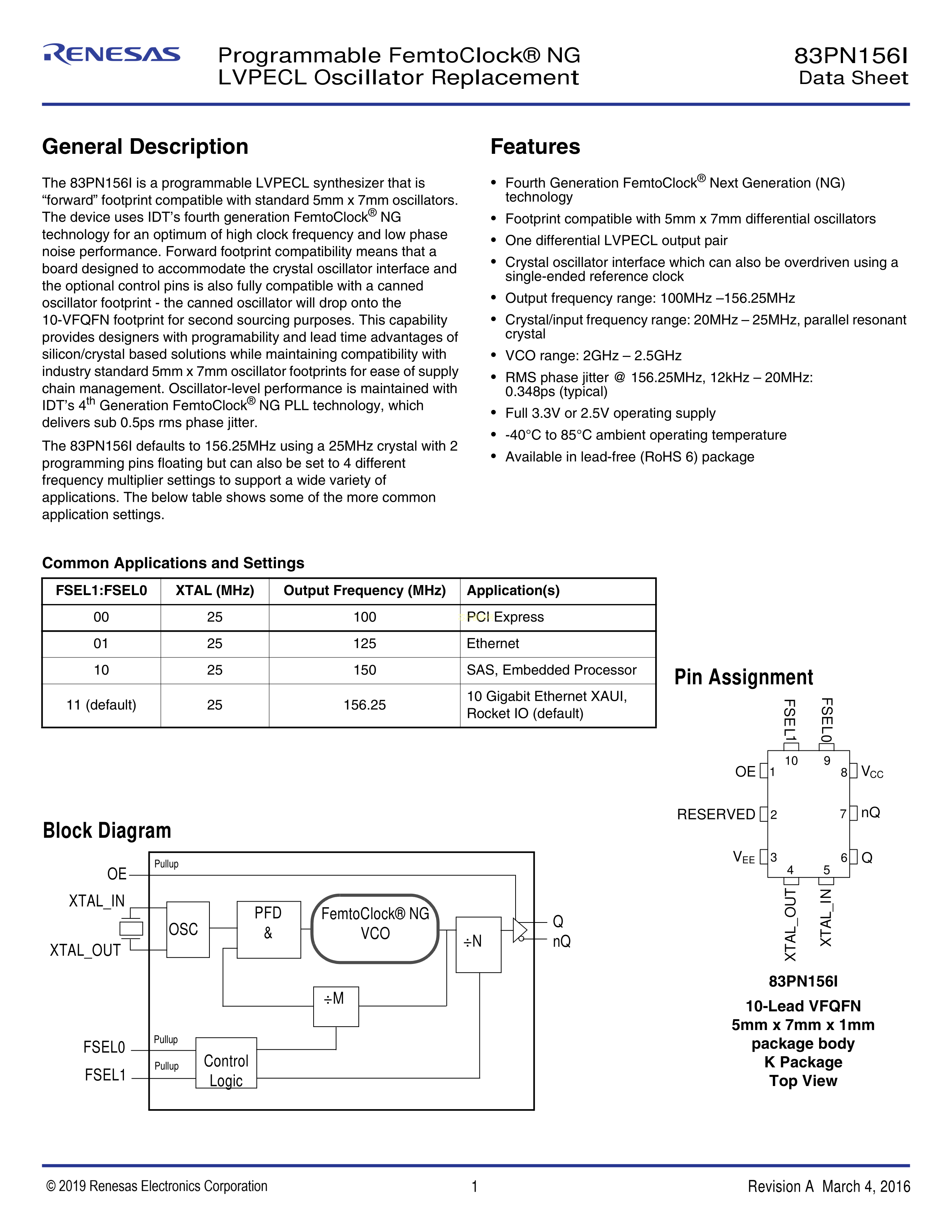 83PN156DKILF数据手册VFQFN-10封装RENESAS(瑞萨)-IDTPDF规格书,中英
