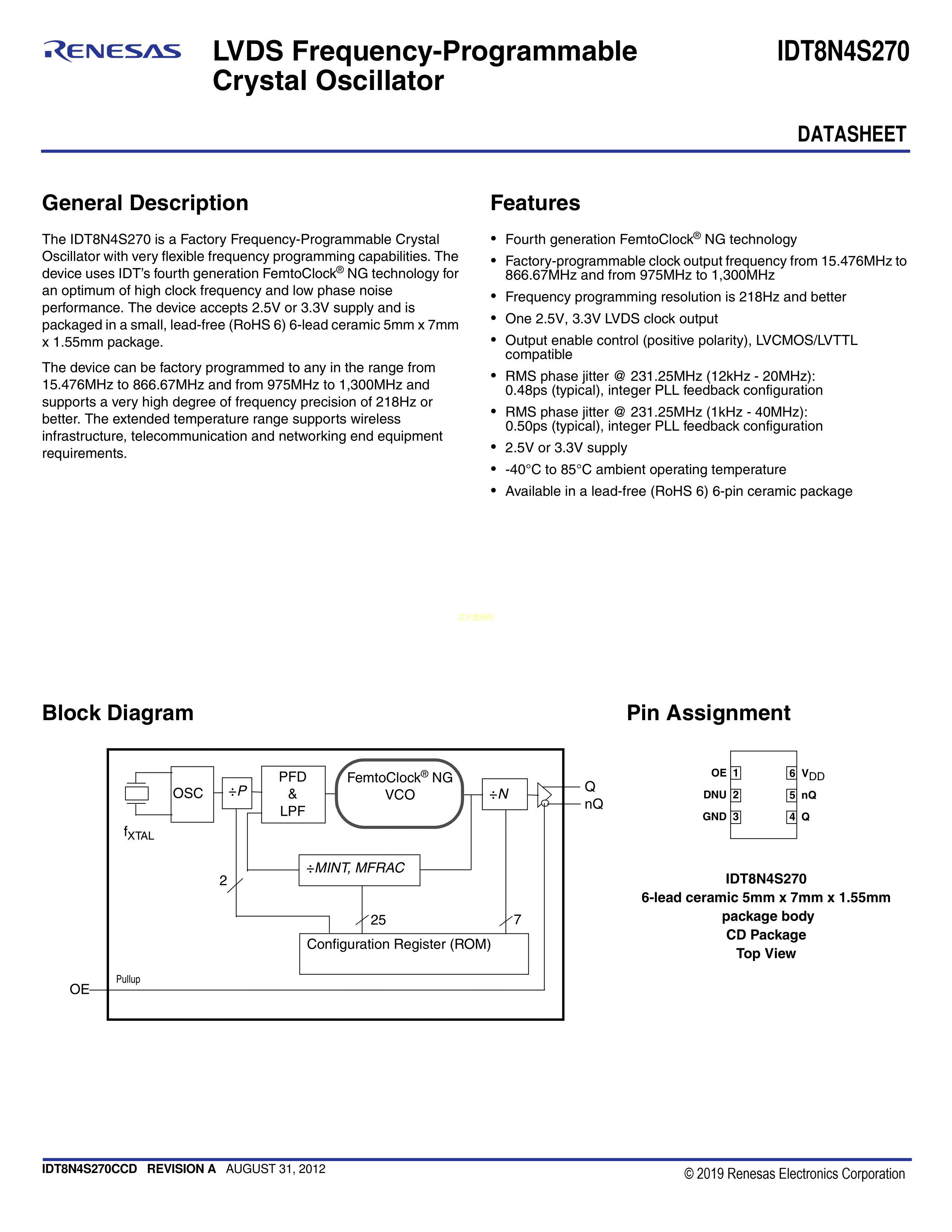 8N4S270EC-1088CDI8数据手册CLCC-6(7x5)封装RENESAS(瑞萨)-IDTPDF规格书,中英文下载