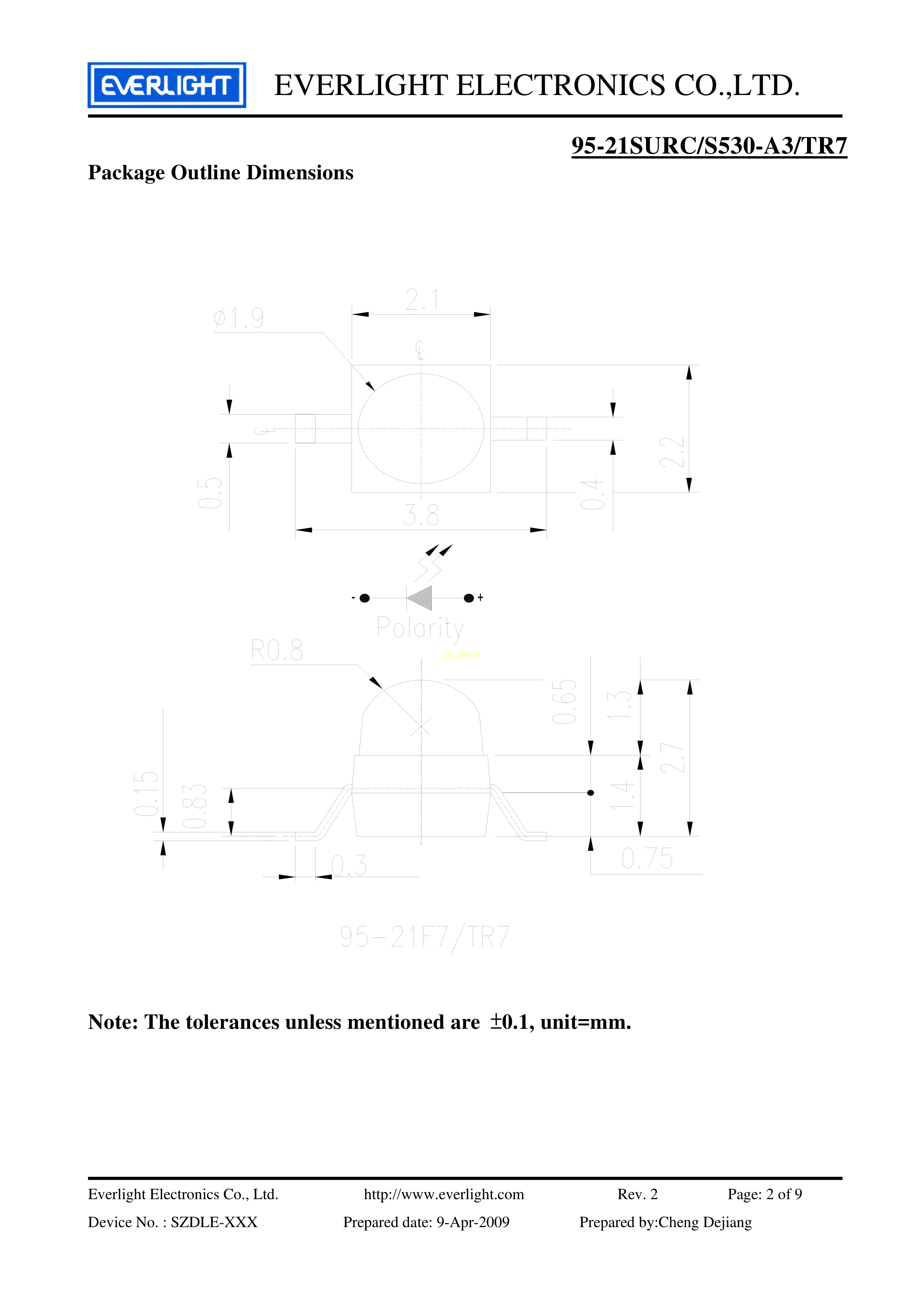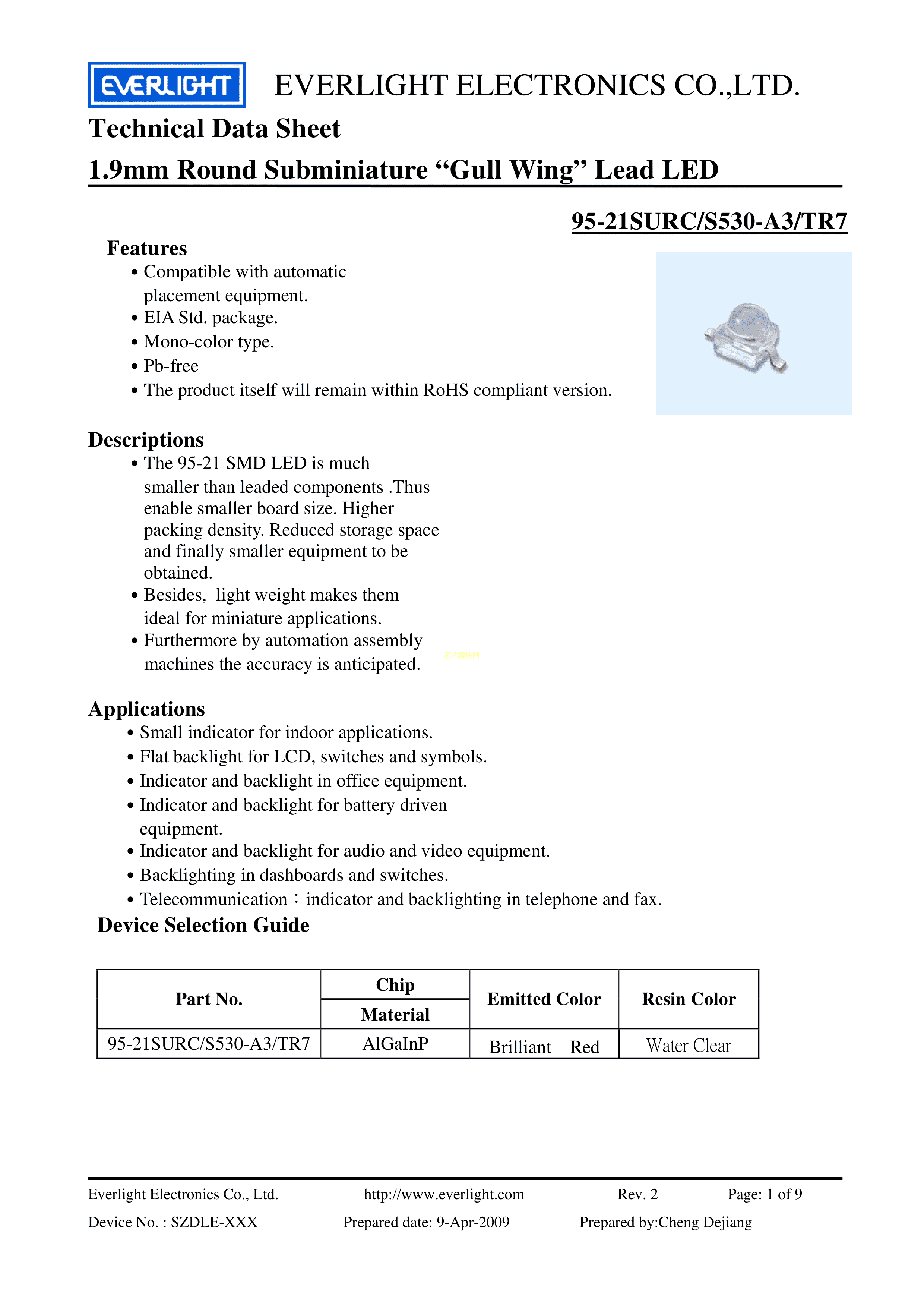 95-21SURC-S530-A3-TR7数据手册SMD2.1x2.2x2.7mm封装EVERLIG