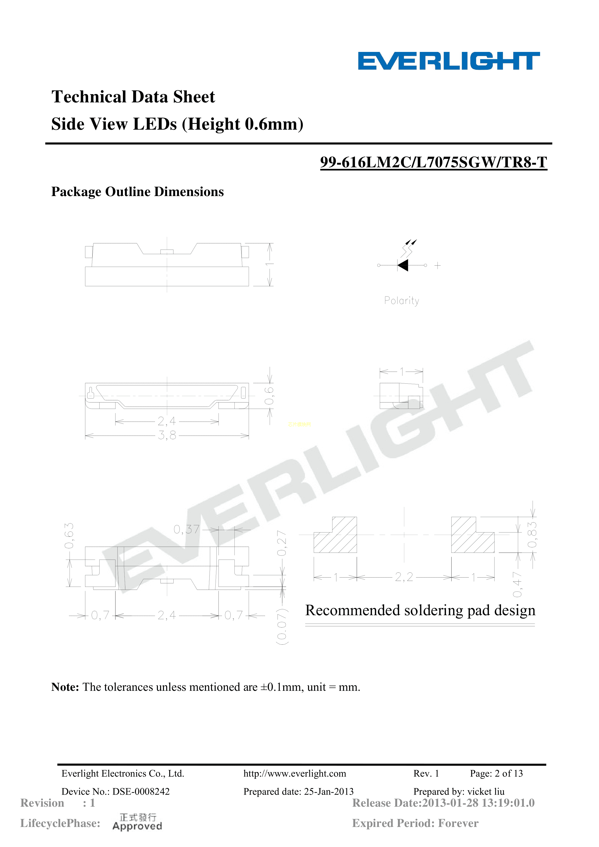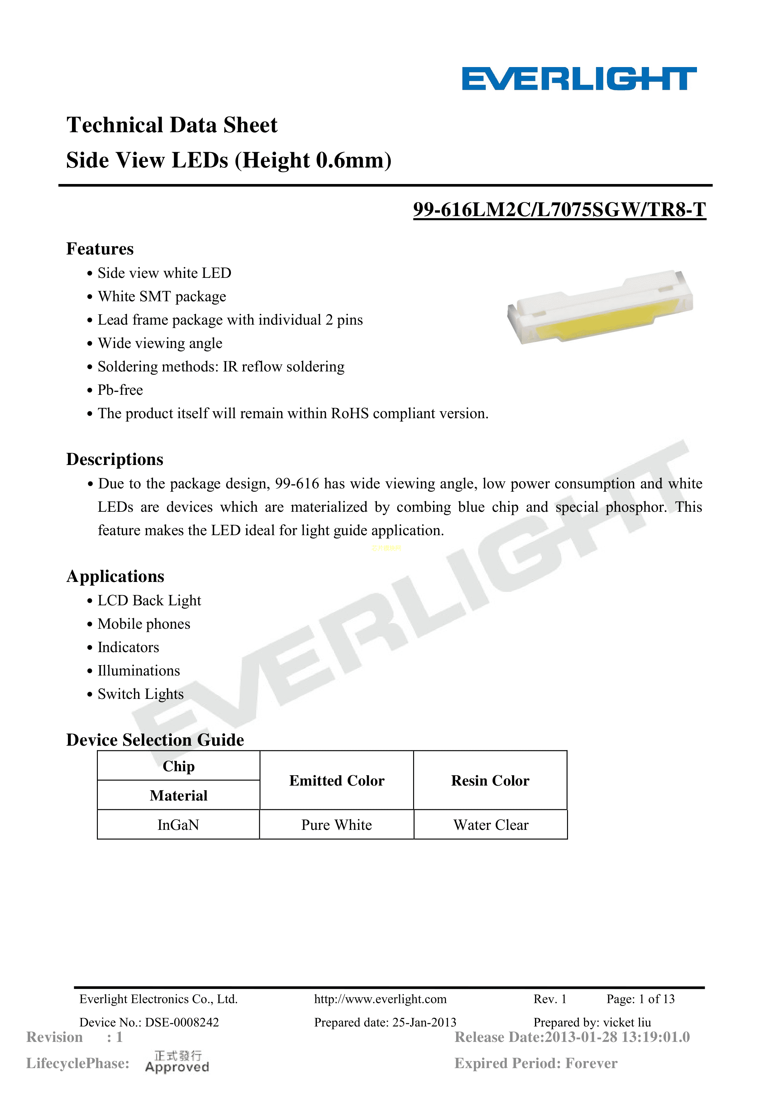 99-616LM2C-L7075SGW-TR8-T数据手册SMD封装EVERLIGHT(台湾亿光)P