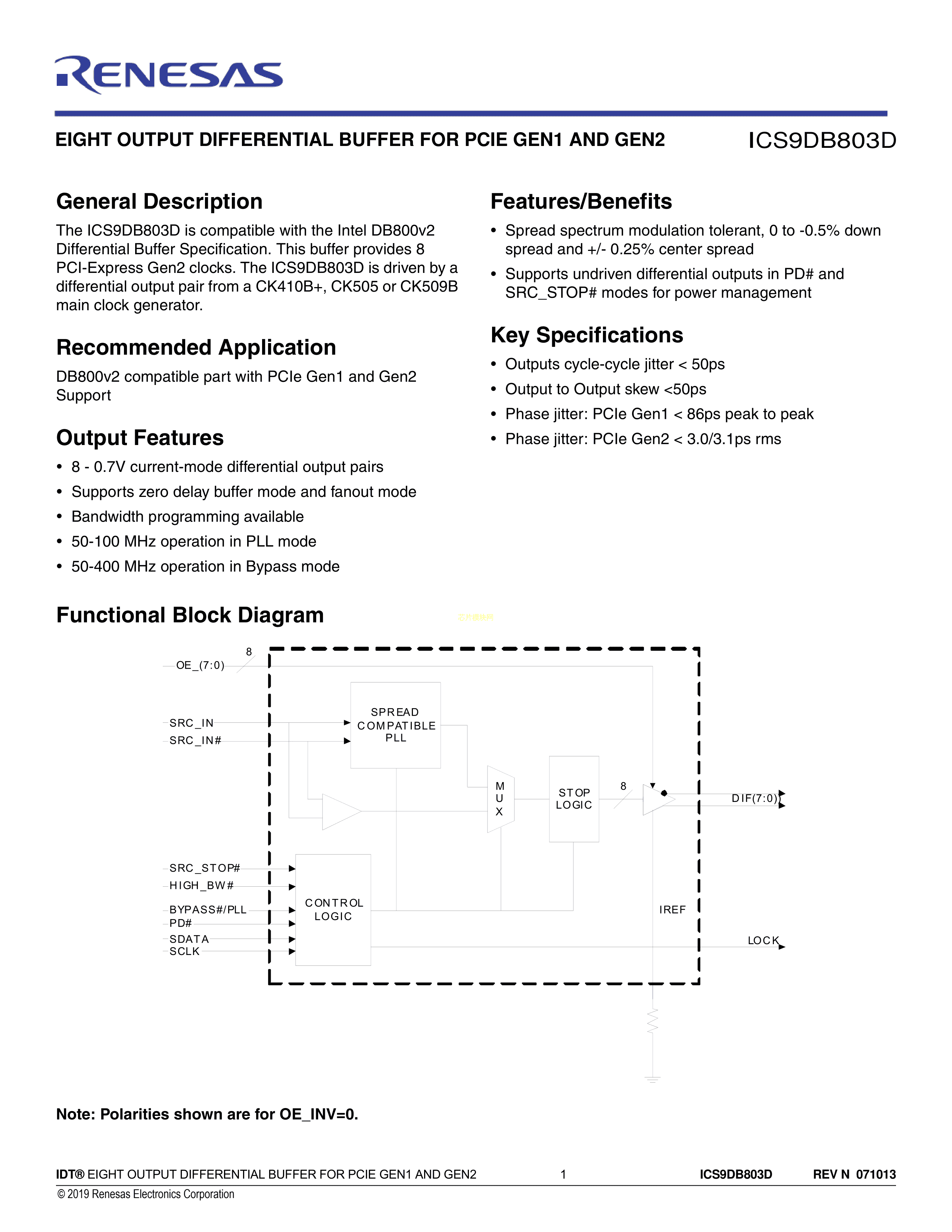 9DB803DFLF数据手册SSOP-48封装RENESAS(瑞萨)-IDTPDF规格书,中英文下载