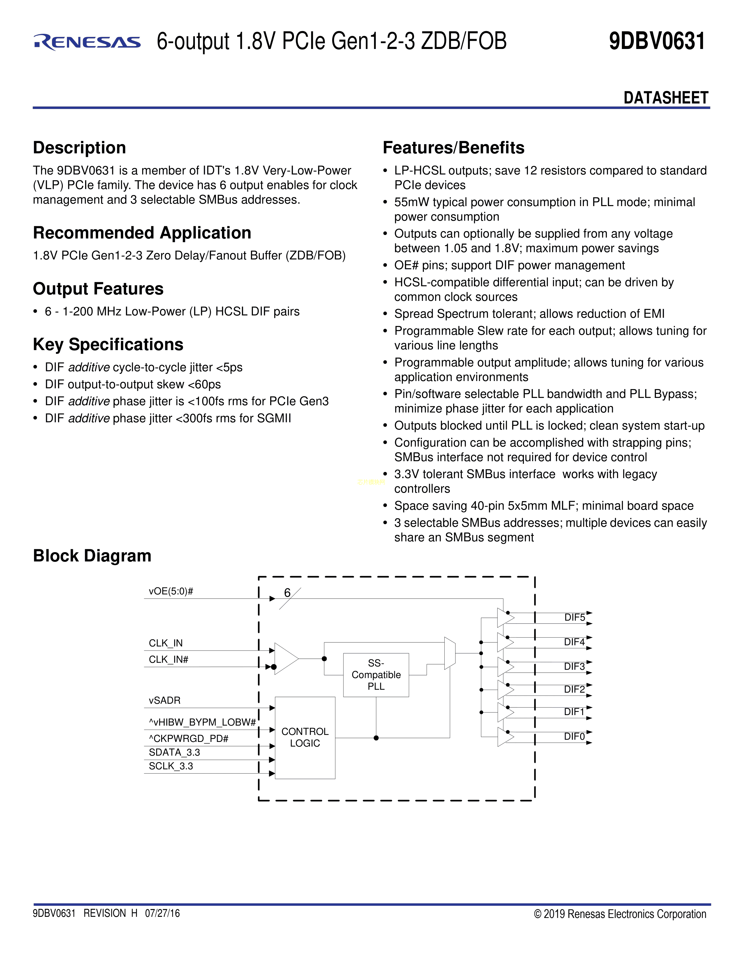 9DBV0631BKLFT数据手册VFQFPN-40(5x5)封装RENESAS(瑞萨)-IDTPDF规格书,中英文下载