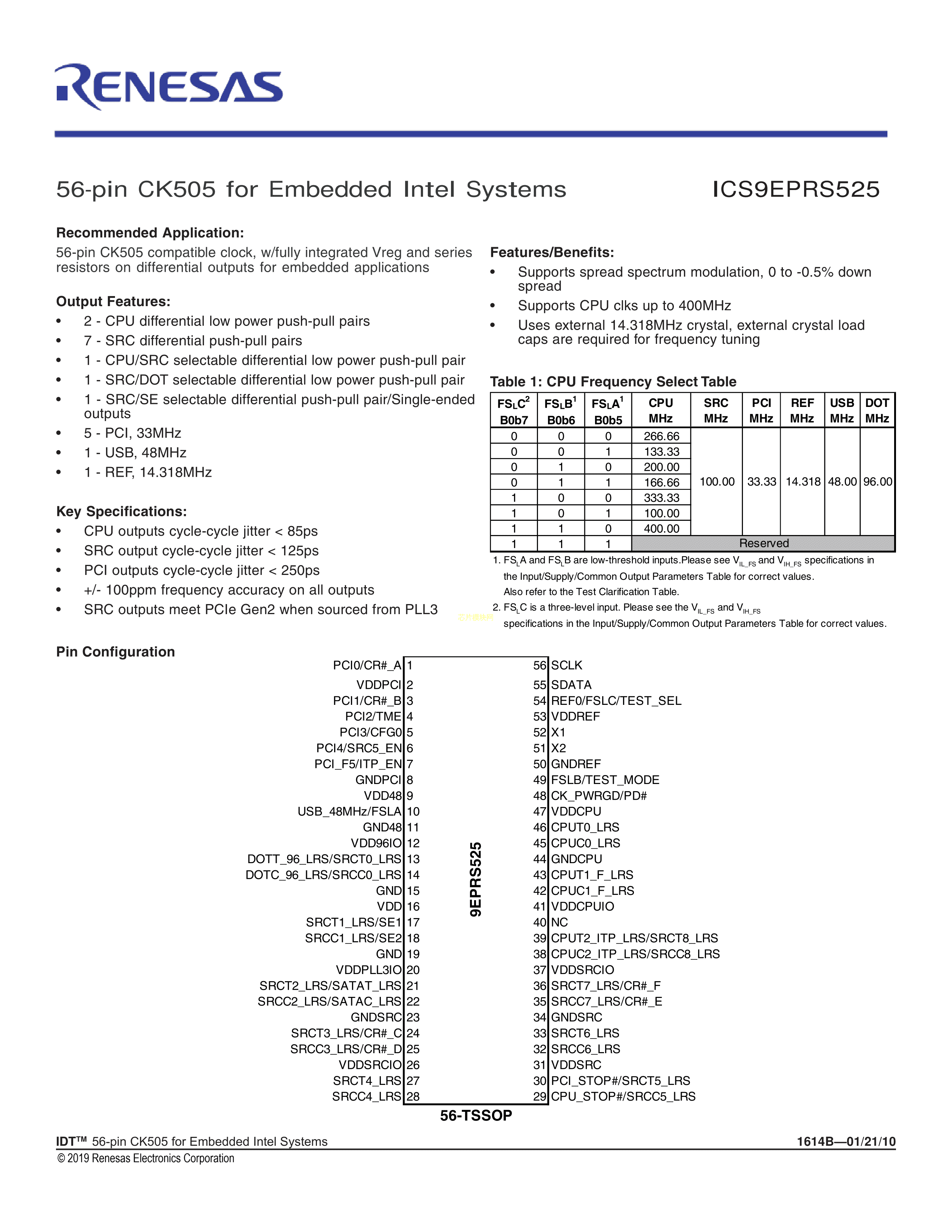 9EPRS525AGILF数据手册TSSOP-56封装RENESAS(瑞萨)-IDTPDF规格书,中英文下载