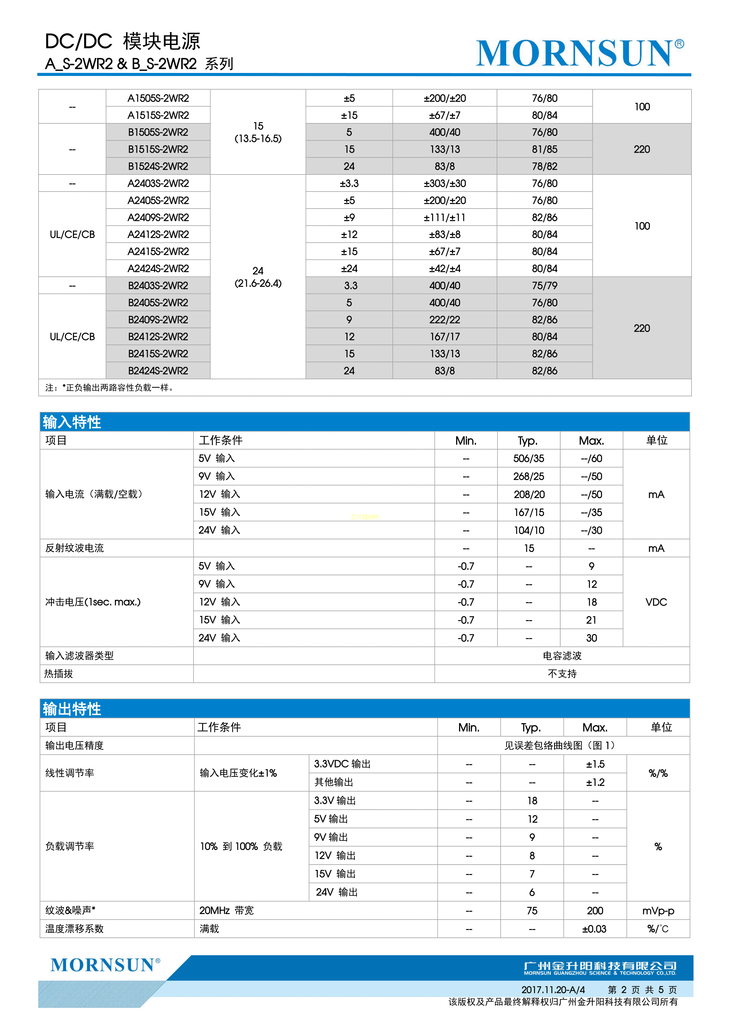 A0512S-2WR2数据手册插件封装MORNSUN(金升阳)PDF规格书,中英文下载