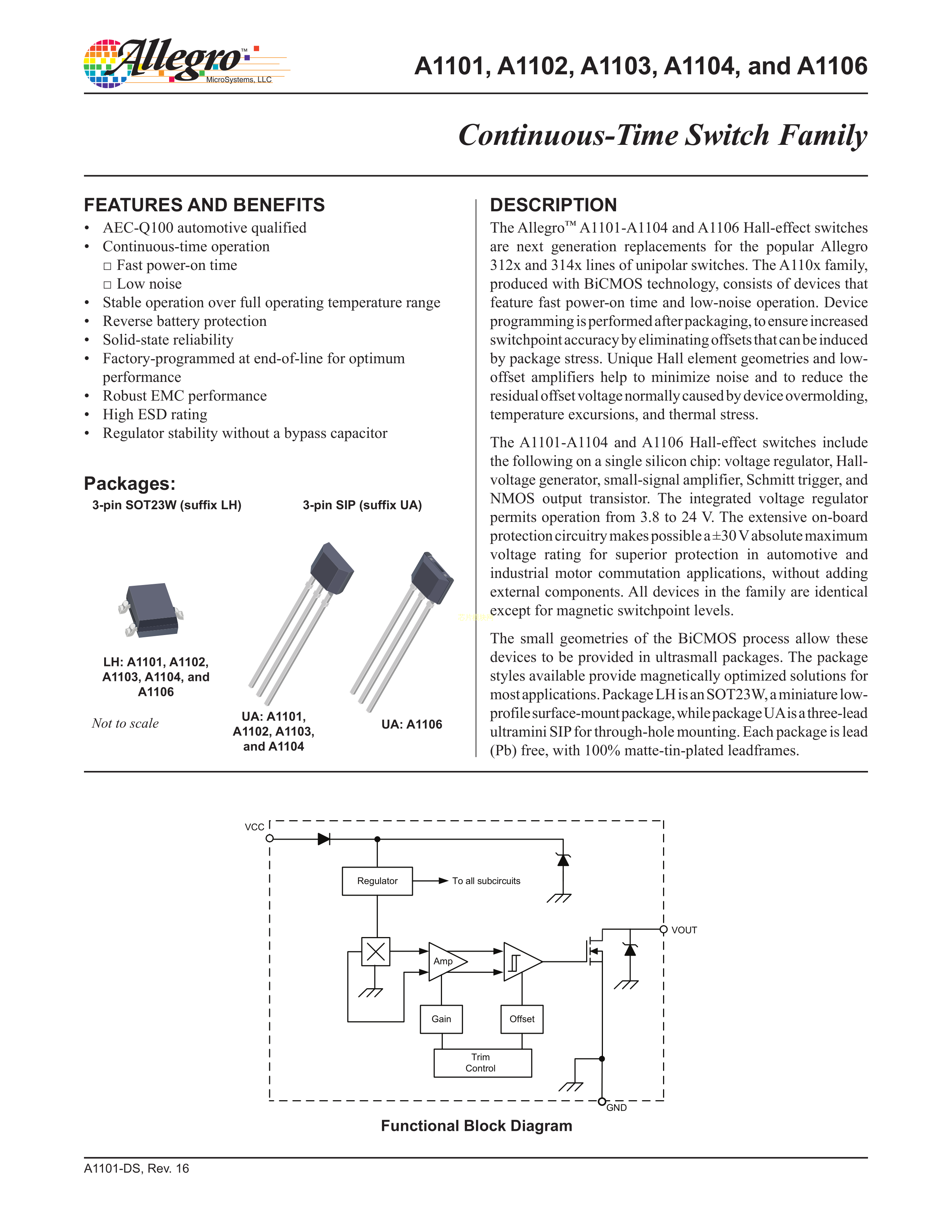 A1104EUA-T数据手册SIP-3封装ALLEGRO(美国埃戈罗)PDF规格书,中英文下载