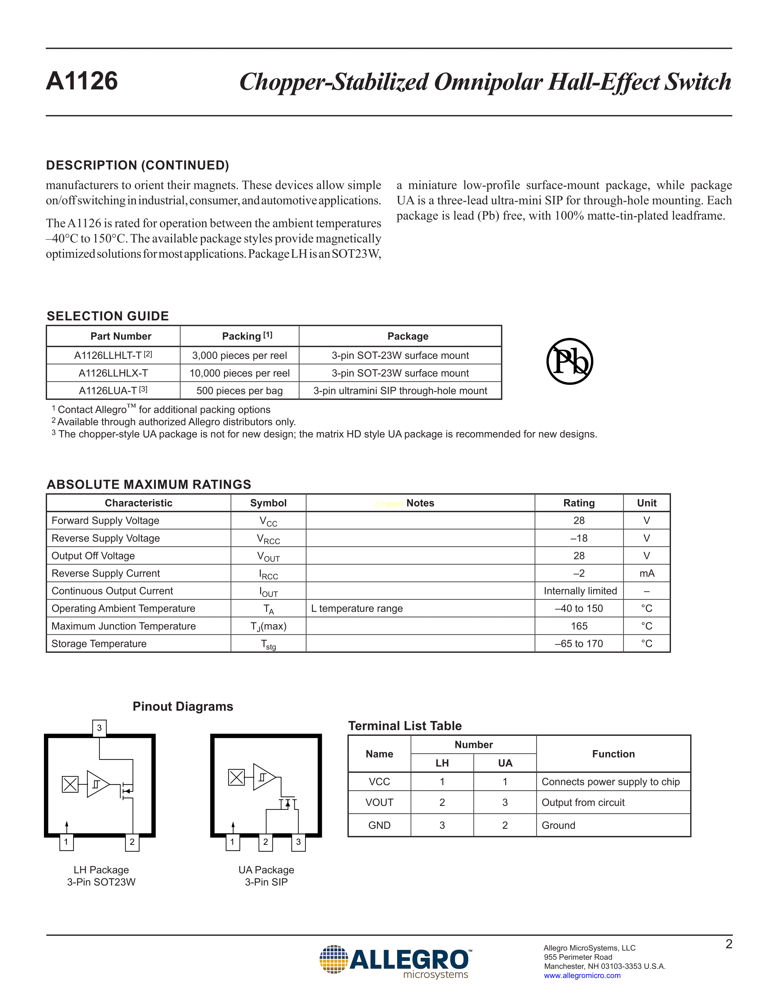 A1126LLHLT-T数据手册SOT-23封装ALLEGRO(美国埃戈罗)PDF规格书,中英文下载