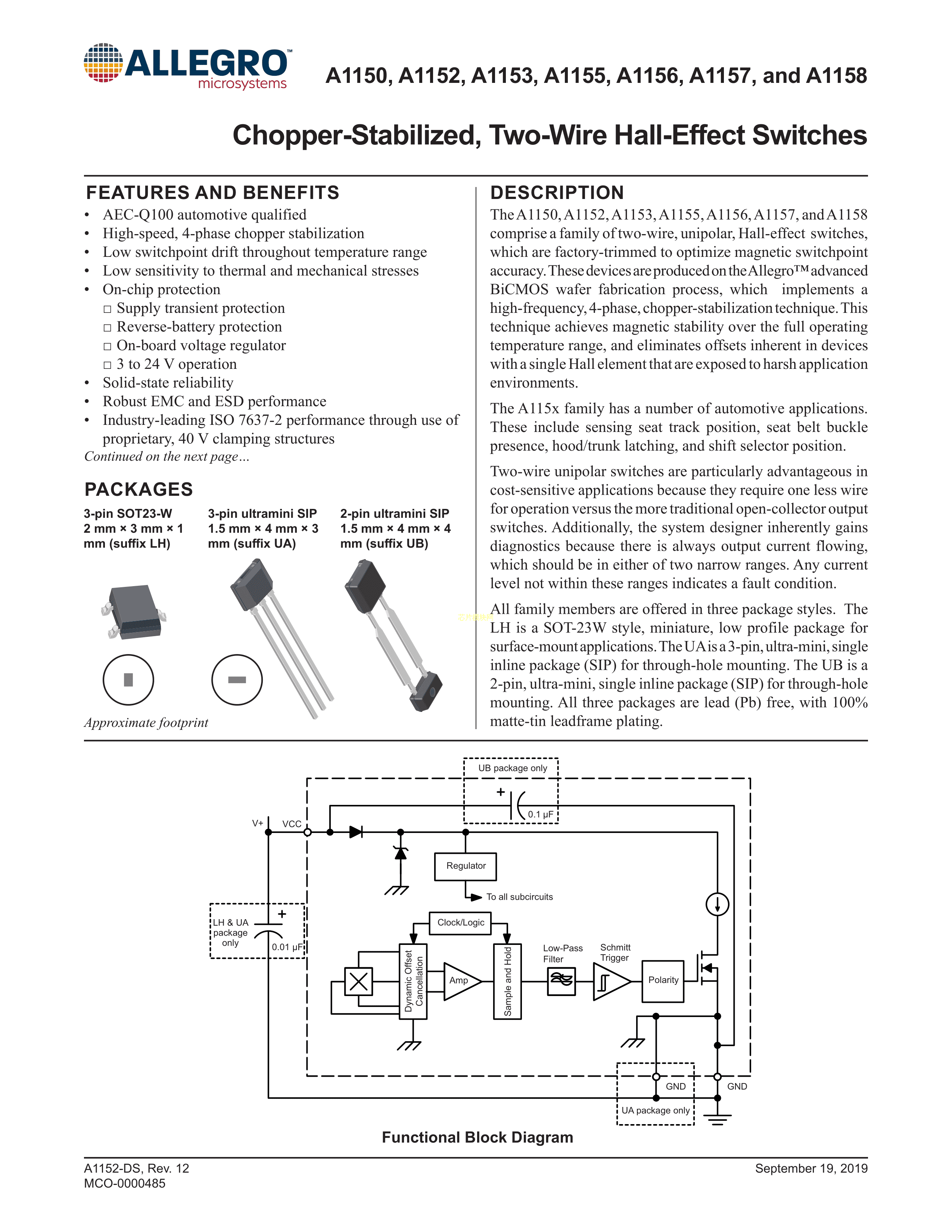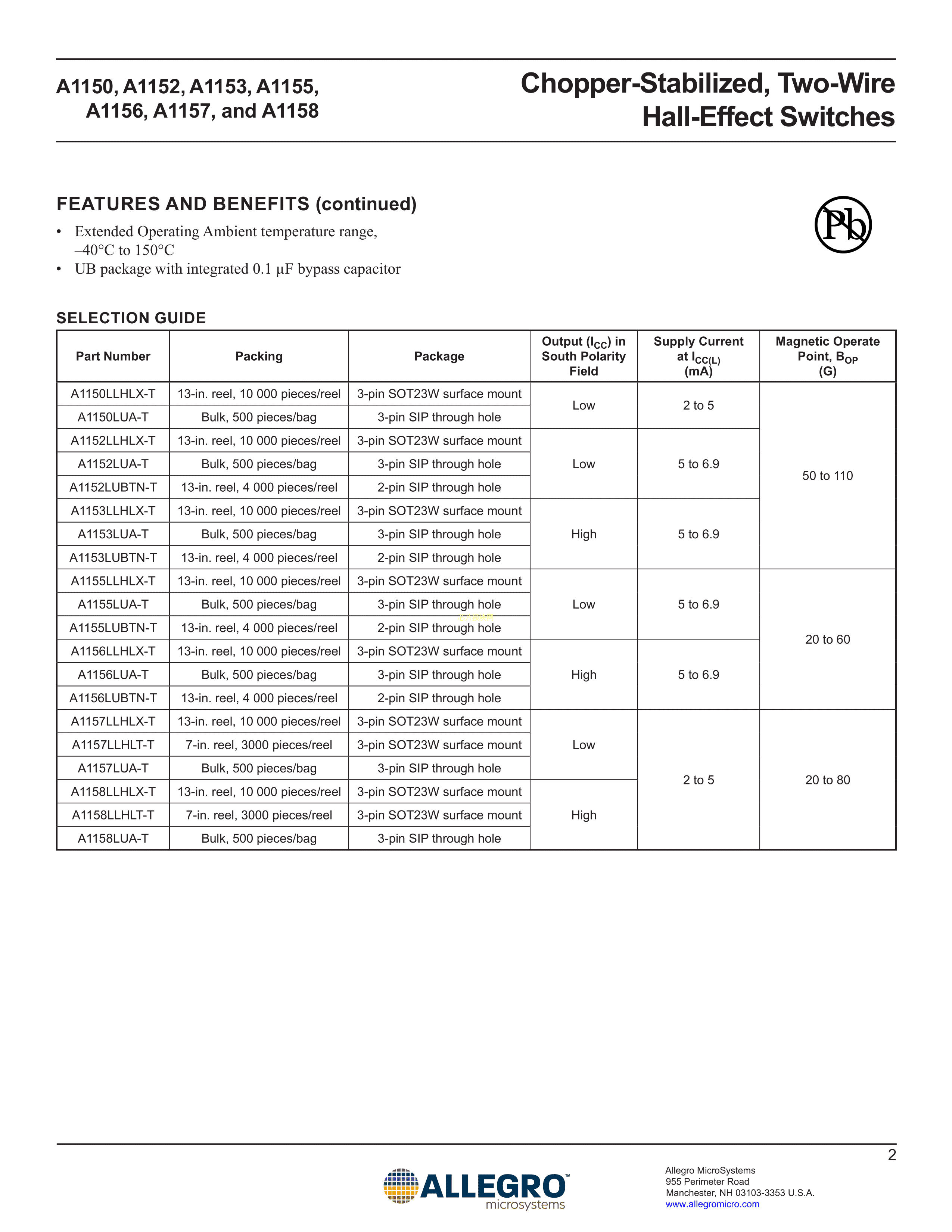 A1153LLHLX-T数据手册SOT-23W封装ALLEGRO(美国埃戈罗)PDF规格书,中英文下载