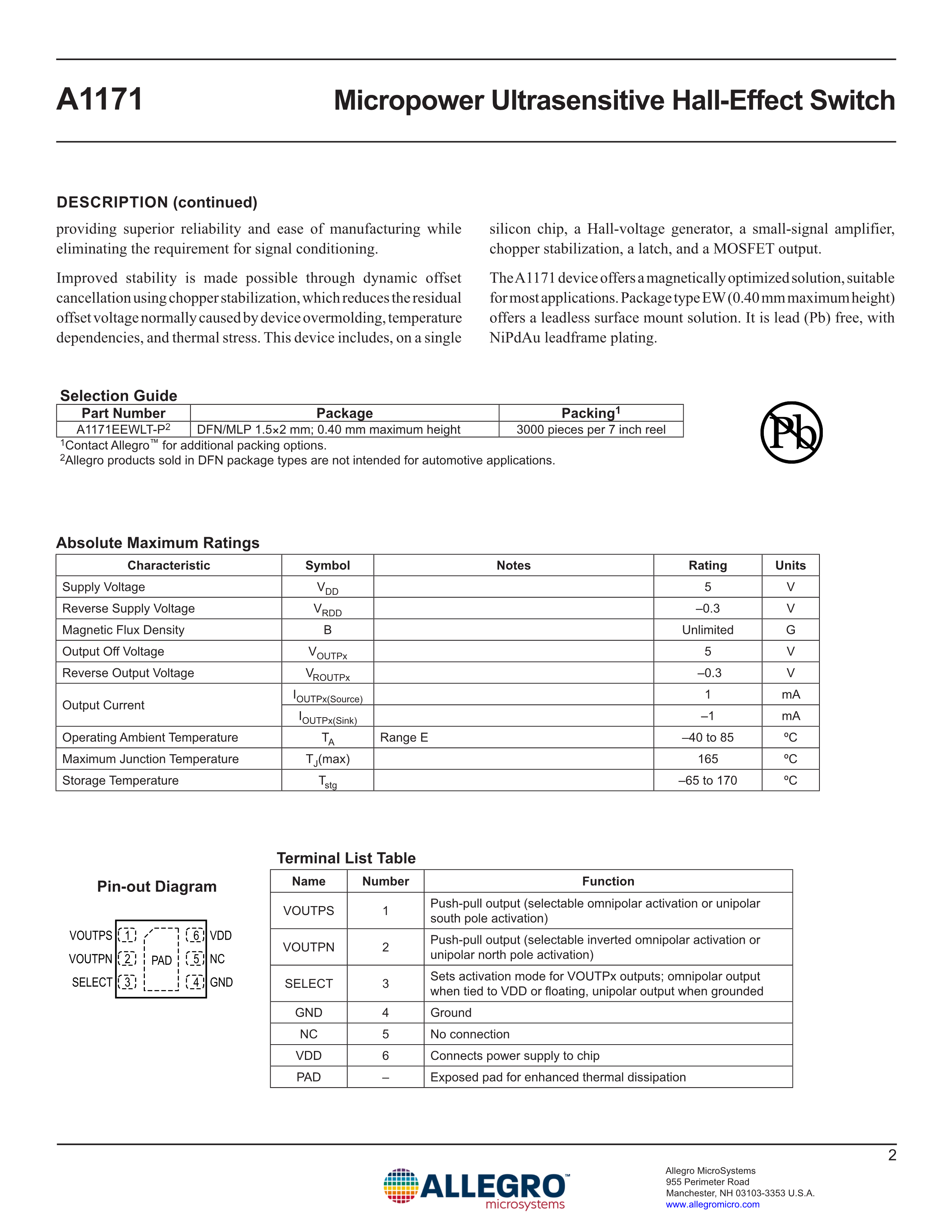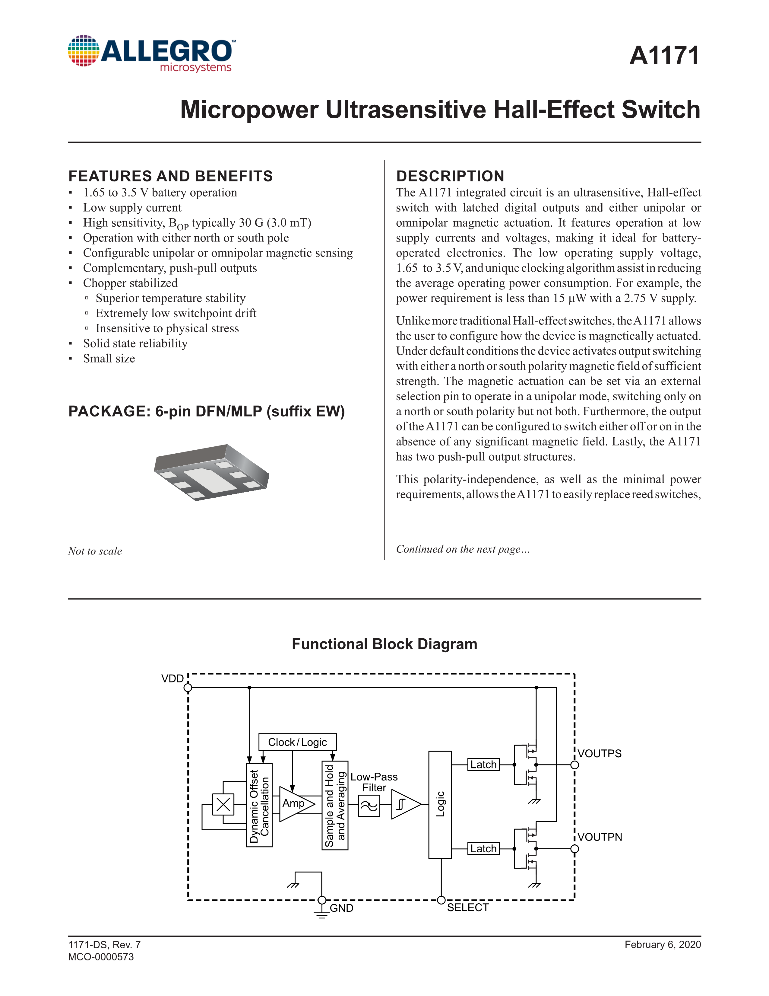 A1171EEWLT-P数据手册DFN-MLP-6封装ALLEGRO(美国埃戈罗)PDF规格书,中英