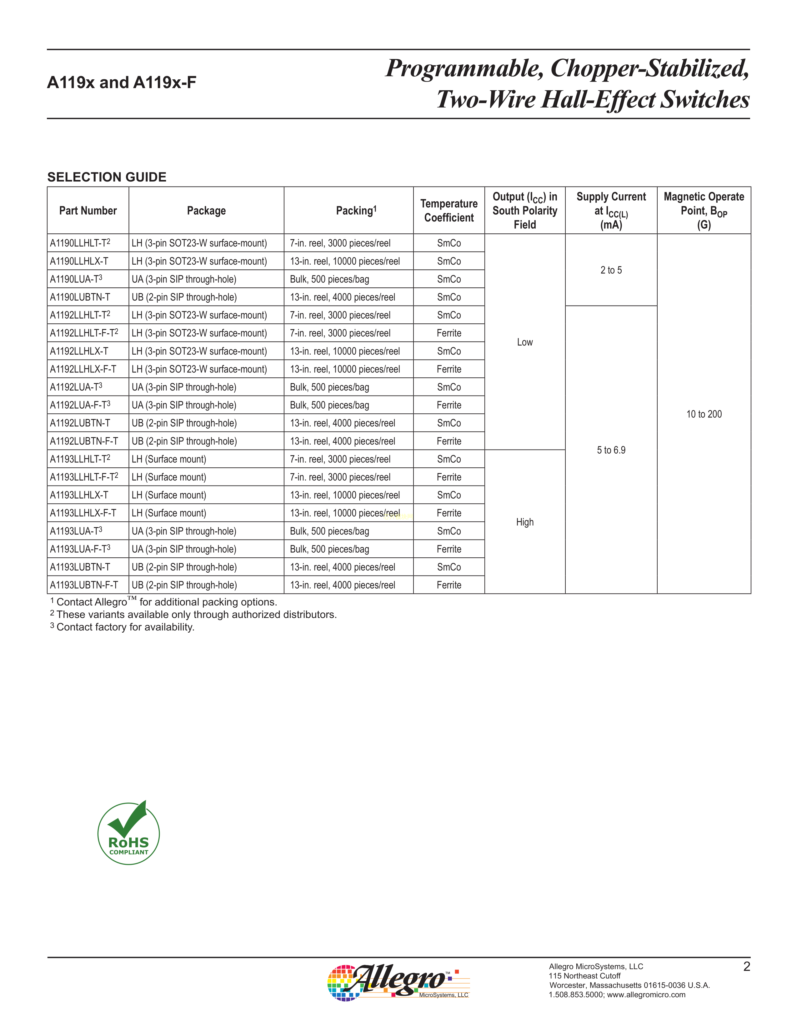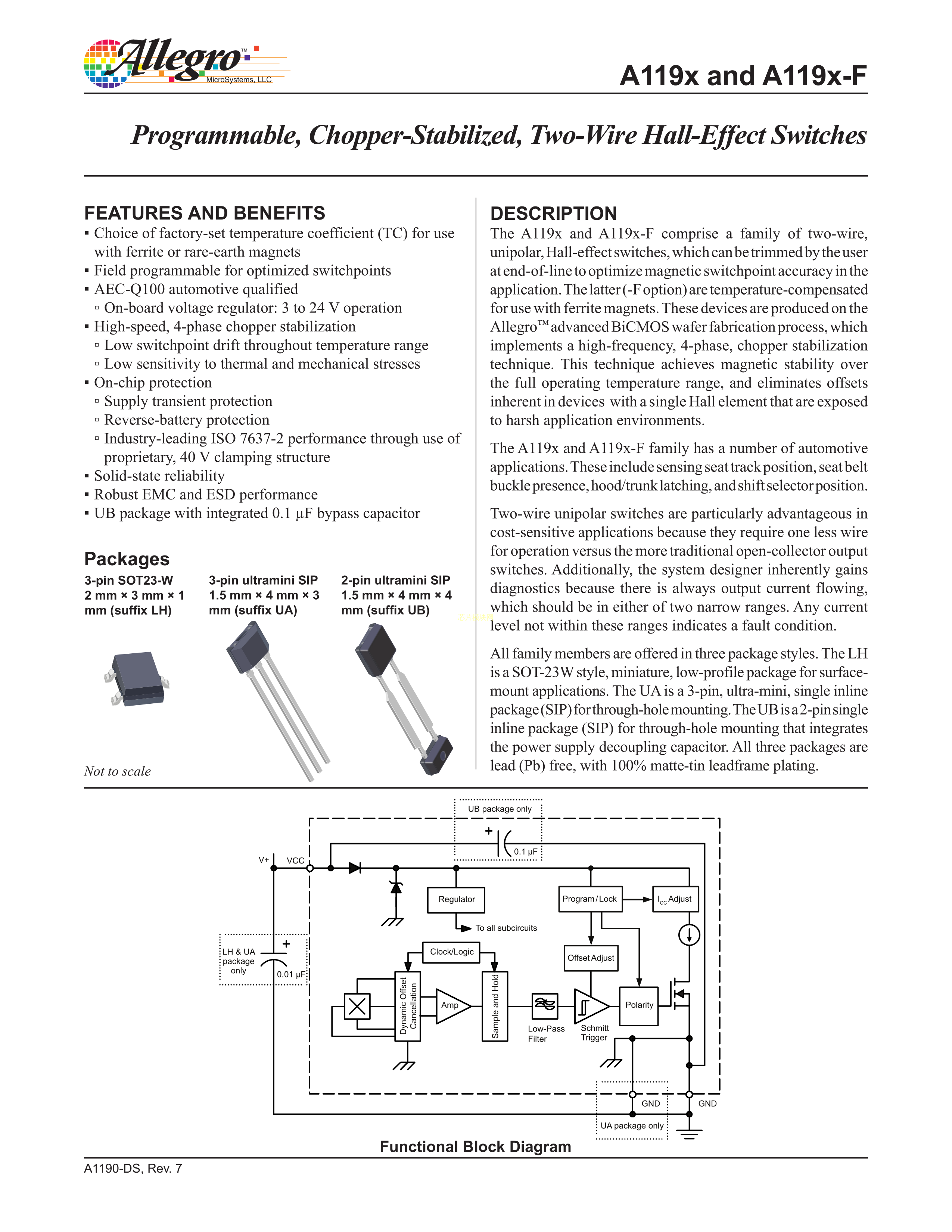 A1193LUBTN-T数据手册SIP-2封装ALLEGRO(美国埃戈罗)PDF规格书,中英文下载