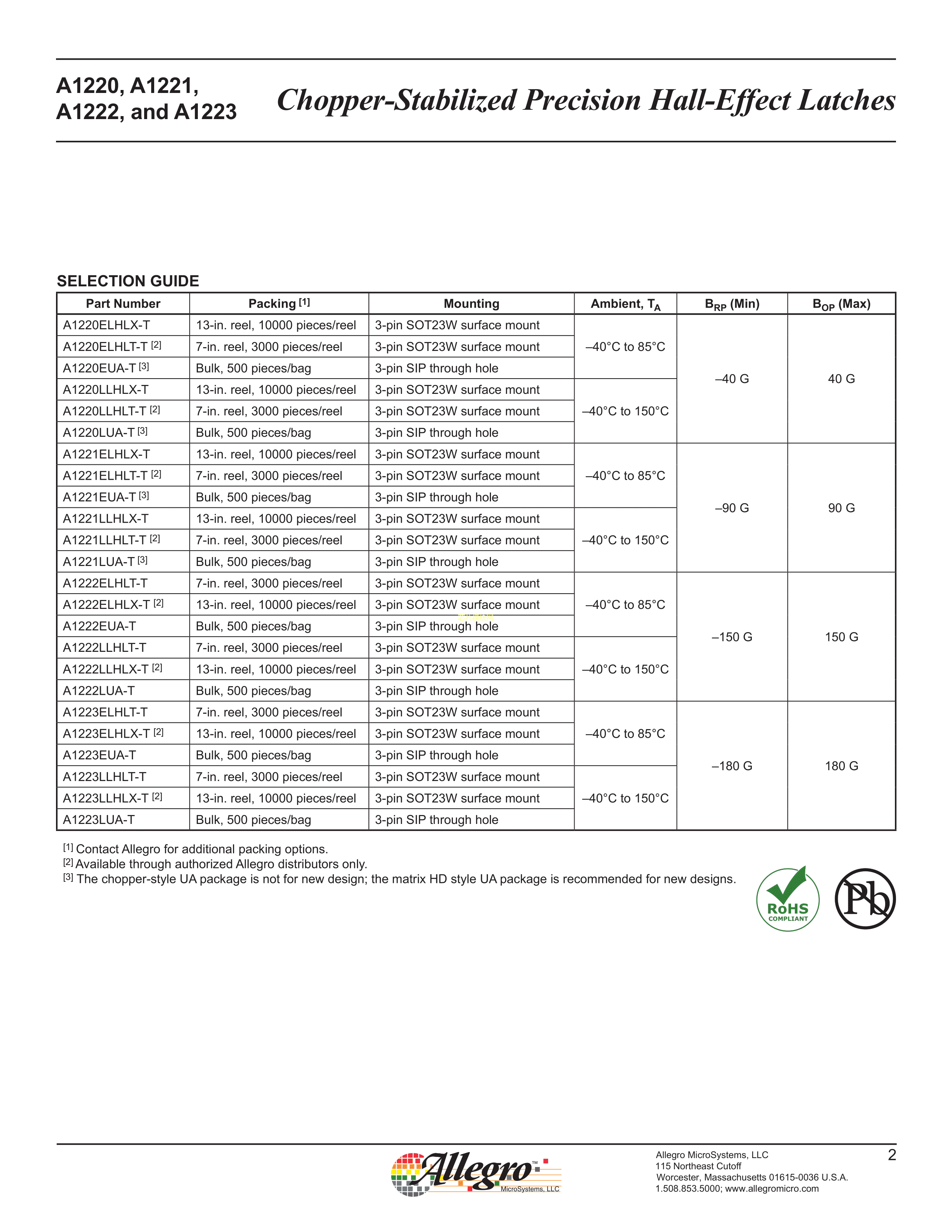A1220LLHLT-T数据手册SOT-23W封装ALLEGRO(美国埃戈罗)PDF规格书,中英文下载