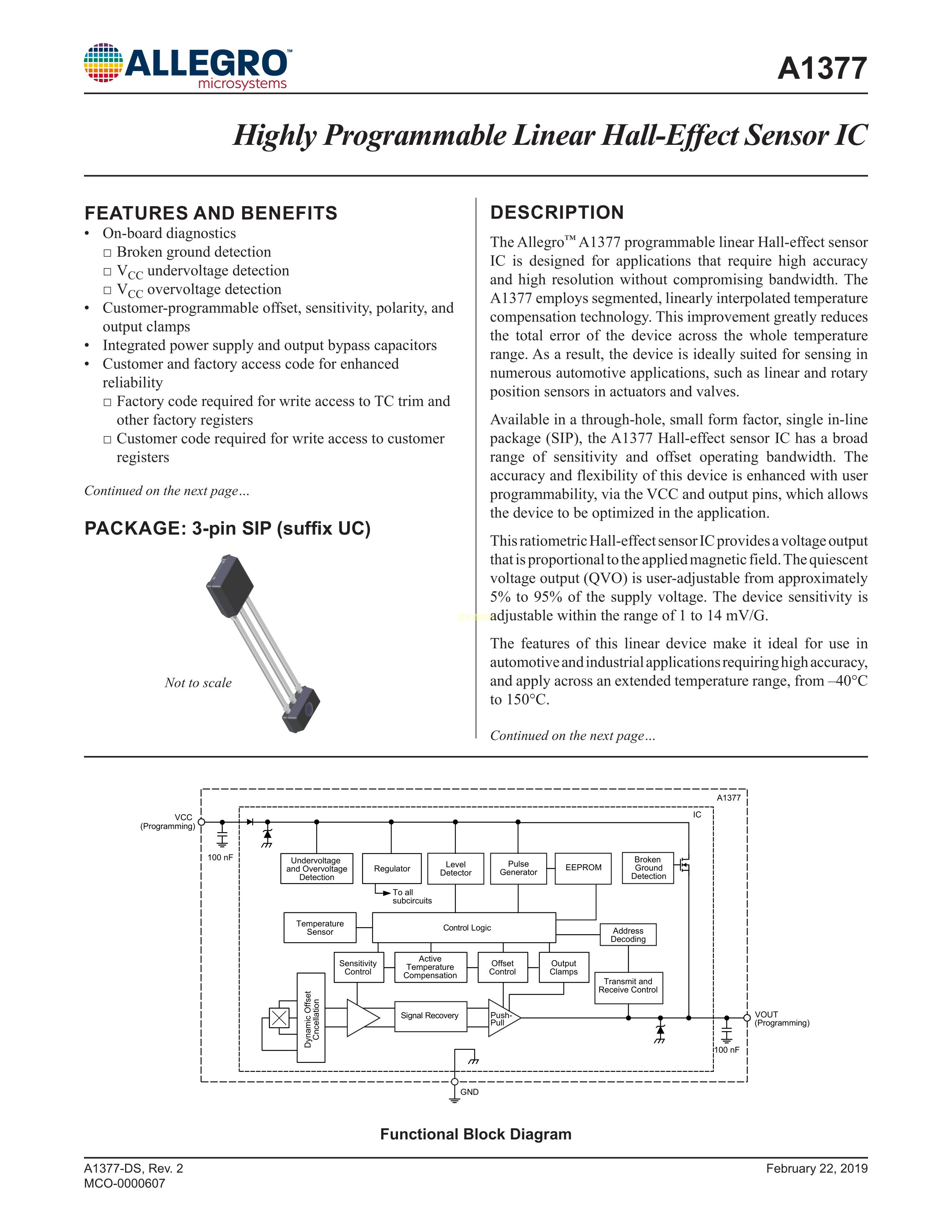 A1377LUCTN-TC1-T数据手册SSIP-3封装ALLEGRO(美国埃戈罗)PDF规格书,中