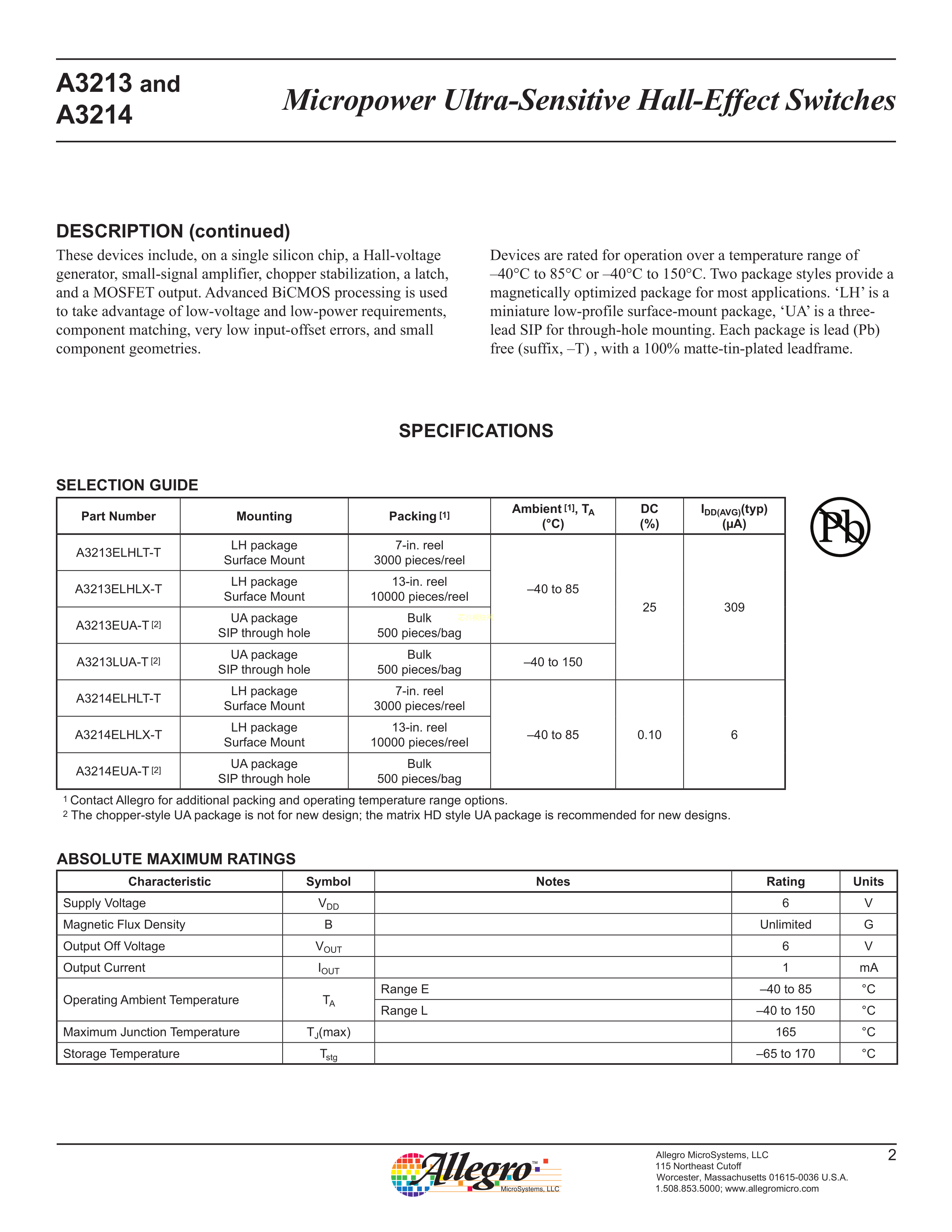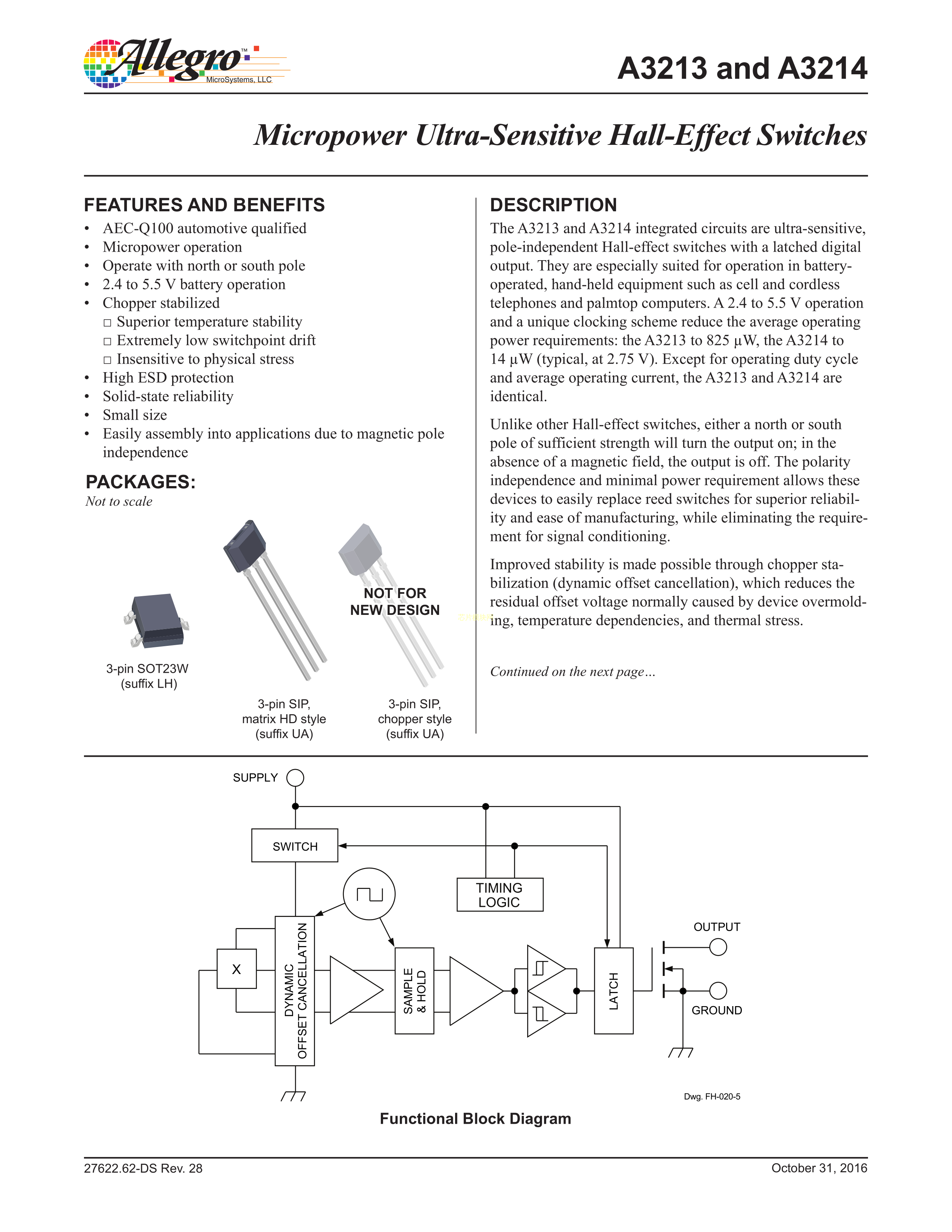 A3214LUA-T数据手册SIP-3封装ALLEGRO(美国埃戈罗)PDF规格书,中英文下载