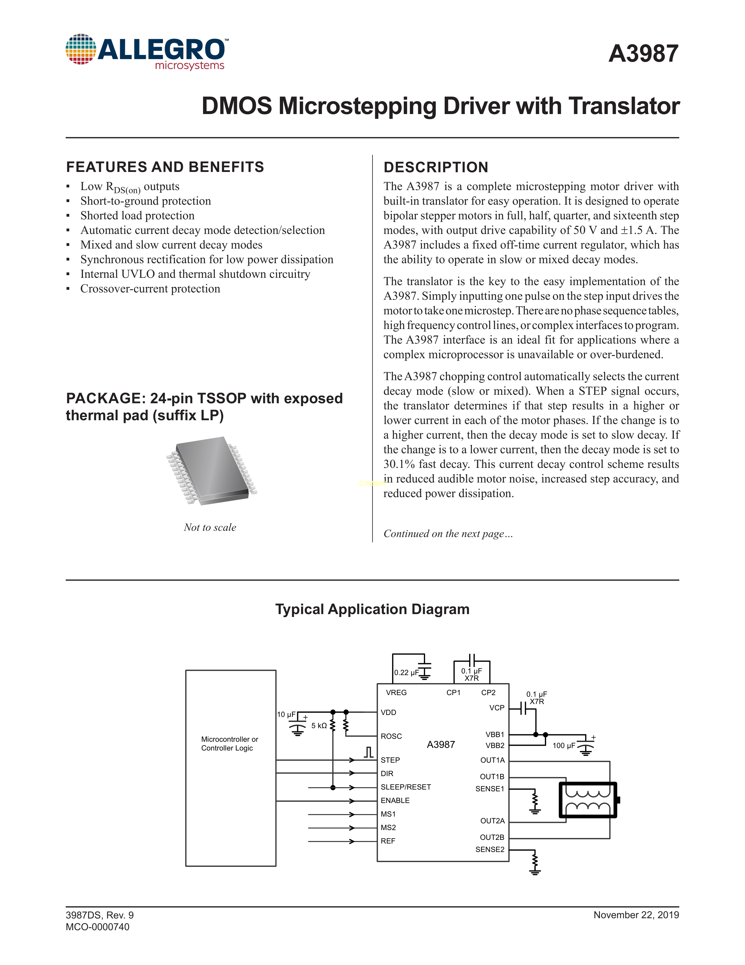 A3987SLPTR-T数据手册TSSOP-24EP封装ALLEGRO(美国埃戈罗)PDF规格书,中
