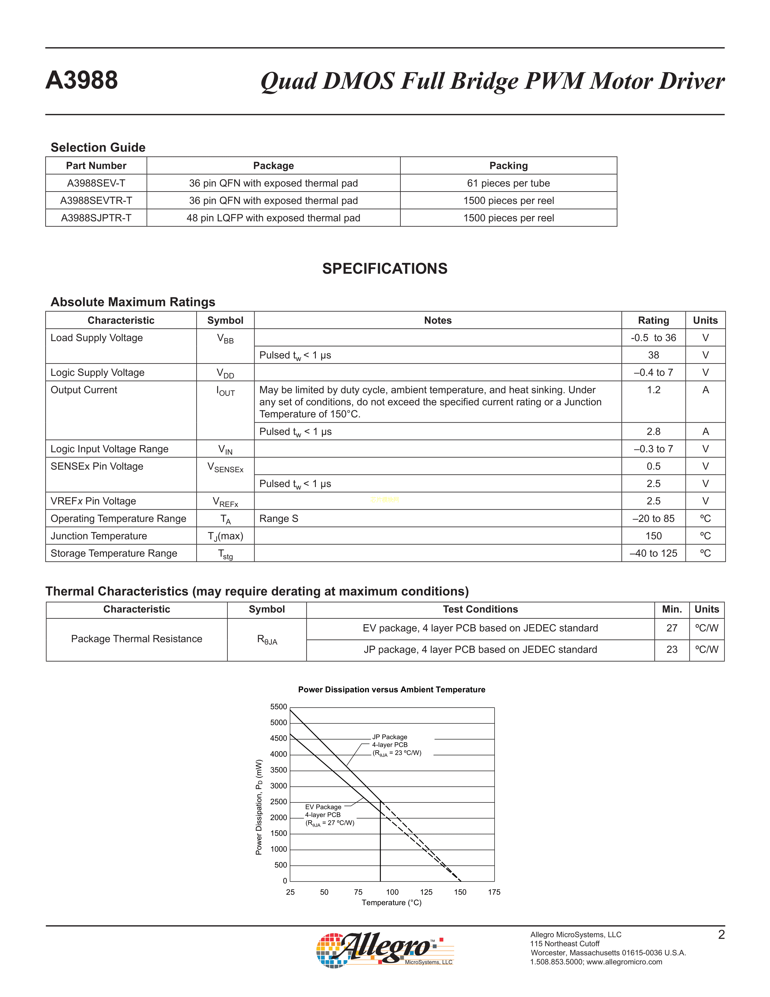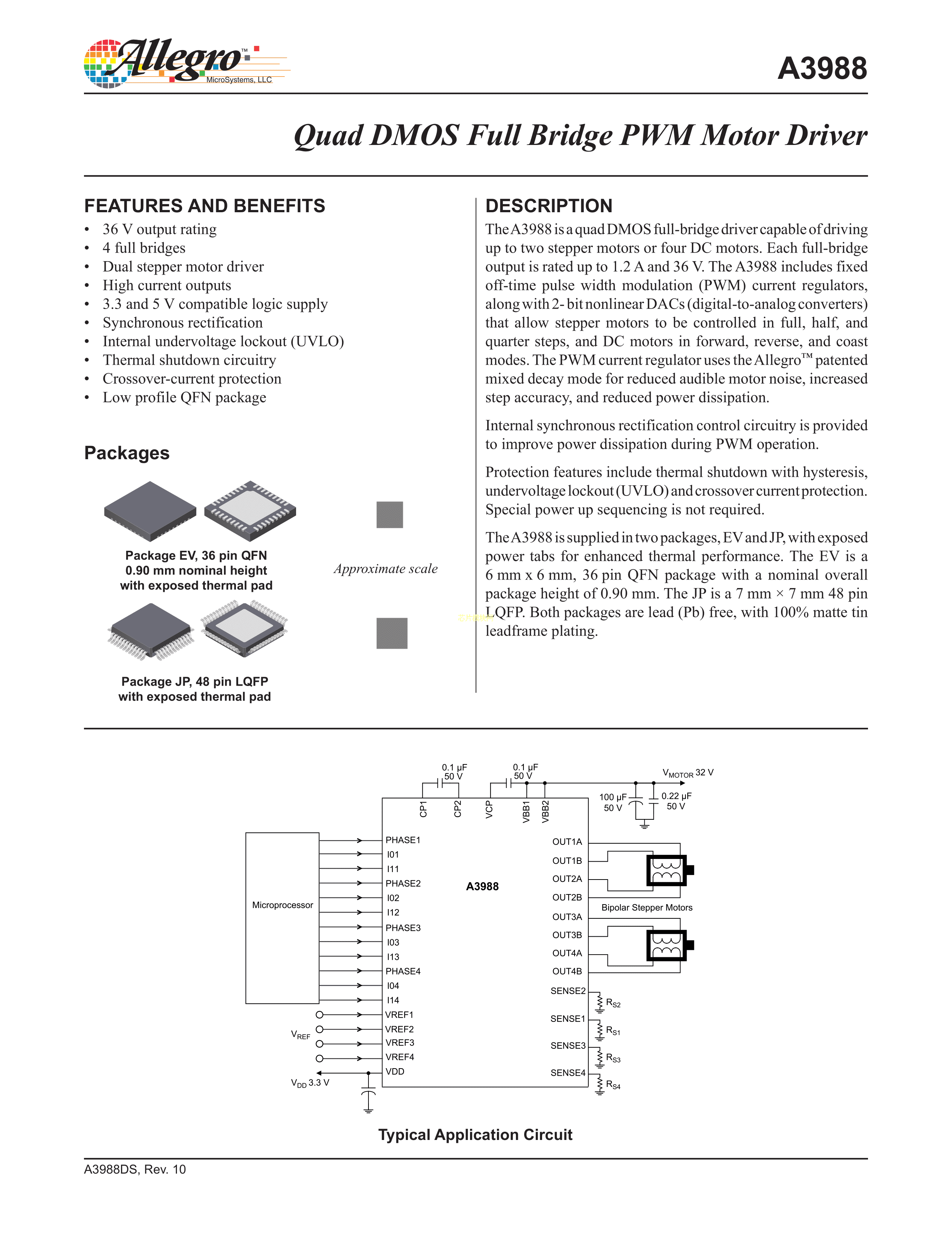 A3988SEVTR-T数据手册QFN-36_6x6x05P封装ALLEGRO(美国埃戈罗)PDF规