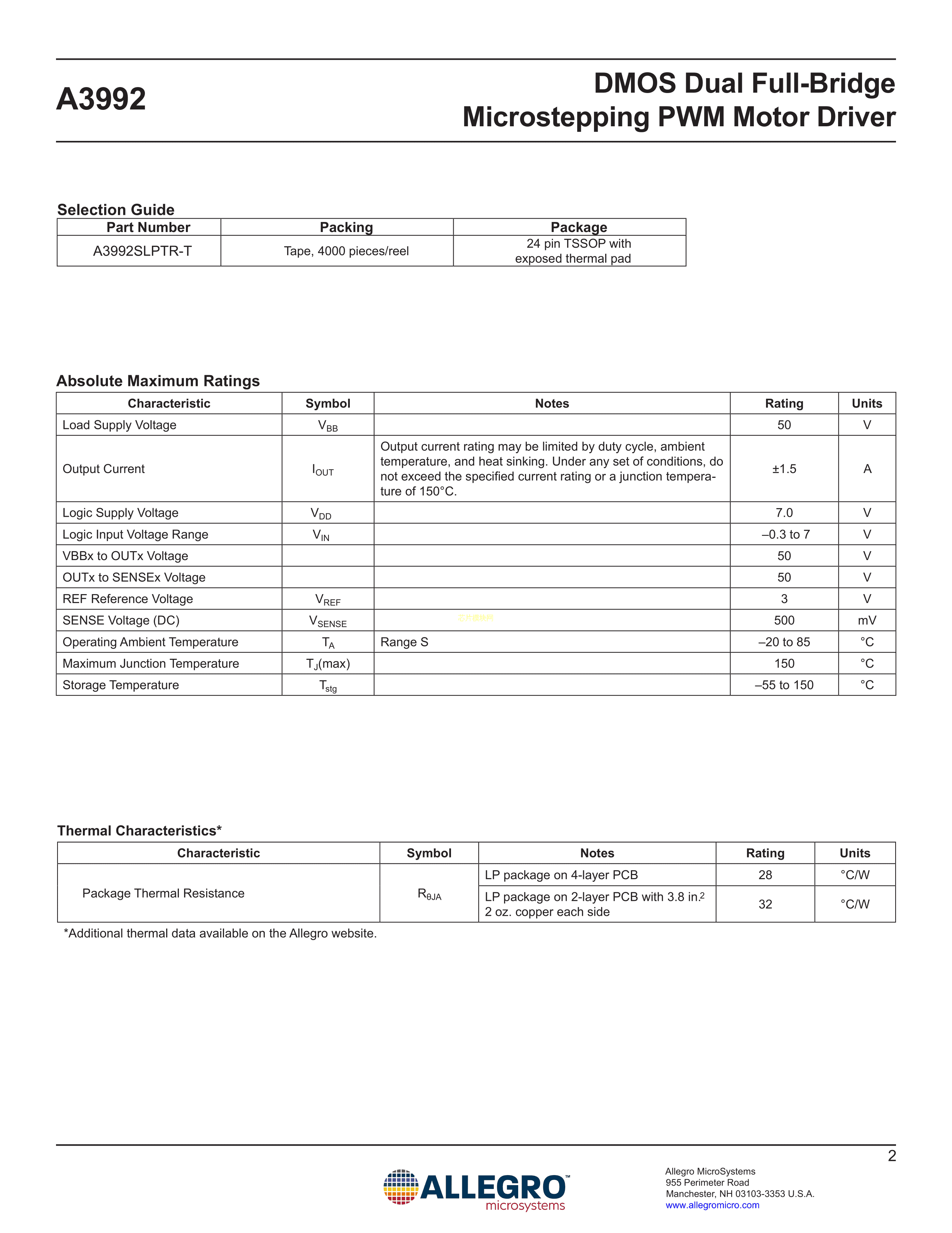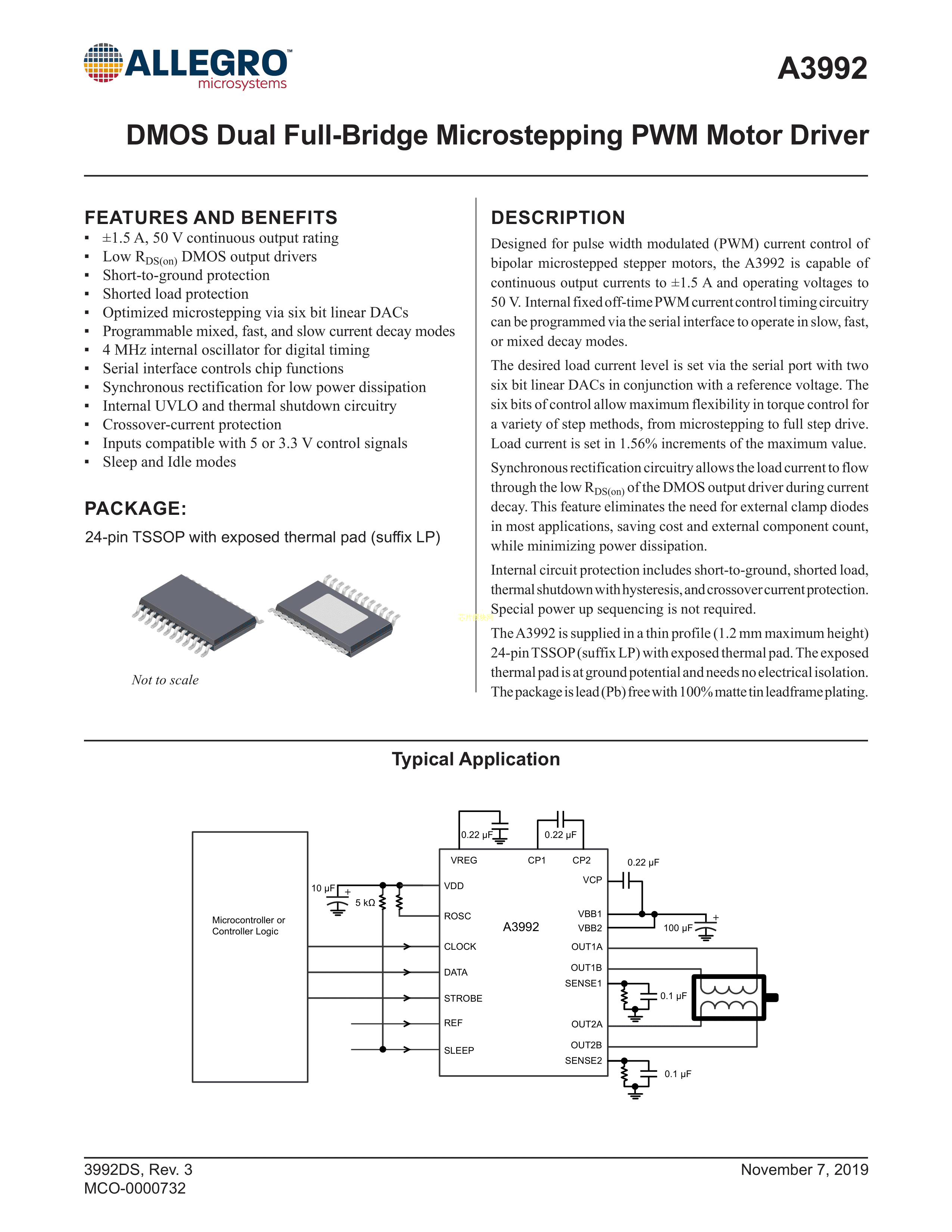 A3992SLPTR-T数据手册TSSOP-24EP封装ALLEGRO(美国埃戈罗)PDF规格书,中