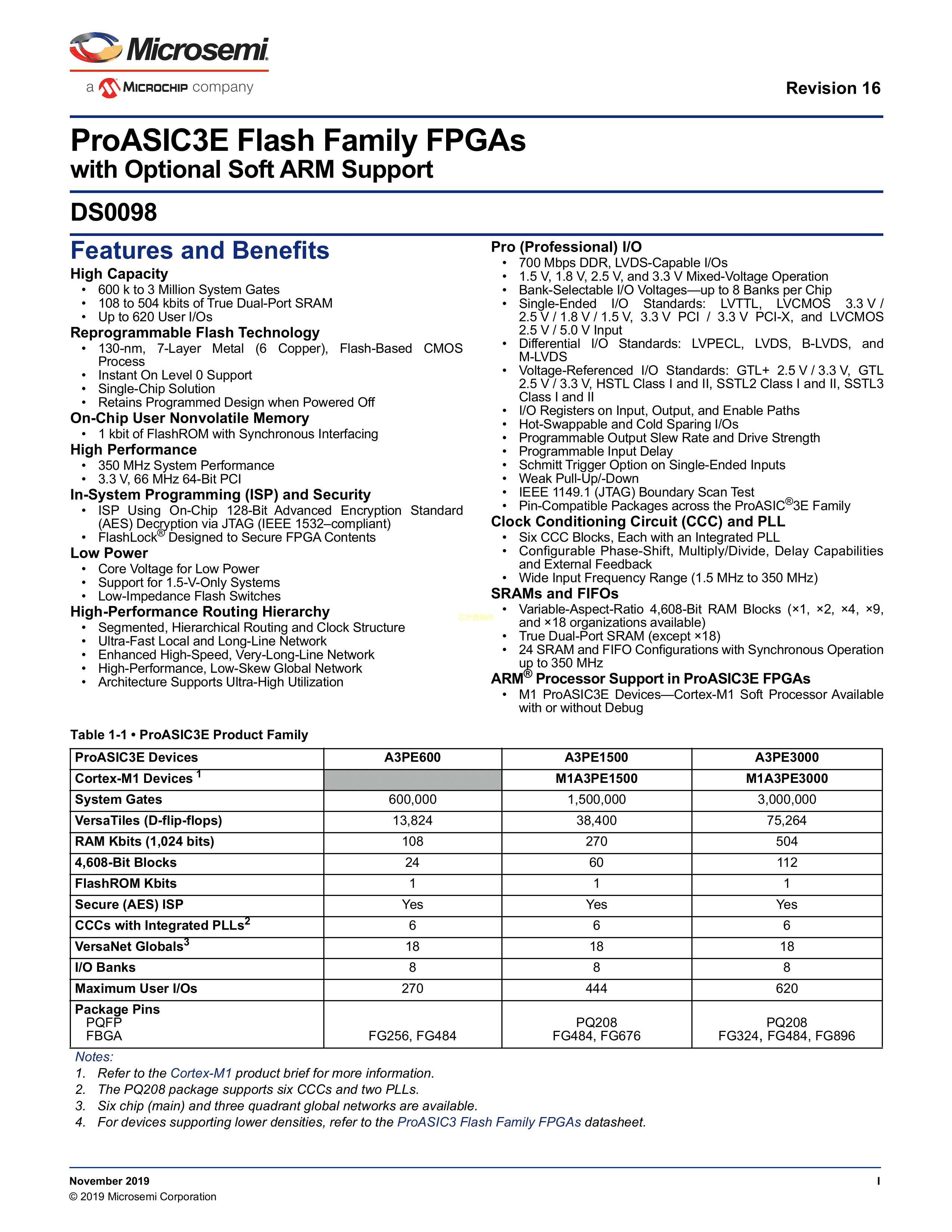 A3PE1500-1PQG208I数据手册PQFP-208(28x28)封装Microsemi(美高森美)PDF规格书,中英文下载