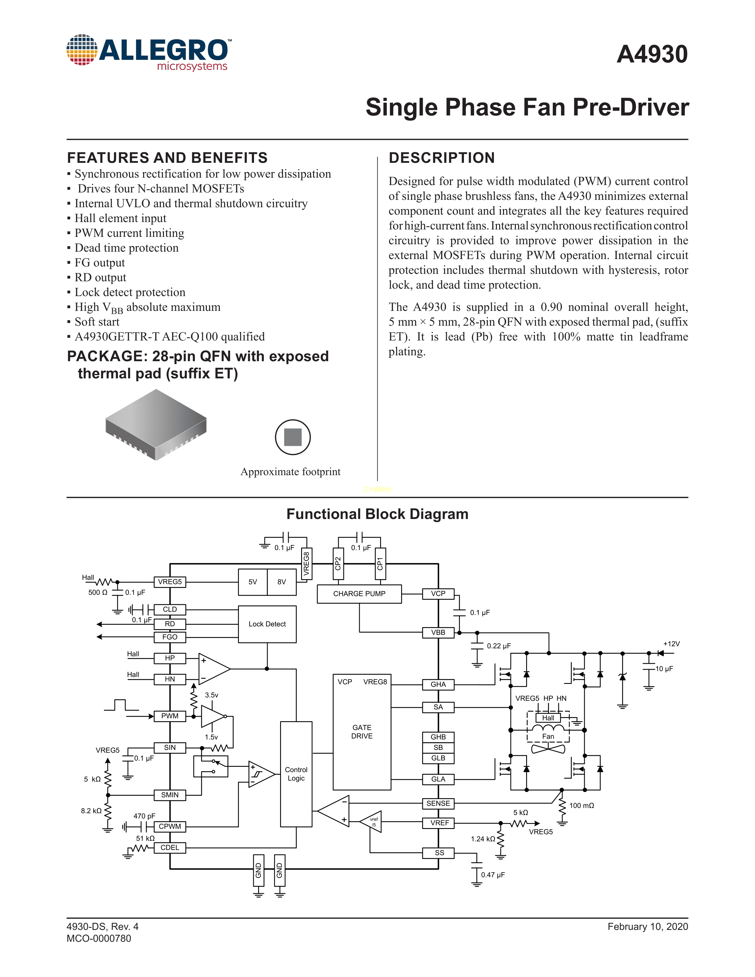 A4930GETTR-T数据手册QFN-28(5x5)封装ALLEGRO(美国埃戈罗)PDF规格书,