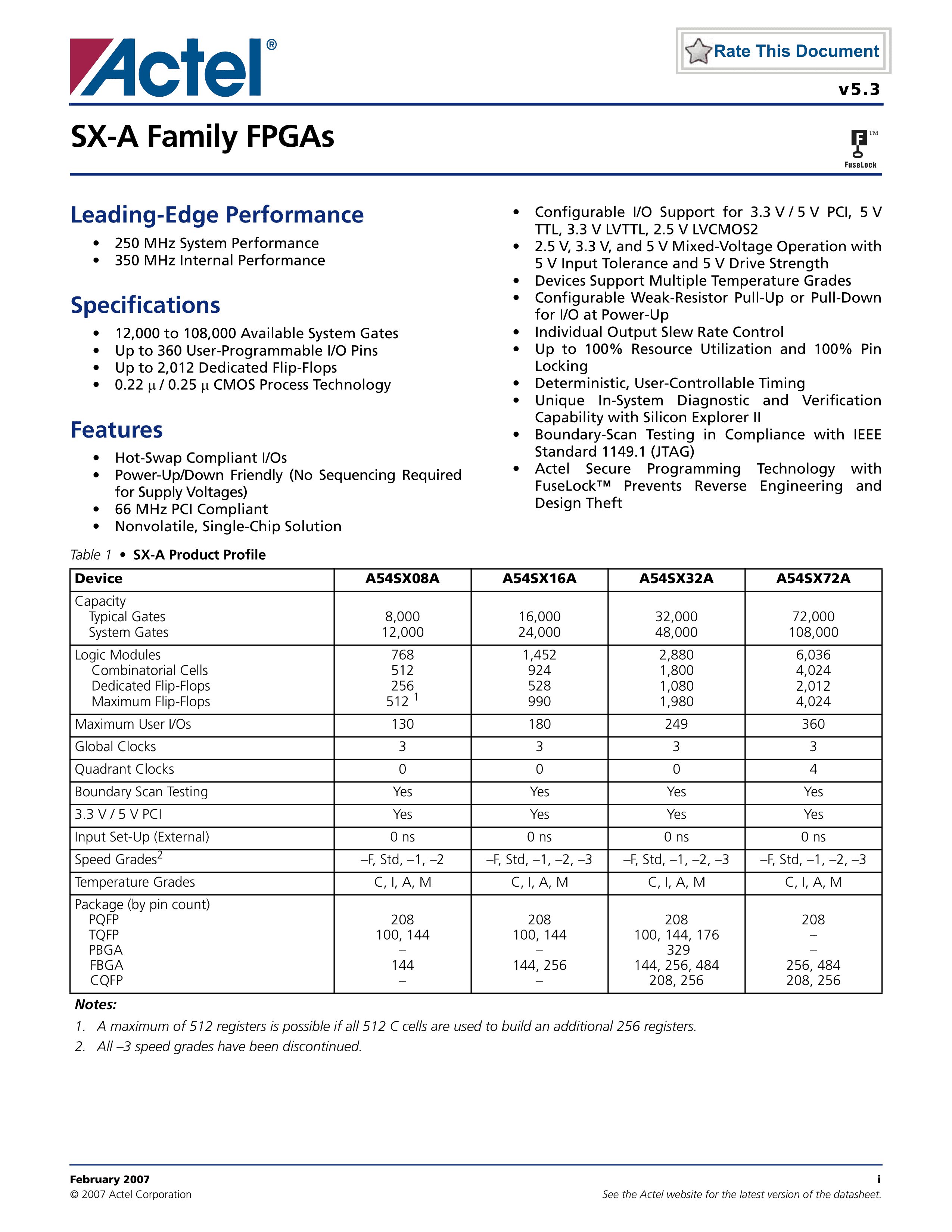 A54SX72A-1FGG256数据手册FPBGA-256(17x17)封装Microsemi(美高