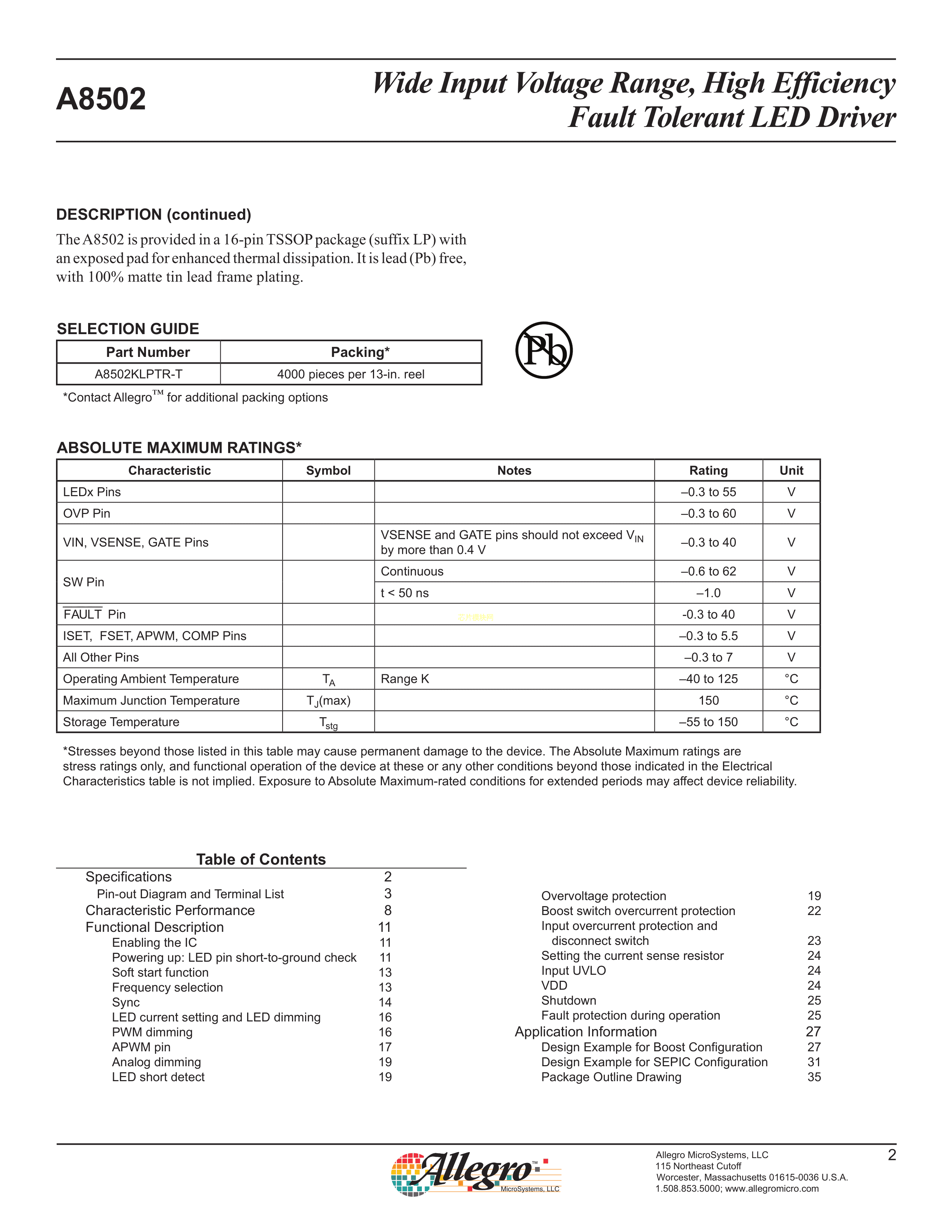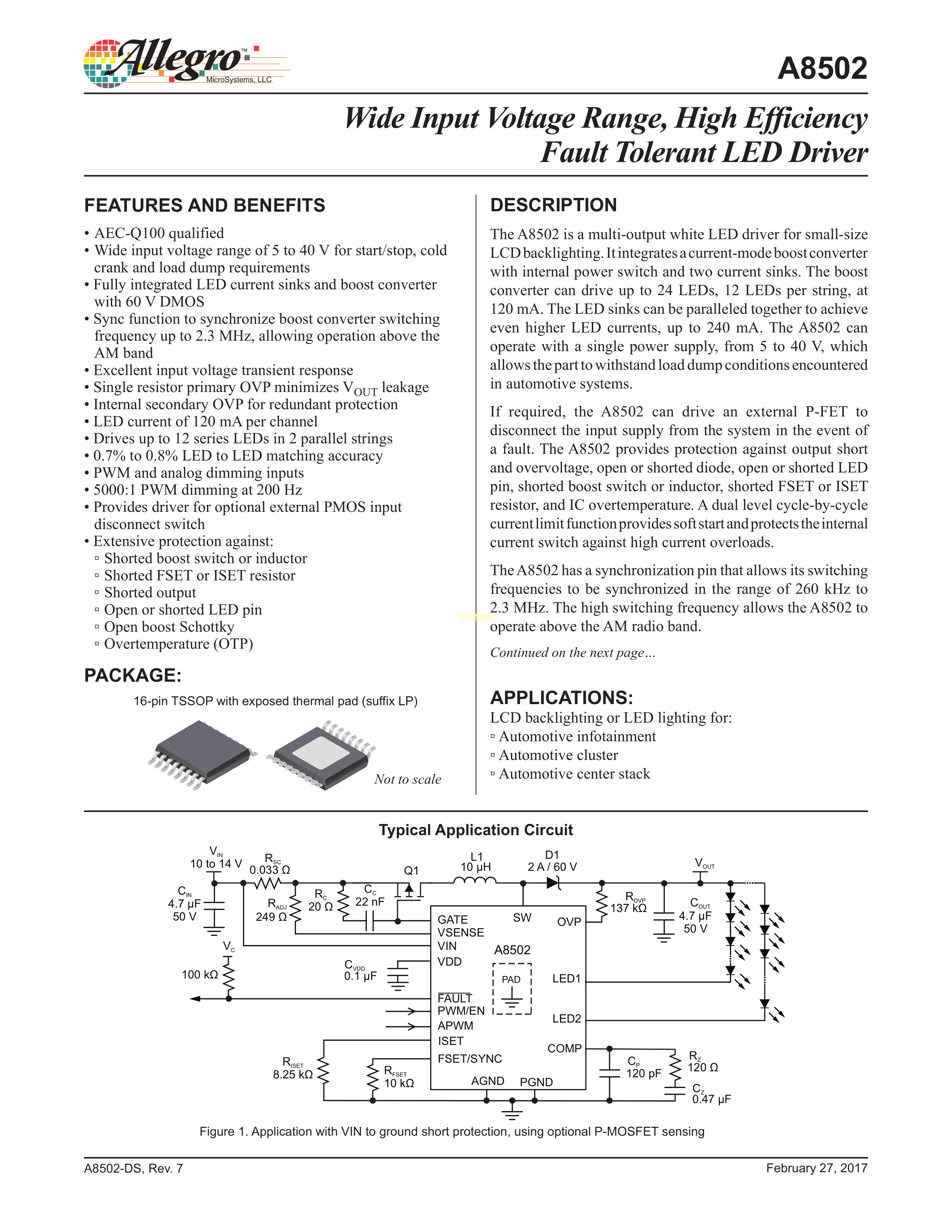 A8502KLPTR-T数据手册TSSOP-16封装ALLEGRO(美国埃戈罗)PDF规格书,中英文