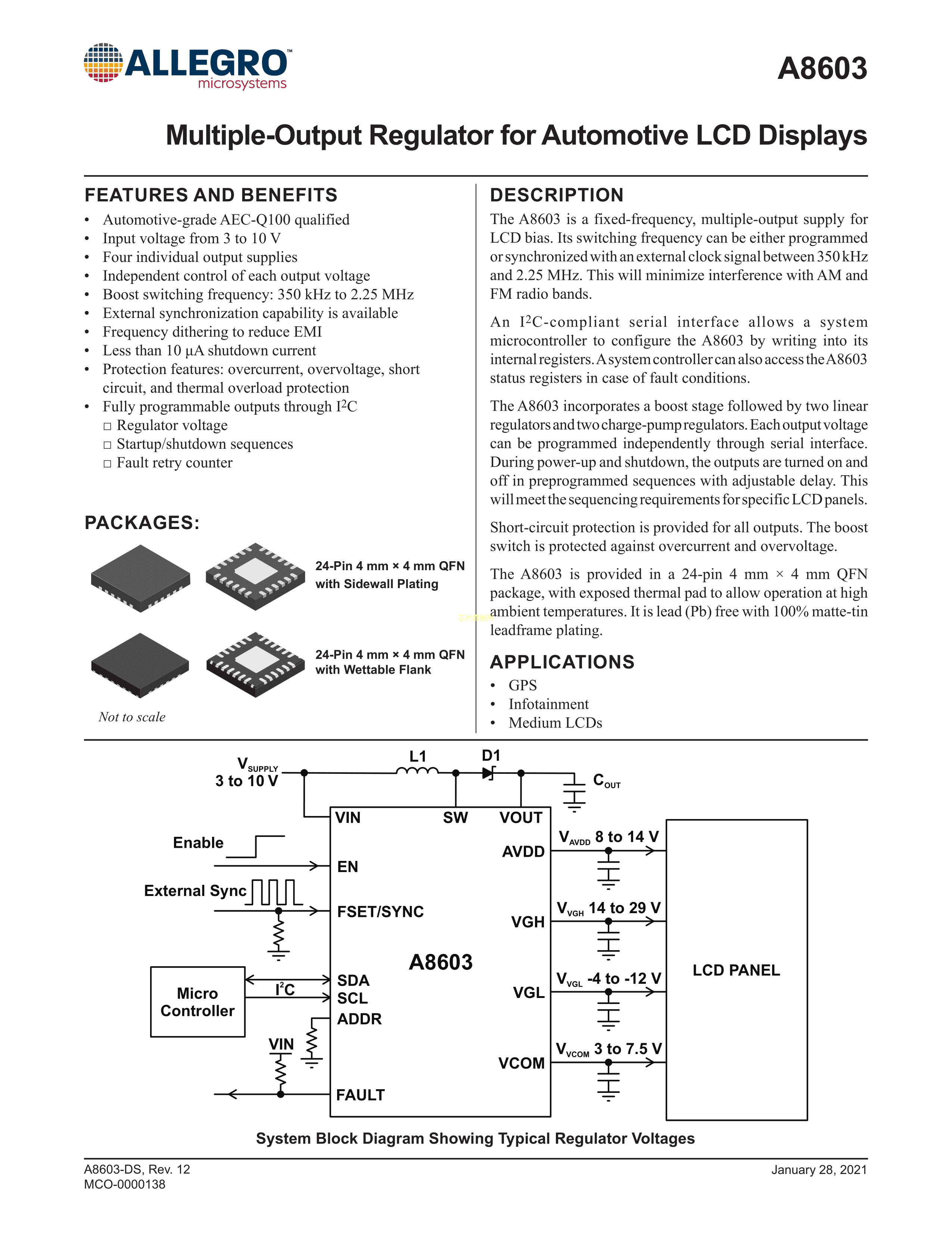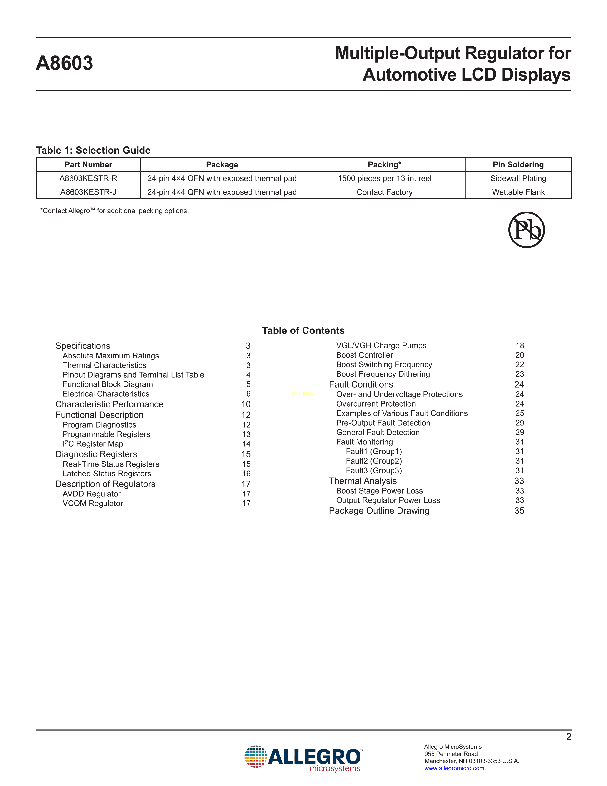 A8603KLPTR-T数据手册TSSOP-24EP封装ALLEGRO(美国埃戈罗)PDF规格书,中