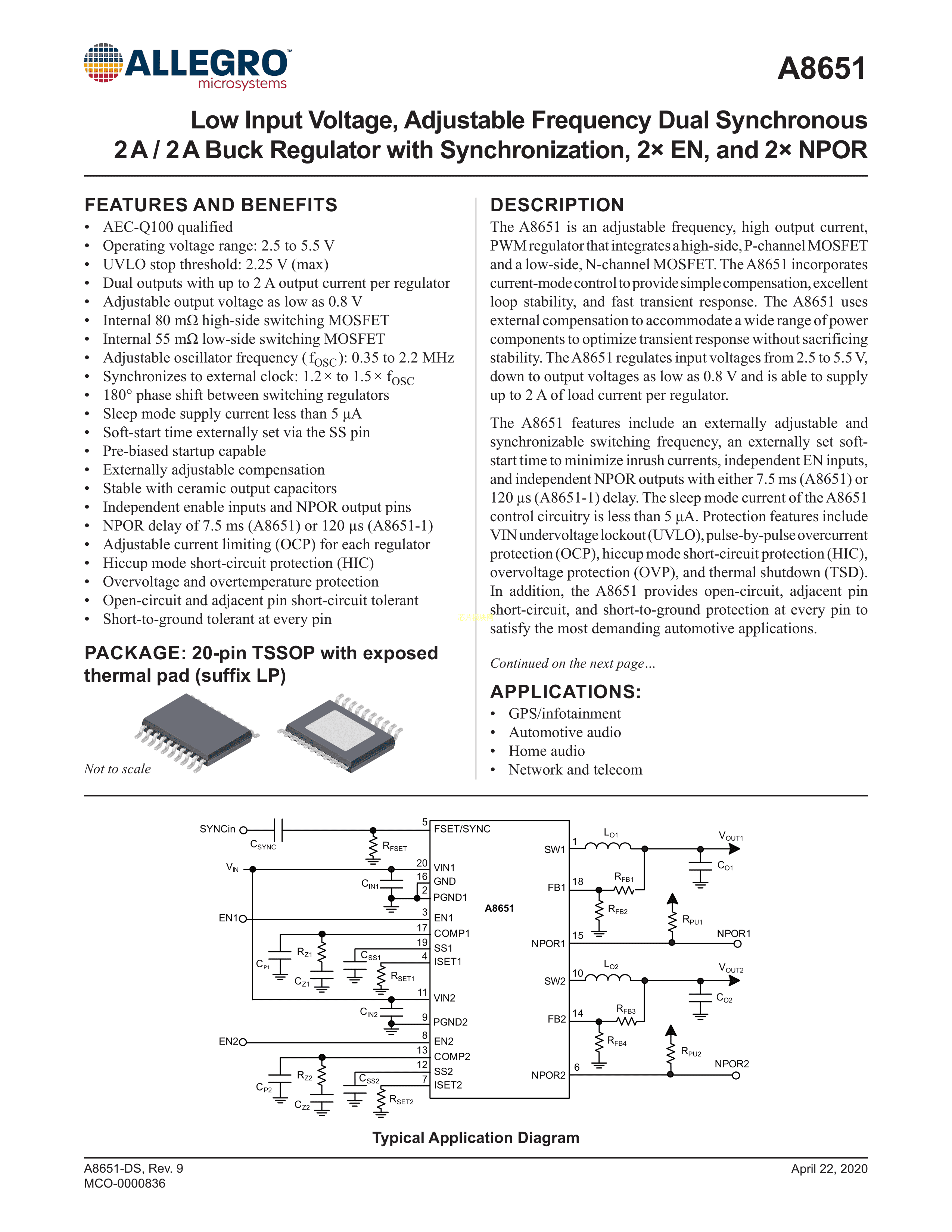 A8651KLPTR-T-1数据手册TSSOP-20封装ALLEGRO(美国埃戈罗)PDF规格书,中