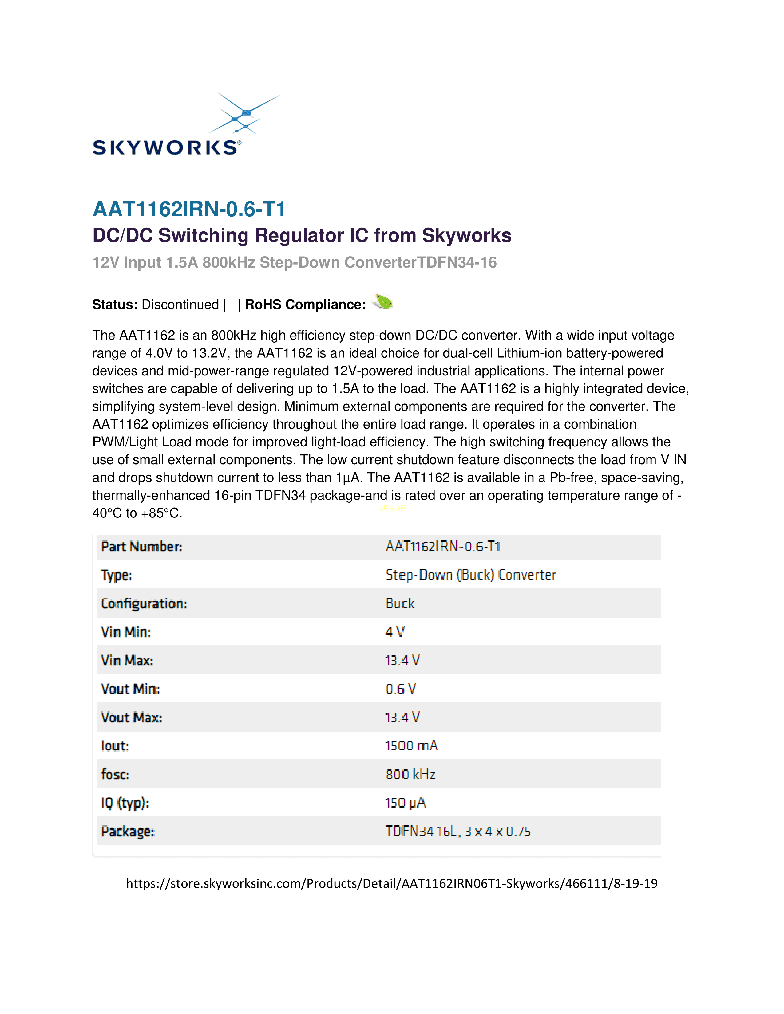 AAT1162IRN-0.6-T1数据手册-封装SKYWORKSPDF规格书,中英文下载